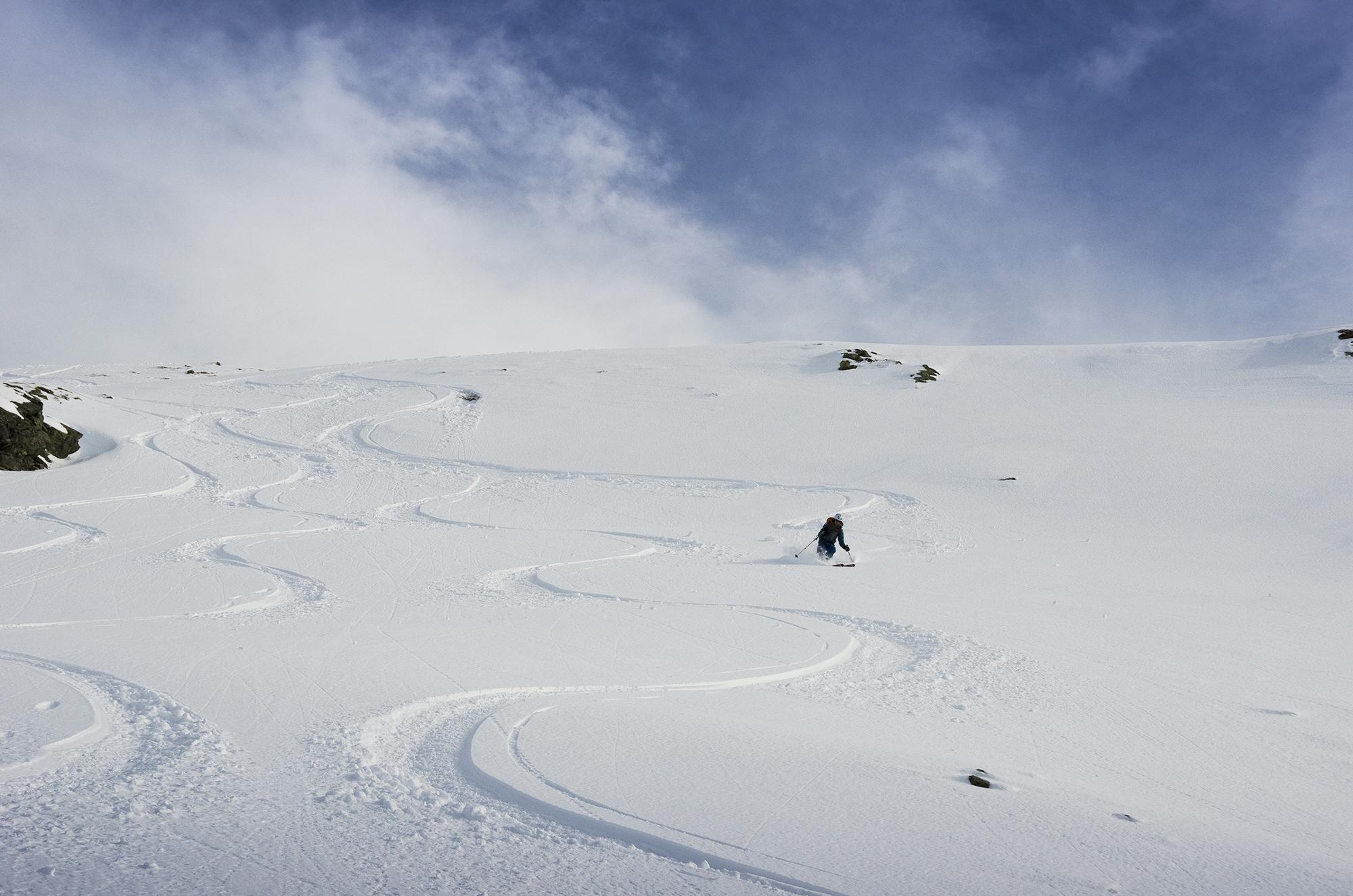 Abfahrt: Im sonnenabgewandten Hangbereich bis zur Lachalmhütte hinab schöner gesetzter Pulverschnee. Weiter unten wird der Schnee nass.