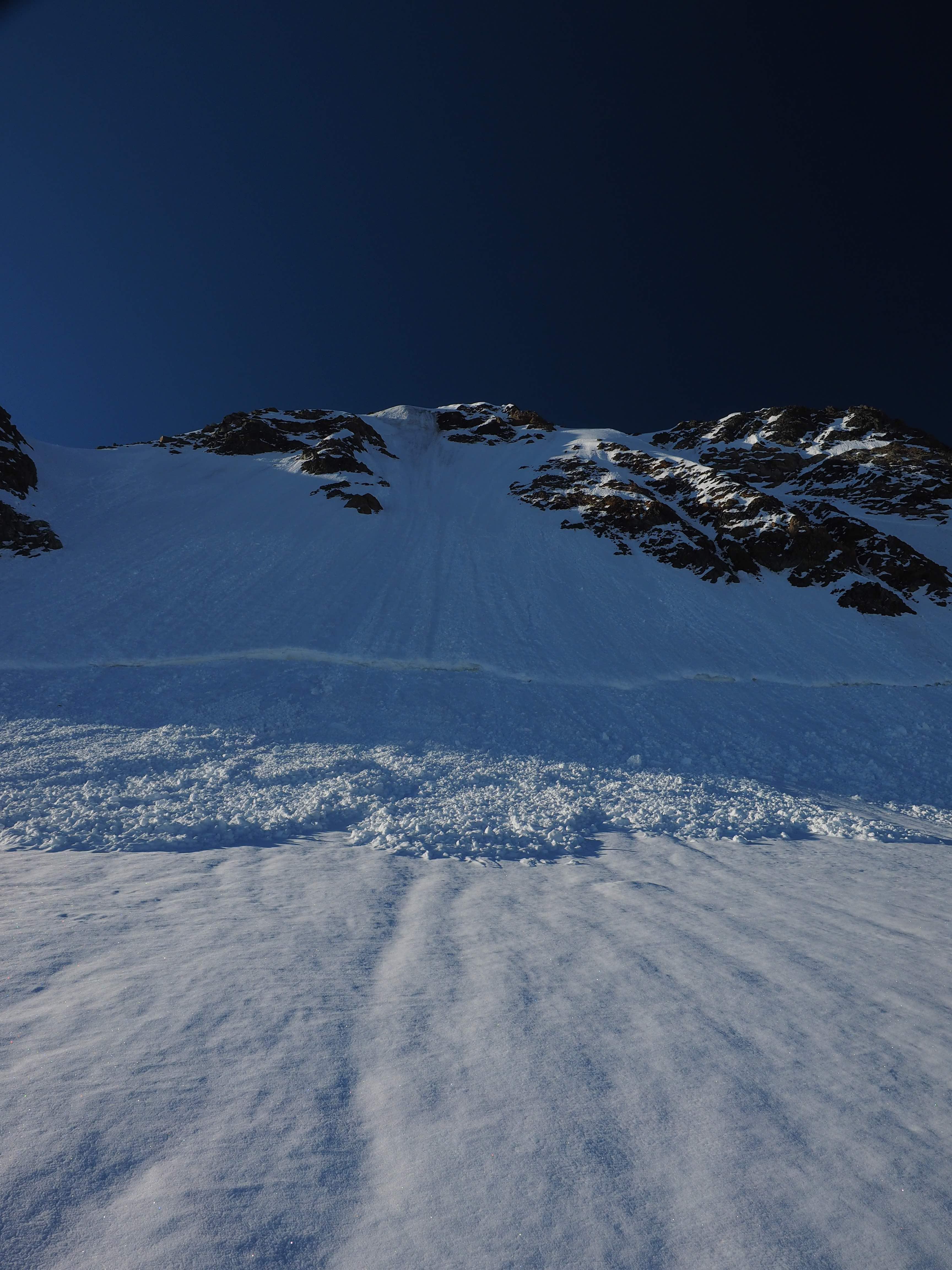 Ursprünglicher Plan: Brochkogel Nord-Südflanke. Aufgrund der raschen Erwärmung wurde dieser Plan spontan verworfen. Das war wohl auch die richtige Entscheidung (es gab später einer Lawinenabgang von der Petersenspitze: http://tirol.orf.at/news/stories/2714736/).