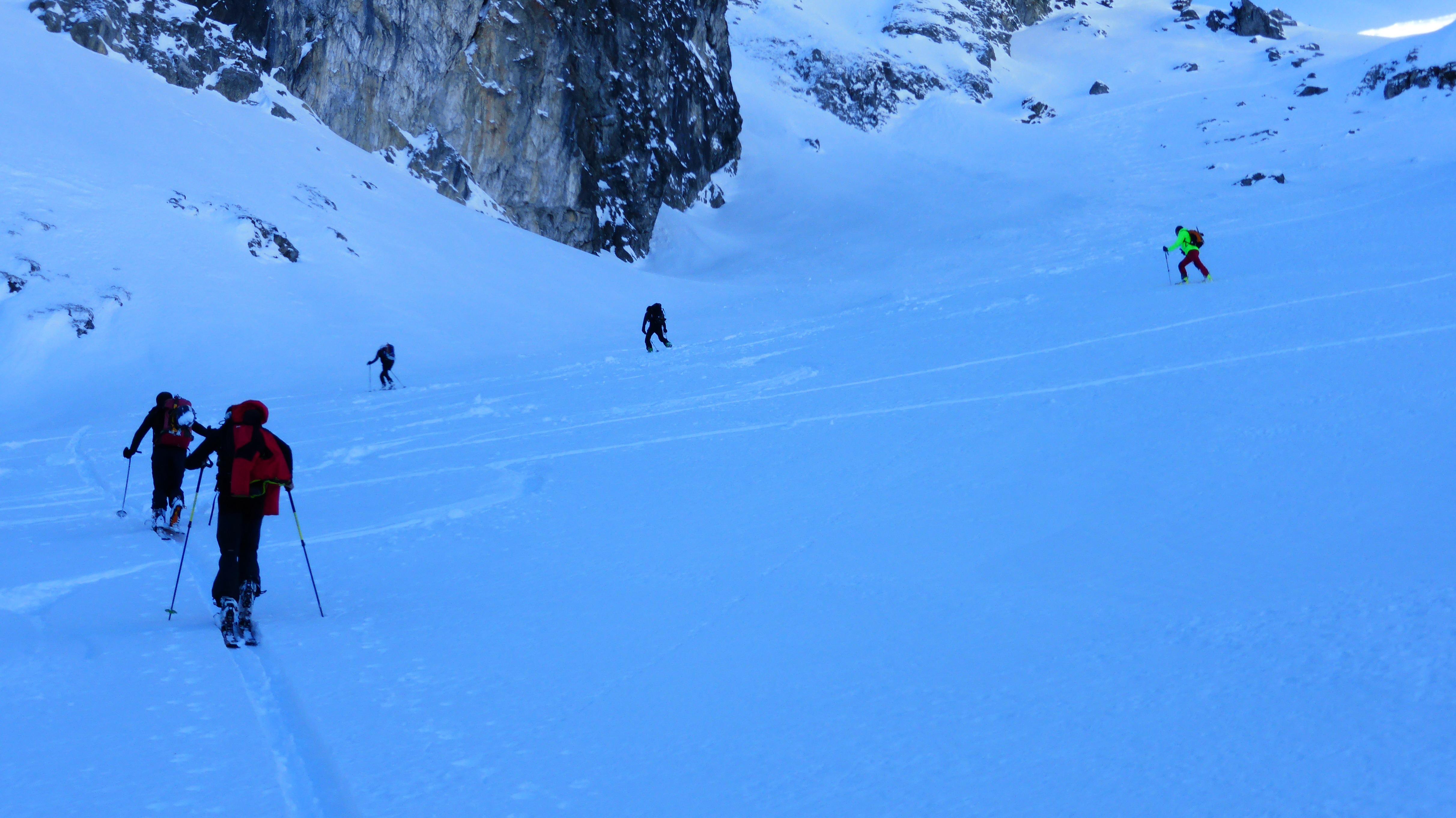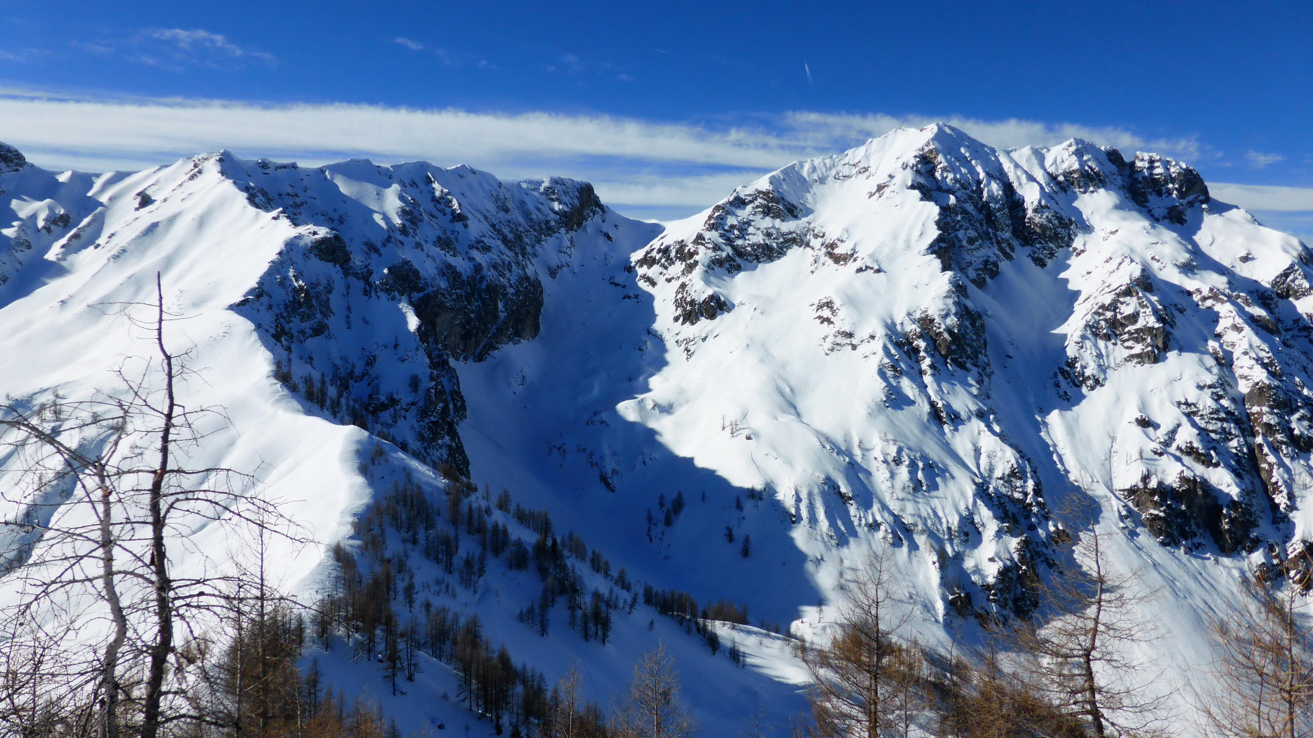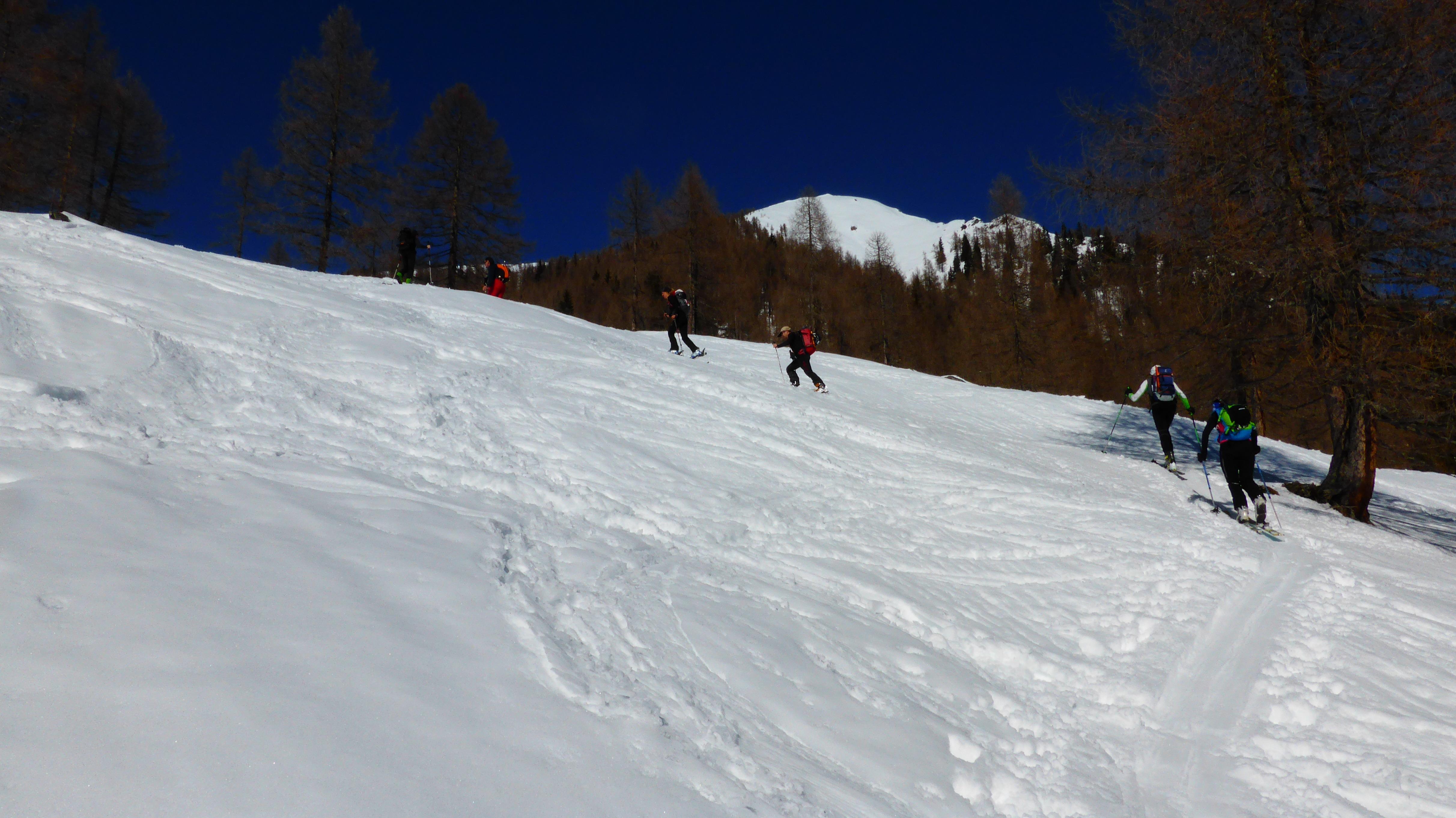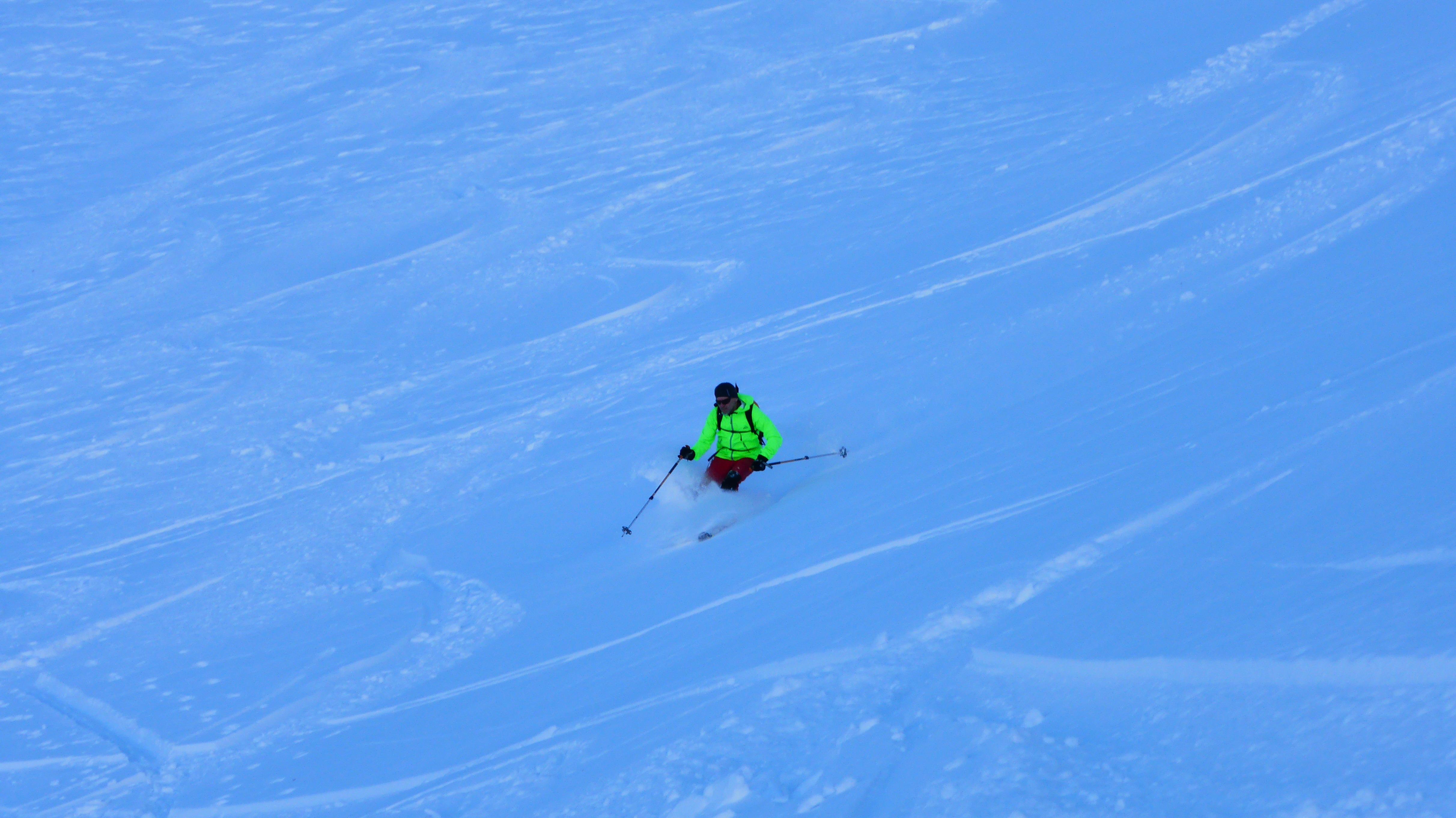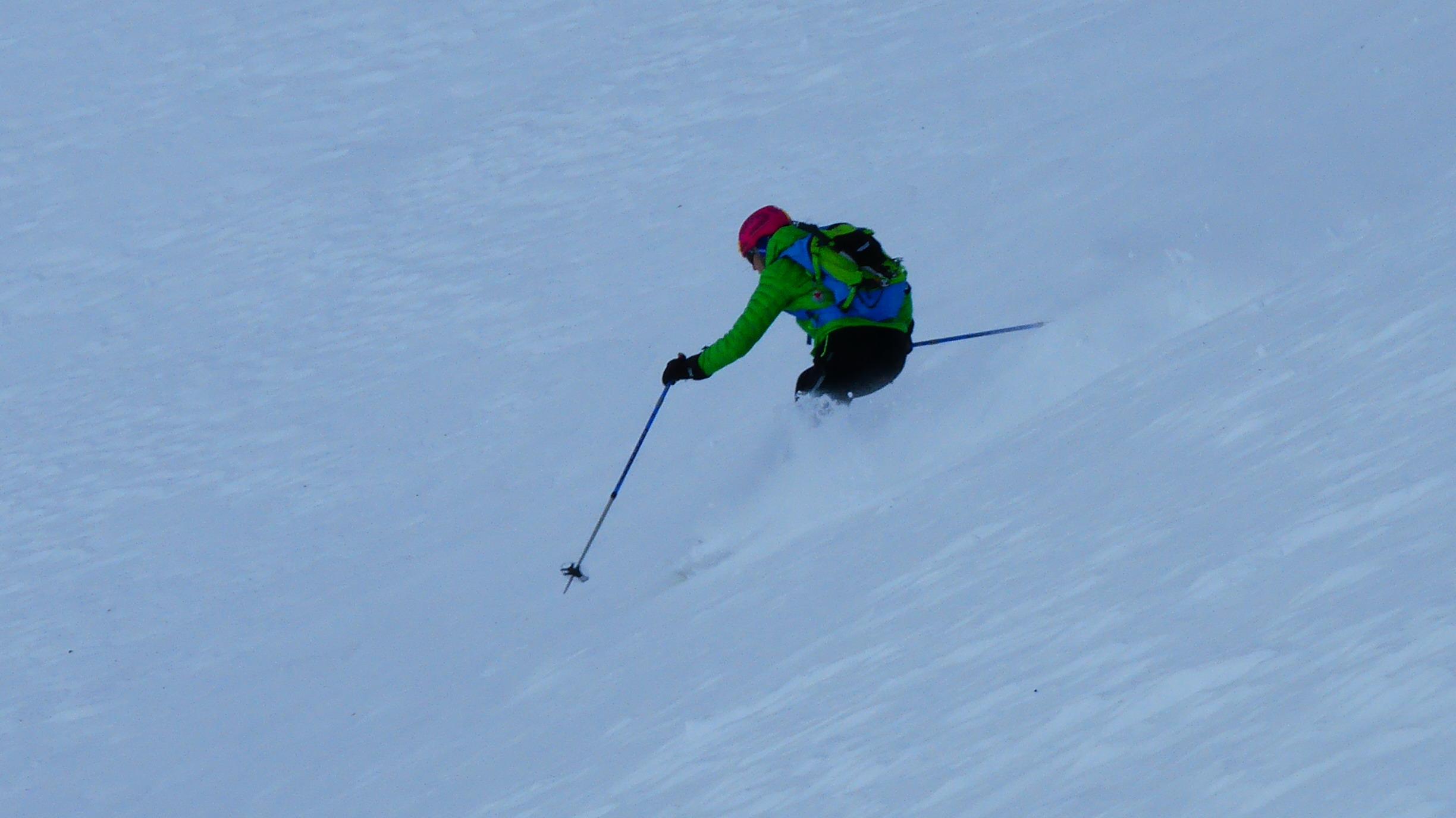 ...Schnee schattseitig noch pulvrig, sonnseitig bereits leicht firnig...am späteren Nachmittag dann teils schon etwas schneidig...
