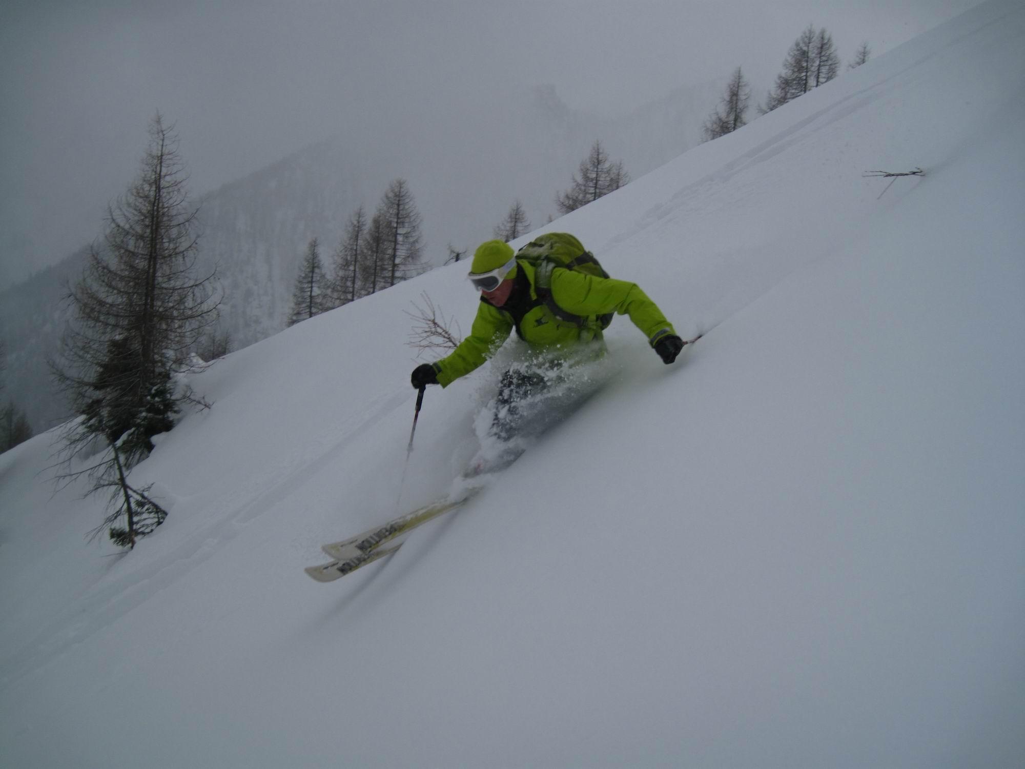 Wie in den letzten Tagen bereits öfter hier im Forum beschrieben, stiegen auch wir heute über die Ranstlalm auf das Schilcheck. Das Wetter war heute nicht mehr so perfekt wie gestern, bedeckter Himmel und leichter Schneefall. Der Pulver aber immer noch grandios. Lediglich der untere Teil würde noch einiges an Neuschnee vertragen.