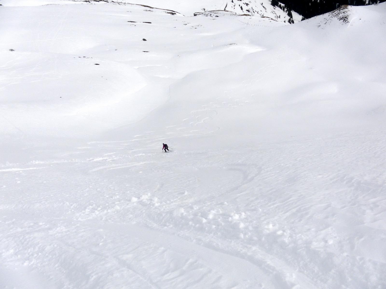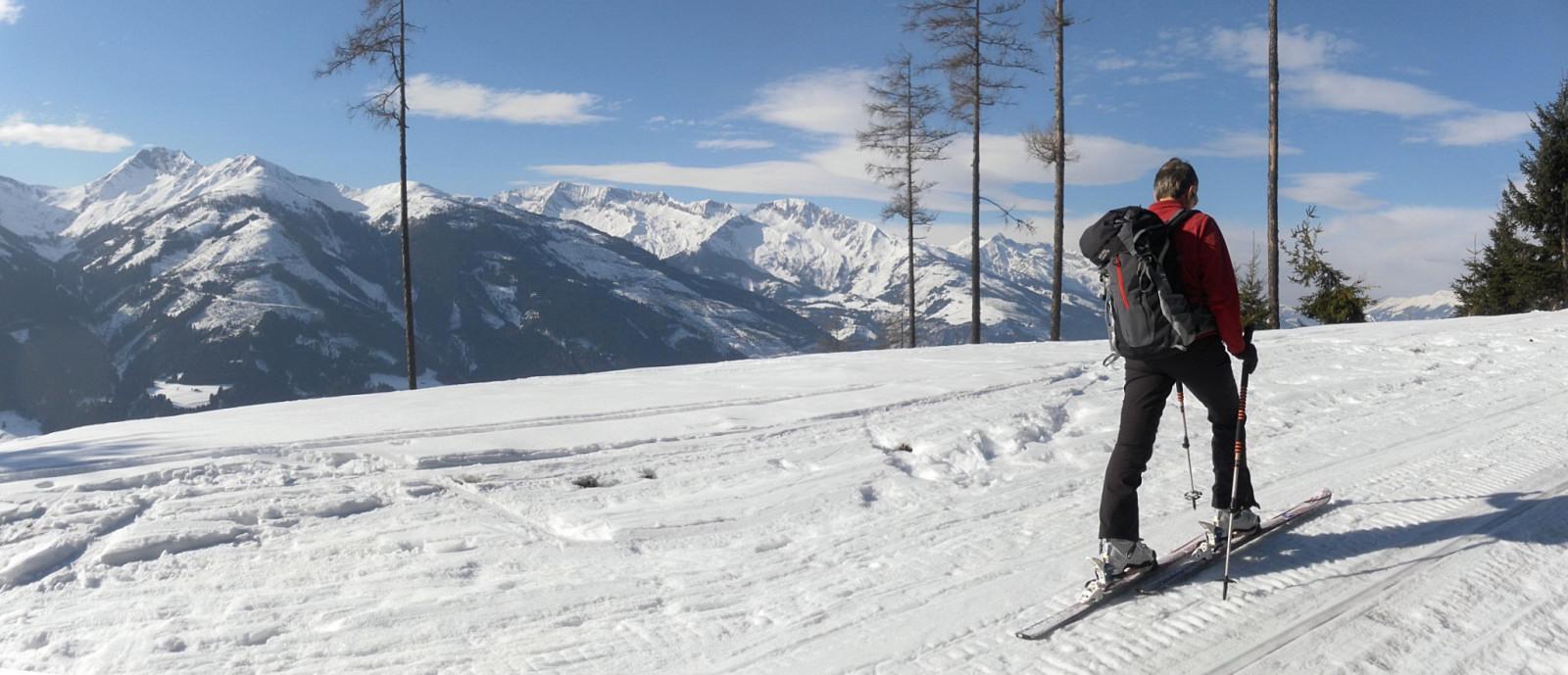 Zufahrt nach Hochprack sommerlich aper, ab dem Parkplatz durchgehend Schnee. Die Hoffnung auf Firn wird nicht erfüllt, die Sonne schwindet bald, am Gipfel Föhnsturm. Griffiger Harsch und Pulvernester lassen trotzdem eine erfreuliche Abfahrt zu.