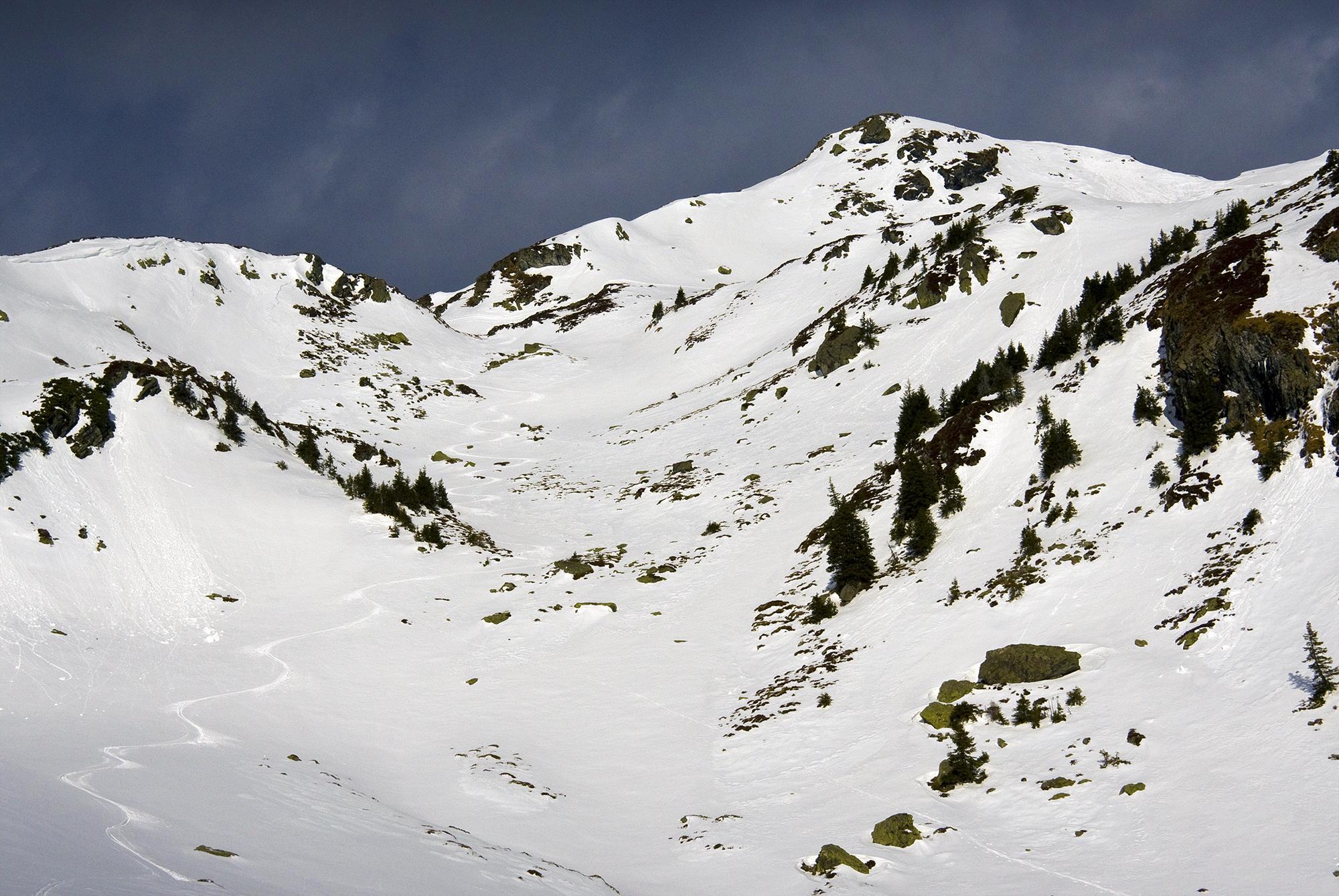 Bei der Abfahrt gab es schon auf 2000m Höhe Naßschnee. Aber es liegt noch genug Schnee über Ossmannalm und Lindlingalm zurück nach Lengau. Über diese Route empfehle ich auch bei kritischen Verhältnissen aufzusteigen.