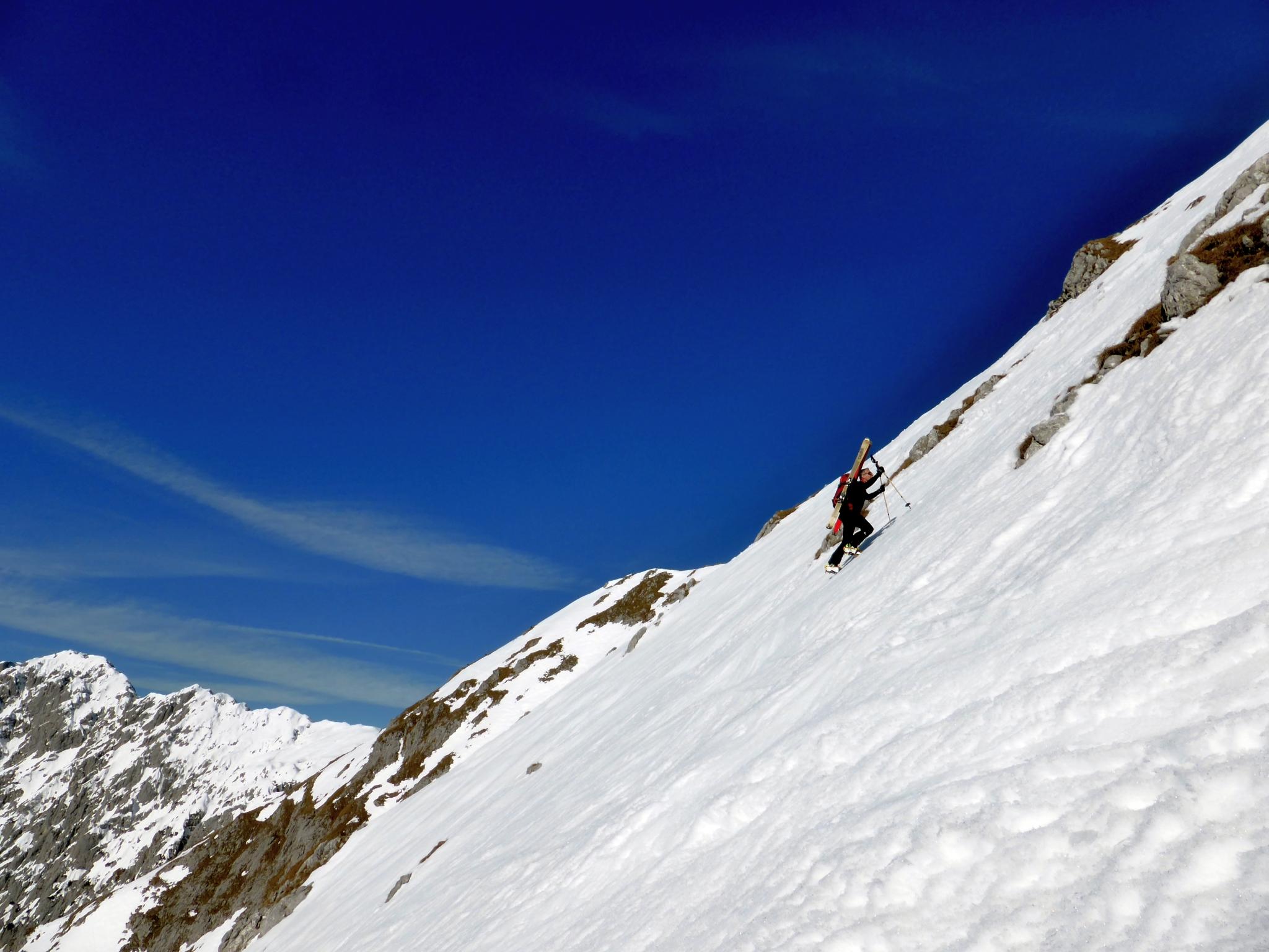 Sonstige Beobachtungen: Am Treffauer alte Spuren, Querung im unteren Teil nicht durchgehend mit Ski befahrbar – es liegt auch hier wenig Schnee.