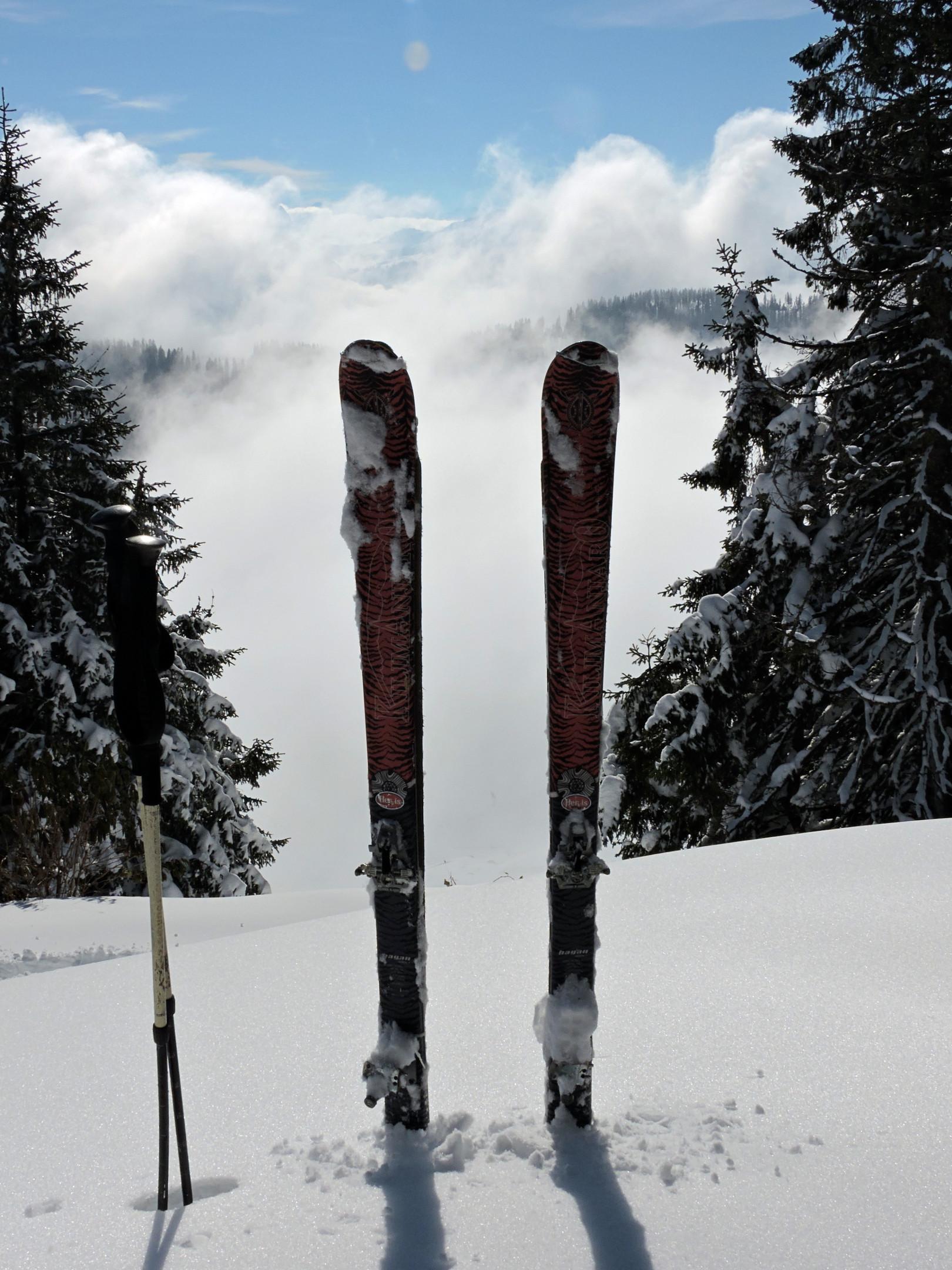 Unten schon mehr grün als weiß - 817 m Höhe, werde mir in den nächsten Tagen Ausgangspunkte >1000 suchen! Auf 1200 m findet man 40-50 cm Schneehöhe.