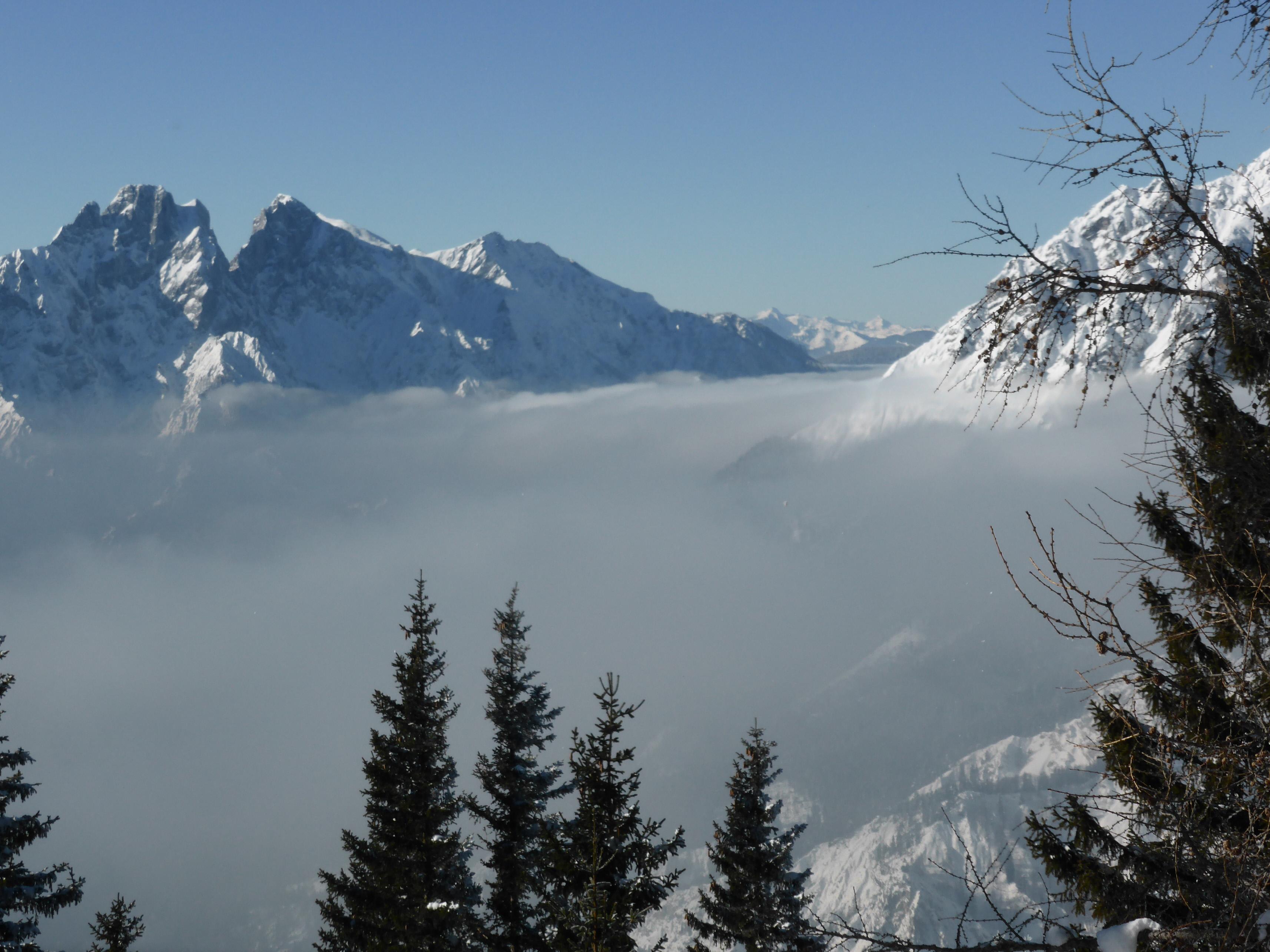 Durchscheinender Hochnebel über dem Gesäuse