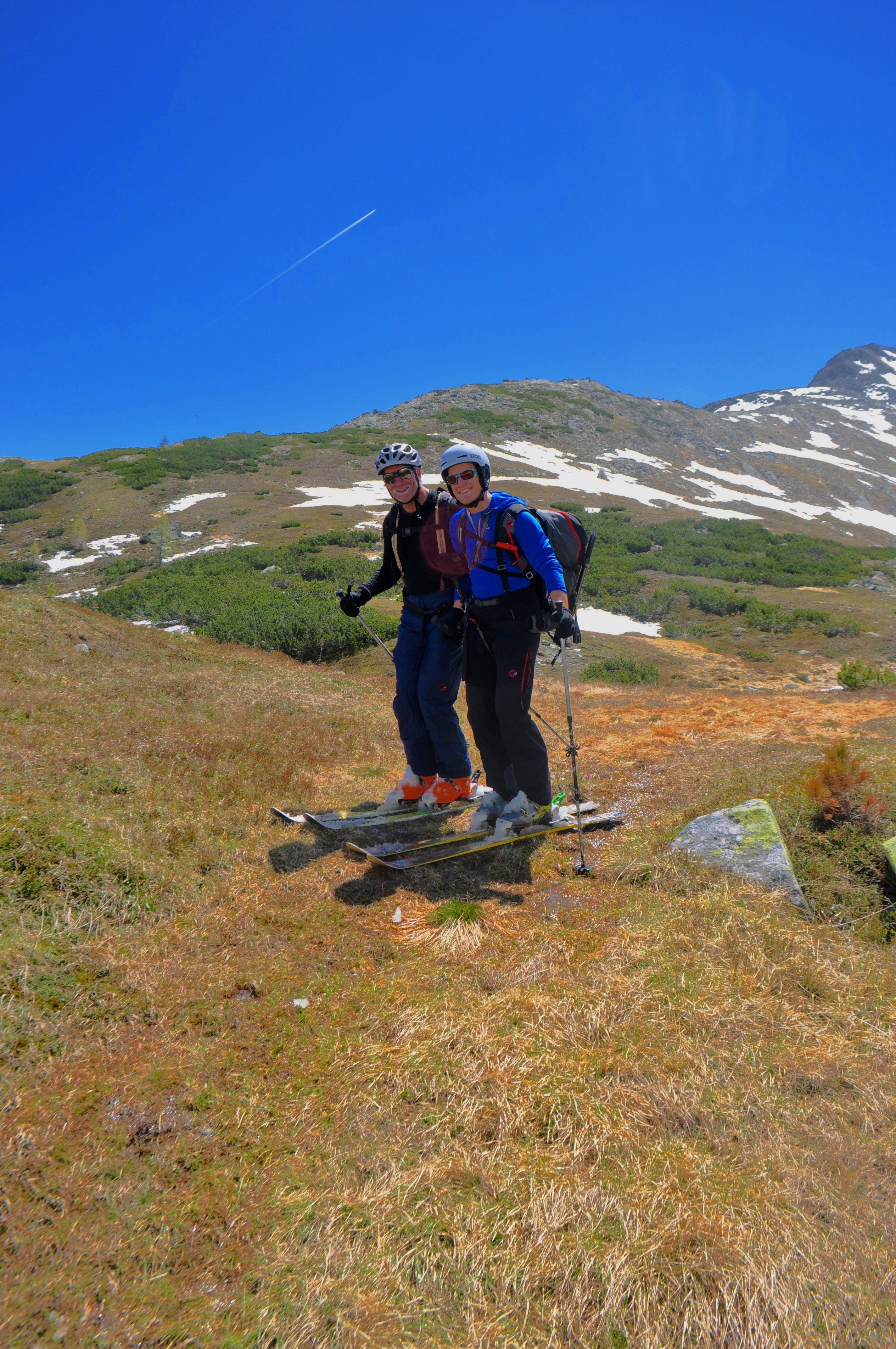 Vom Kölbreinstüberl um 05:15 mit Rad runter über Staumauer. Über Leiter runter zur Mauer (Seil für Rucksack und Ski ist vorhanden) und ca. 20 min Skitragen bis ins untere Langkar (relativ warm). Aufstieg Richtung Oberlercherspitze und bei Brunnkarschneid Seitenwechsel. Im Schatten auf durchgefrorener Schneedecke querend weiter zur Preimelscharte und übers Hochalmkees (warm) zum Gipfel. Gipfelgrat gute Bedingungen. Traumpanorama zum Glockner etc. Grat ohne Steigeisen und Pickel. Schattseitig noch hart in der Früh. Sonnseitig schneel aufgeweicht. Neuschnee der letzen Woche merkt man. Abfahrt geht trotzdem super. Nicht viel los auf der Hochalm (ca. 6 Leute). Abfahrt wie Aufstieg.