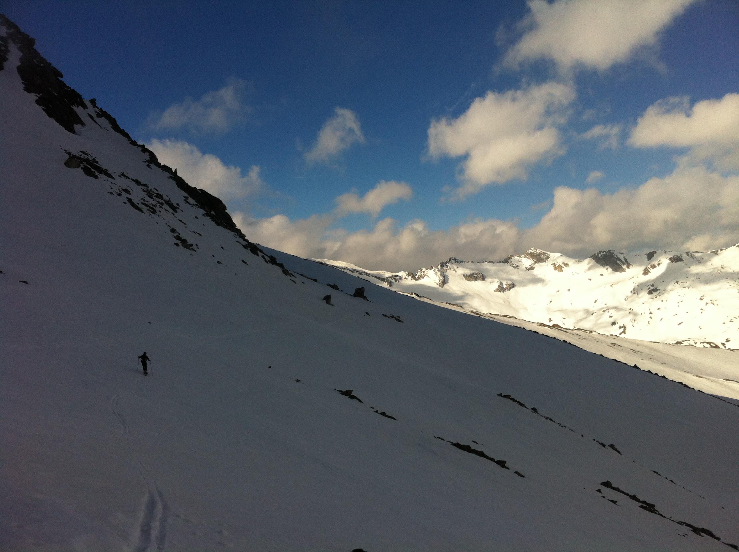 Lawinen: Im Steilgelände konnten wir zum Teil sehr große Schneebretter und Rutsche auf den einzelnen Bergen erkennen. Bei unserer Tour alles Bestens.
