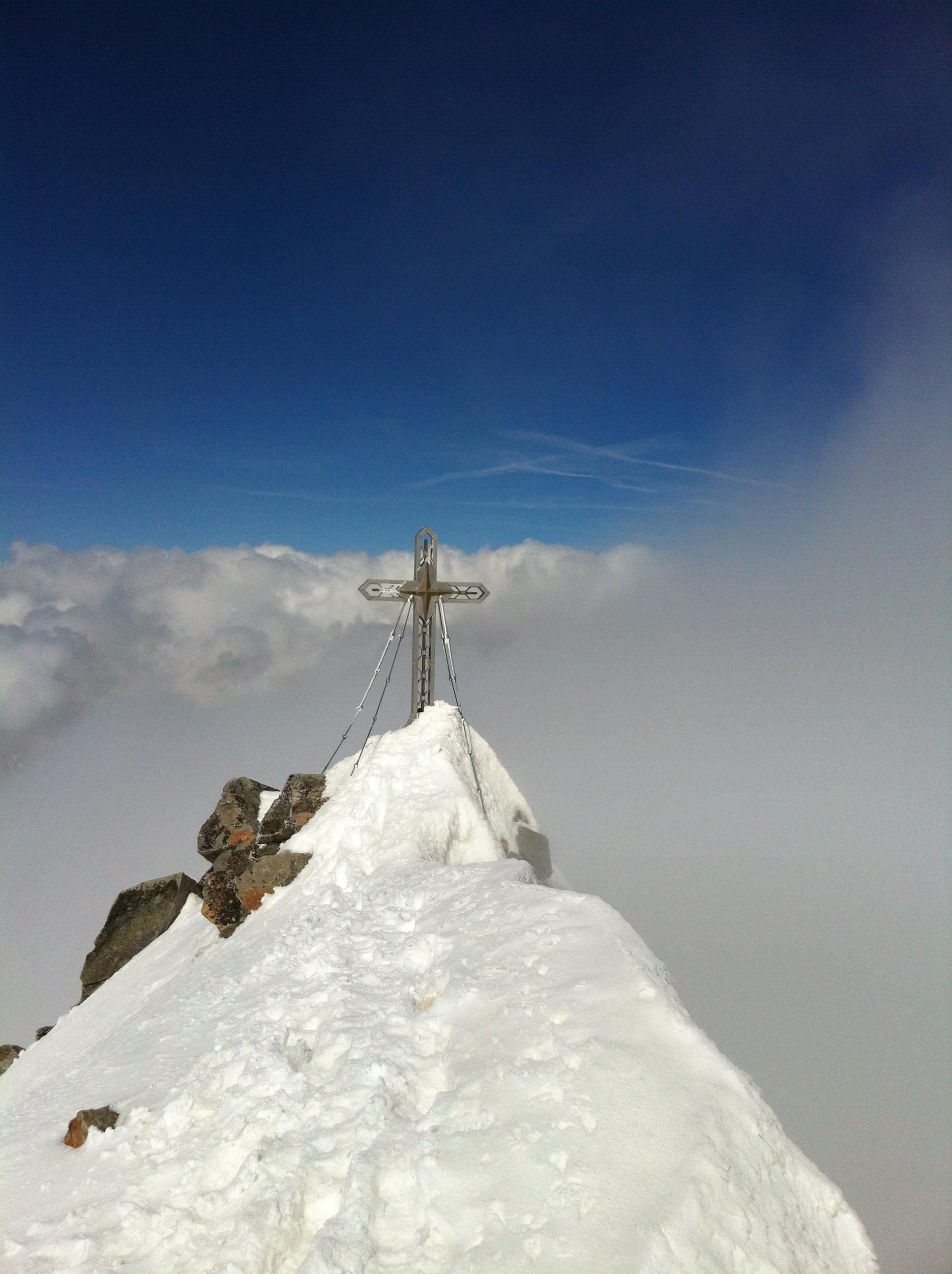 Wetter: Anfangs sonnig, dann zunehmend Nebel der uns dann am Hochalmkees endgültig die Sicht raubt. "Blind" gehts auf den Wintergipfel - wenn Engel reisen zeigt sich auch die Sonne pünktlich für einen Augenblick ;) Wir stapfen die restlichen Meter problemlos zum Gipfel und freuen uns über eine sagenhafte Stimmung ...