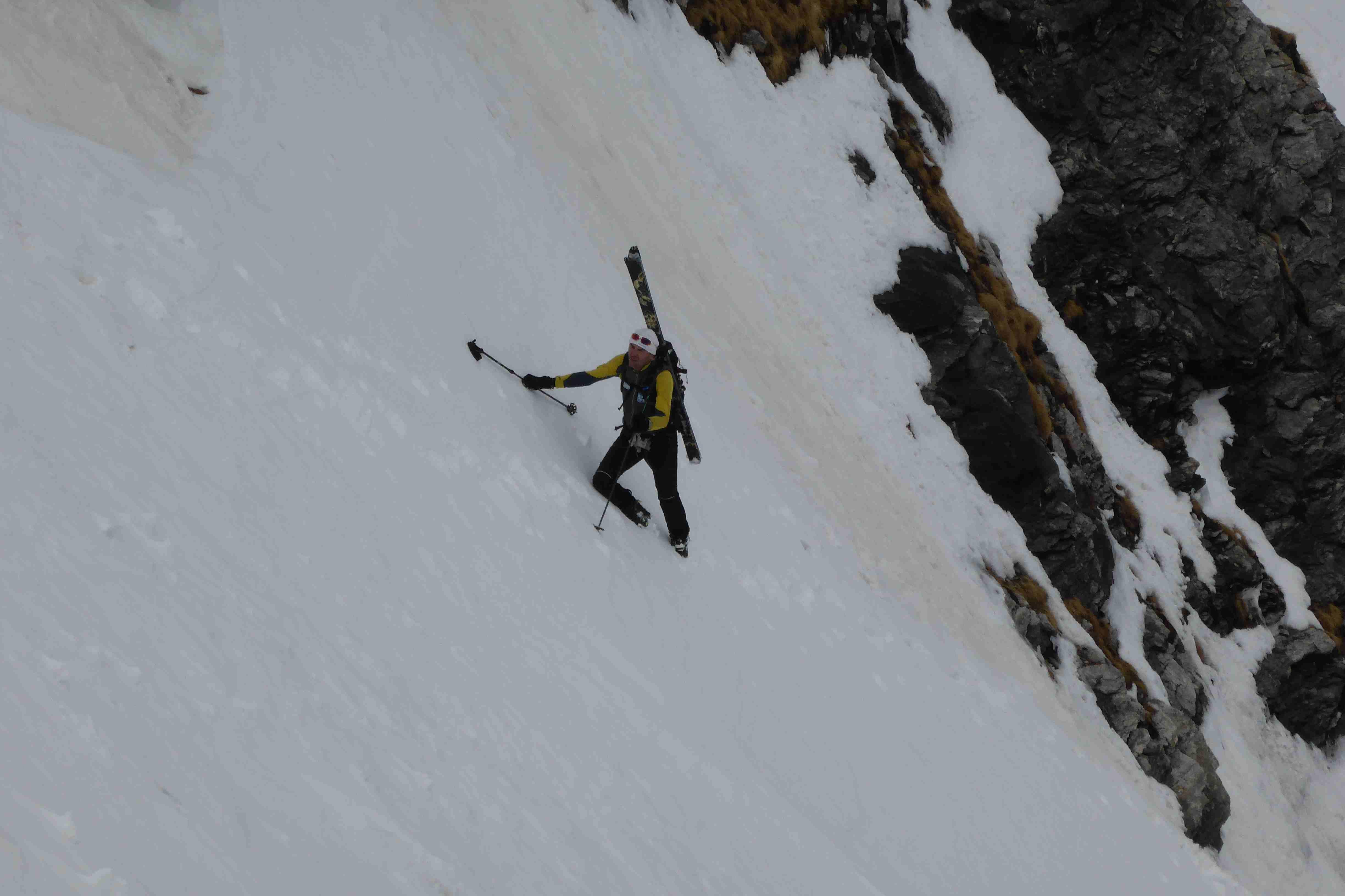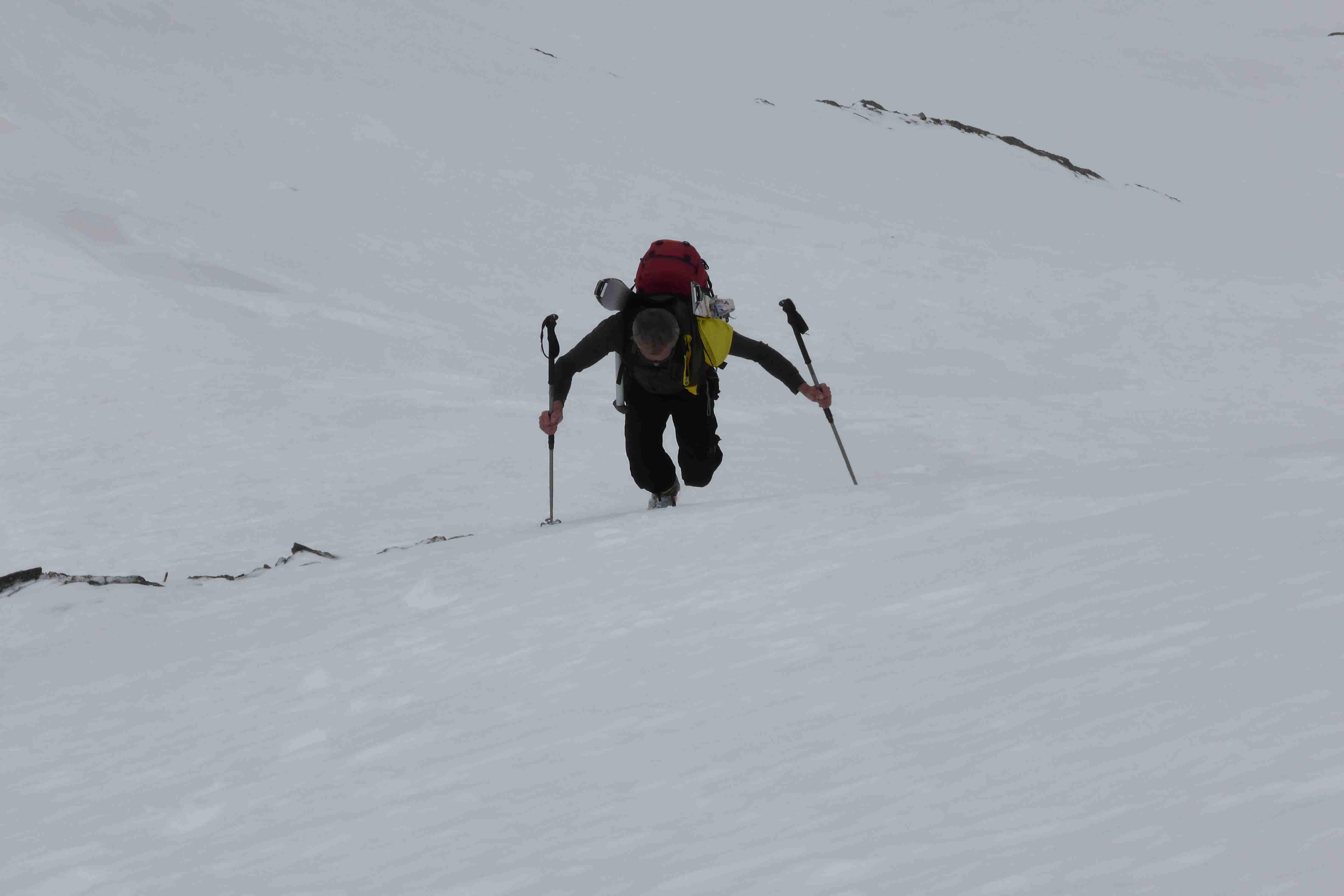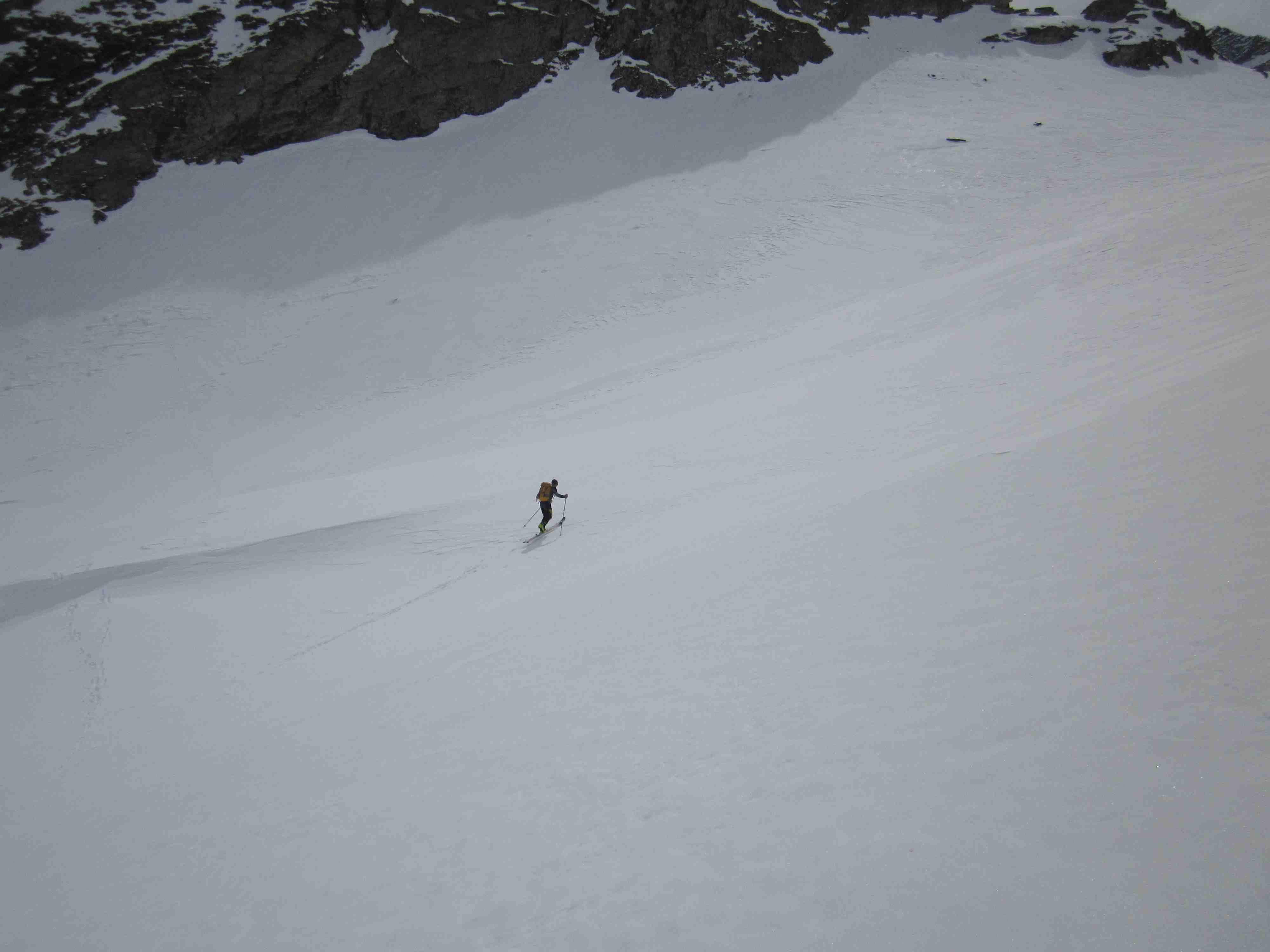 Also Abmarsch aus dem Pöllatal mit am halben Verhauer. Oben teilweise Windharsch, weiter unten guter Firn. Nur kurze Tragestrecke.