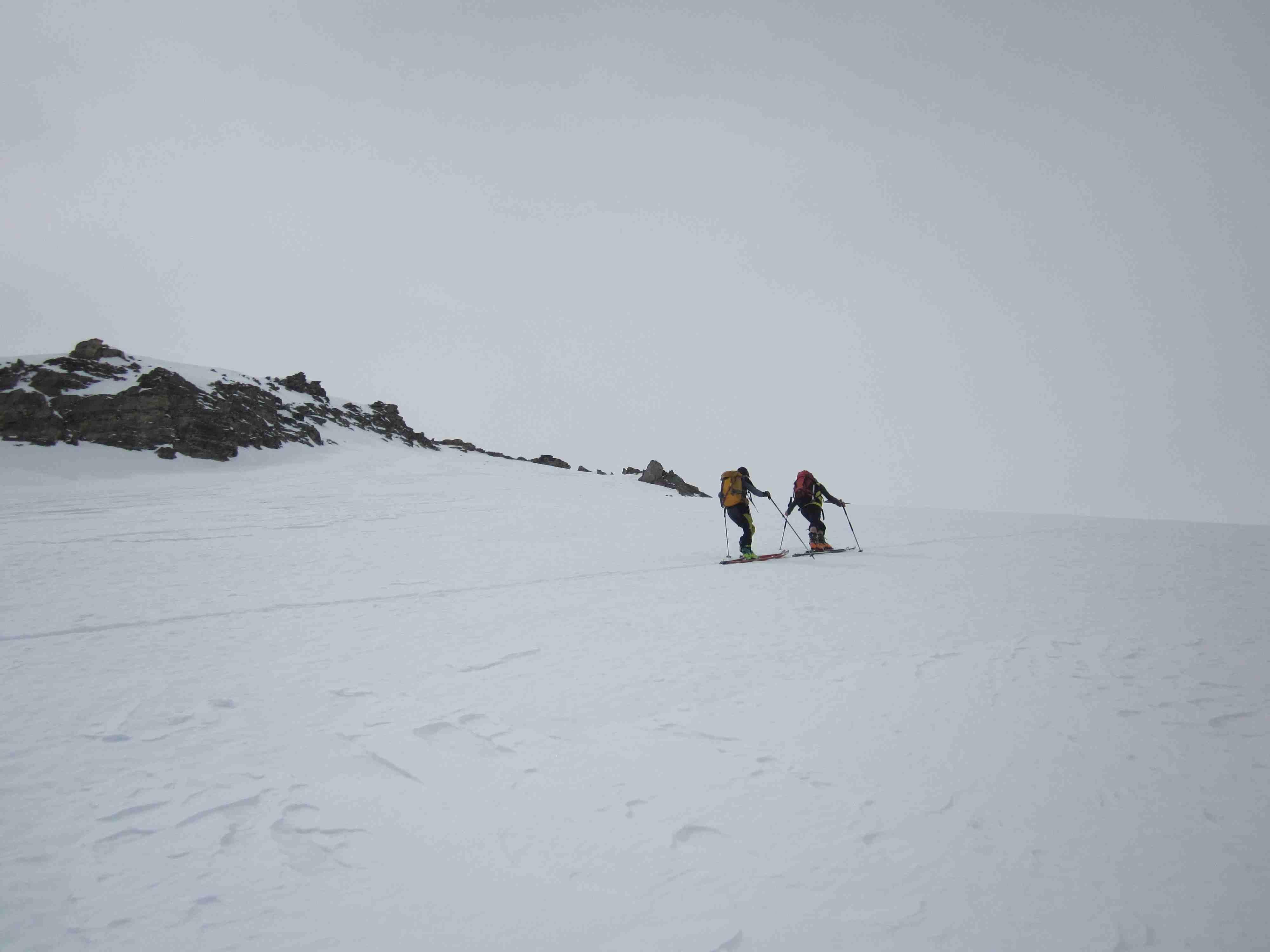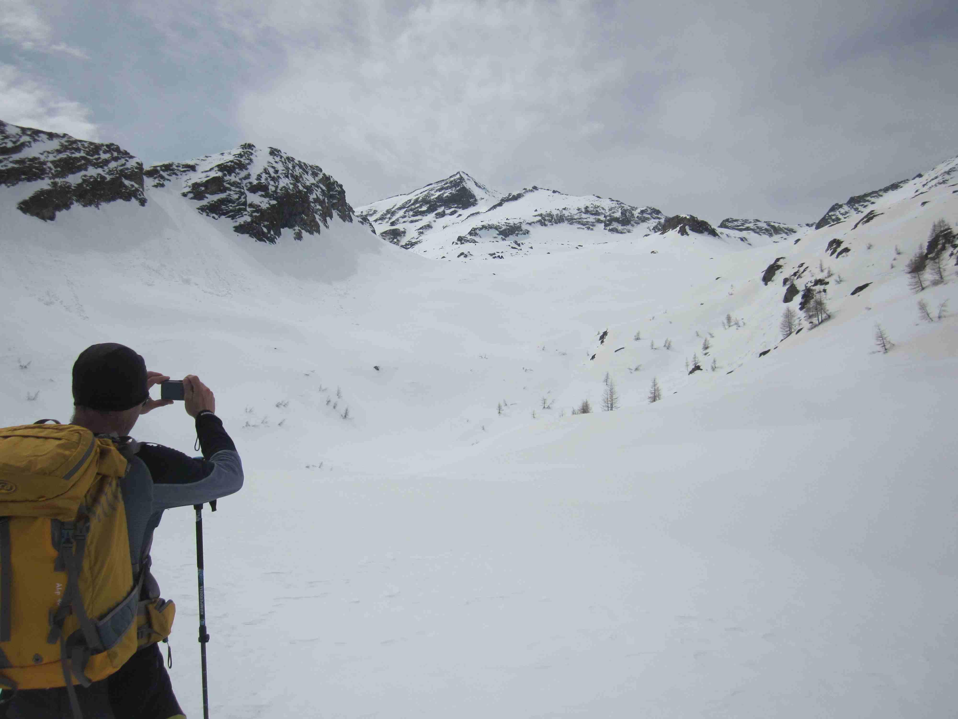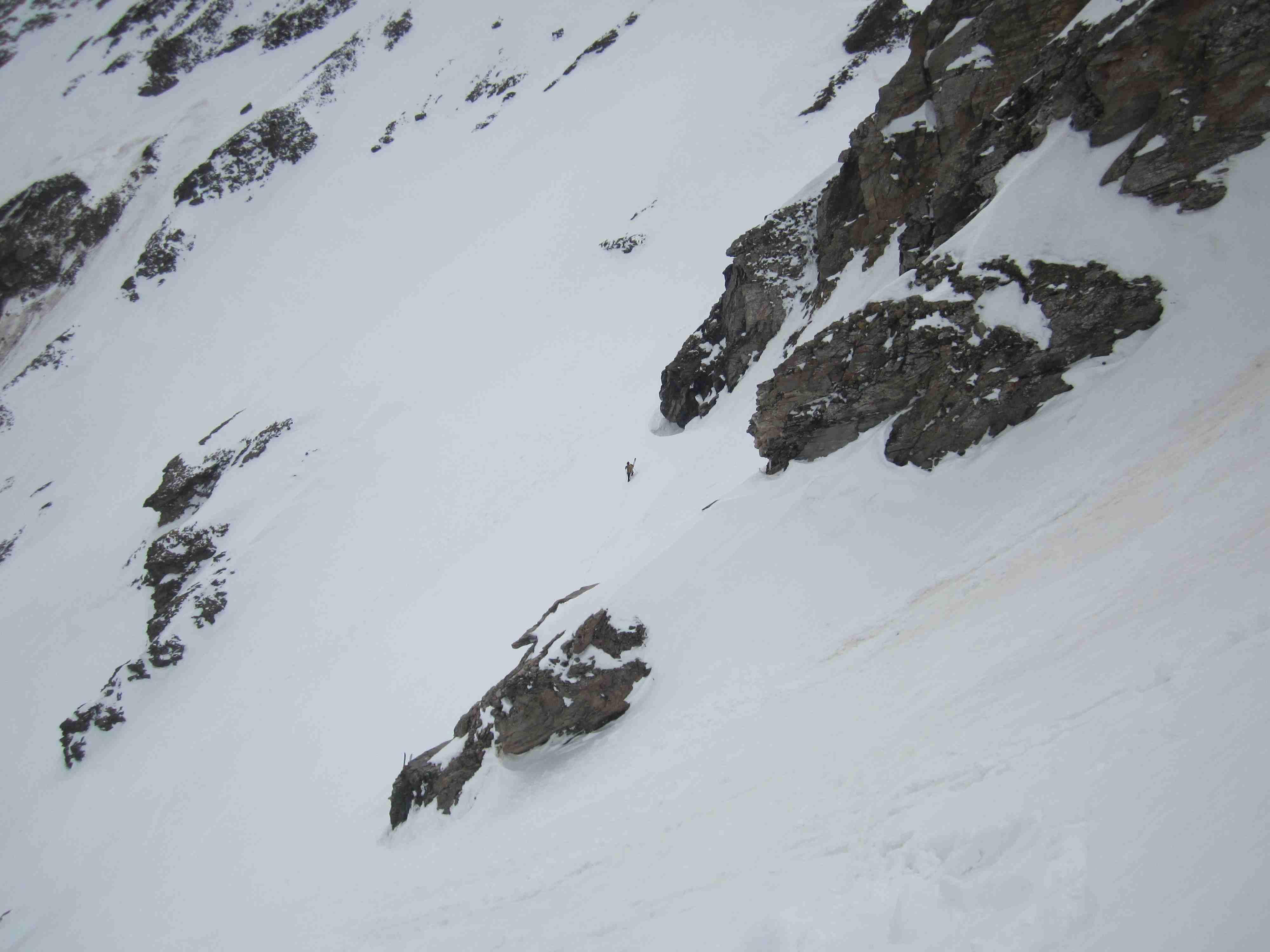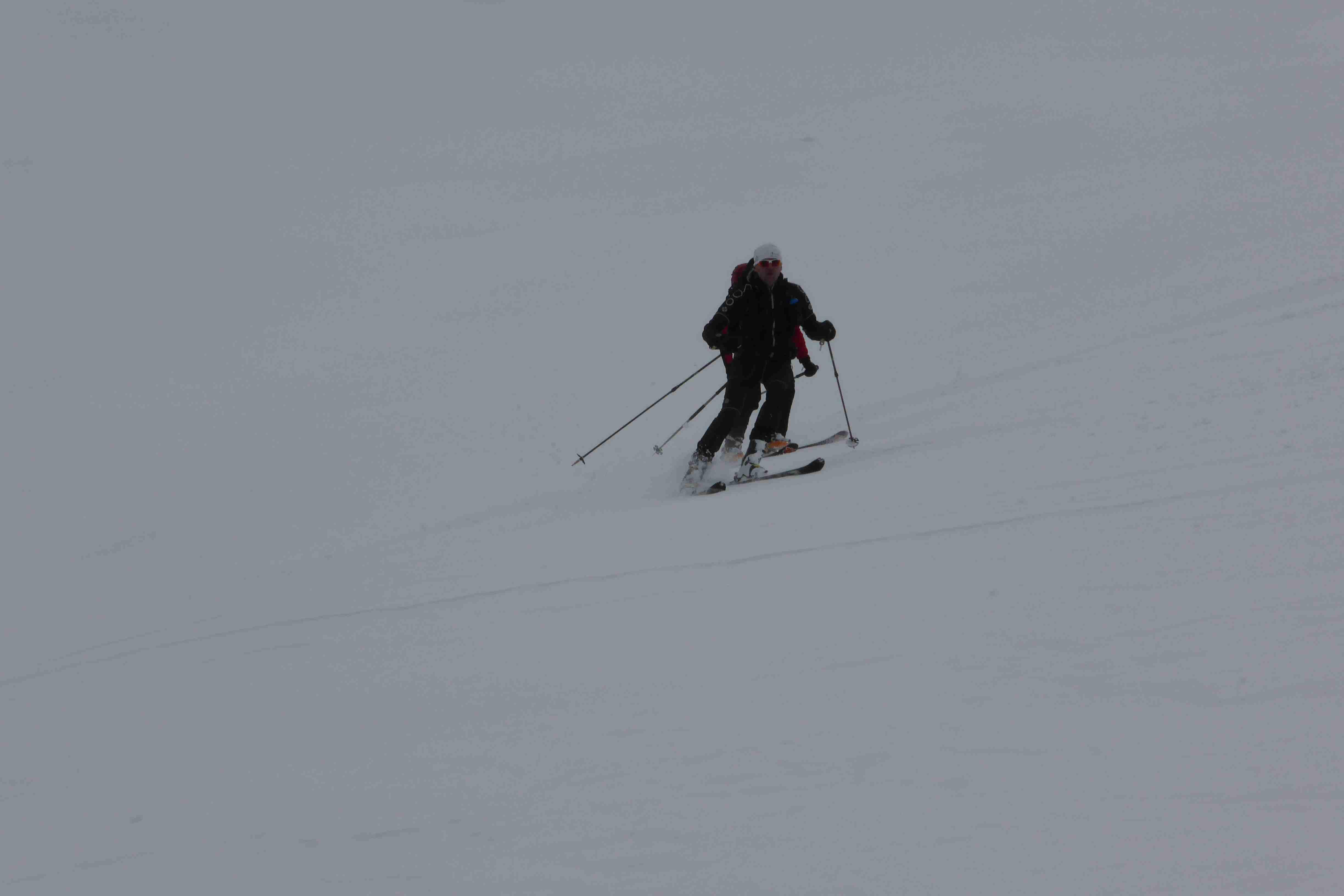 Also Abmarsch aus dem Pöllatal mit am halben Verhauer. Oben teilweise Windharsch, weiter unten guter Firn. Nur kurze Tragestrecke.