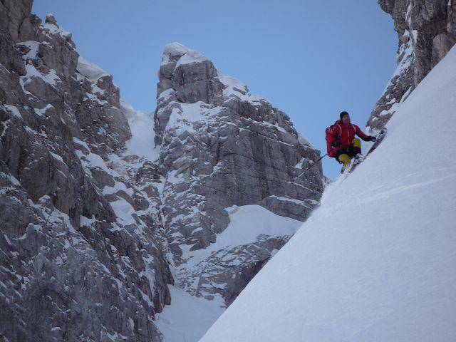 Hier an der Mosescharte verlief vor 100 (99)Jahren die Frontlinie zwischen K.uK. Österreich und Italien, damals saßen die Soldaten hier bei widrigsten Umständen, jetzt turnen wir mit unserer Superausrüstung rum.