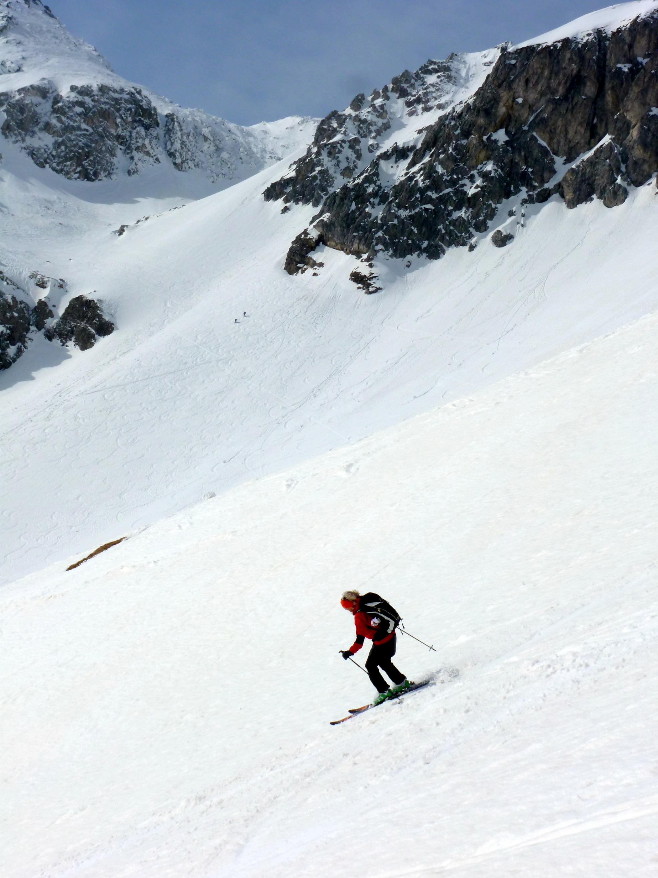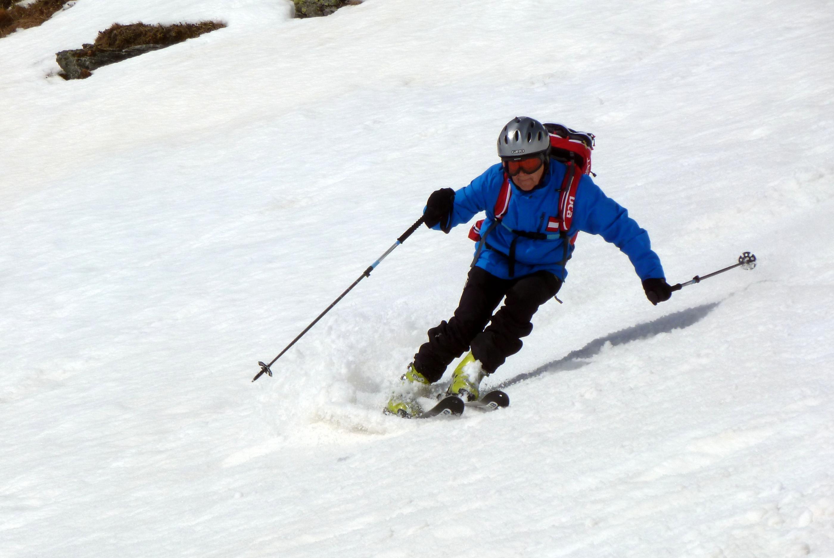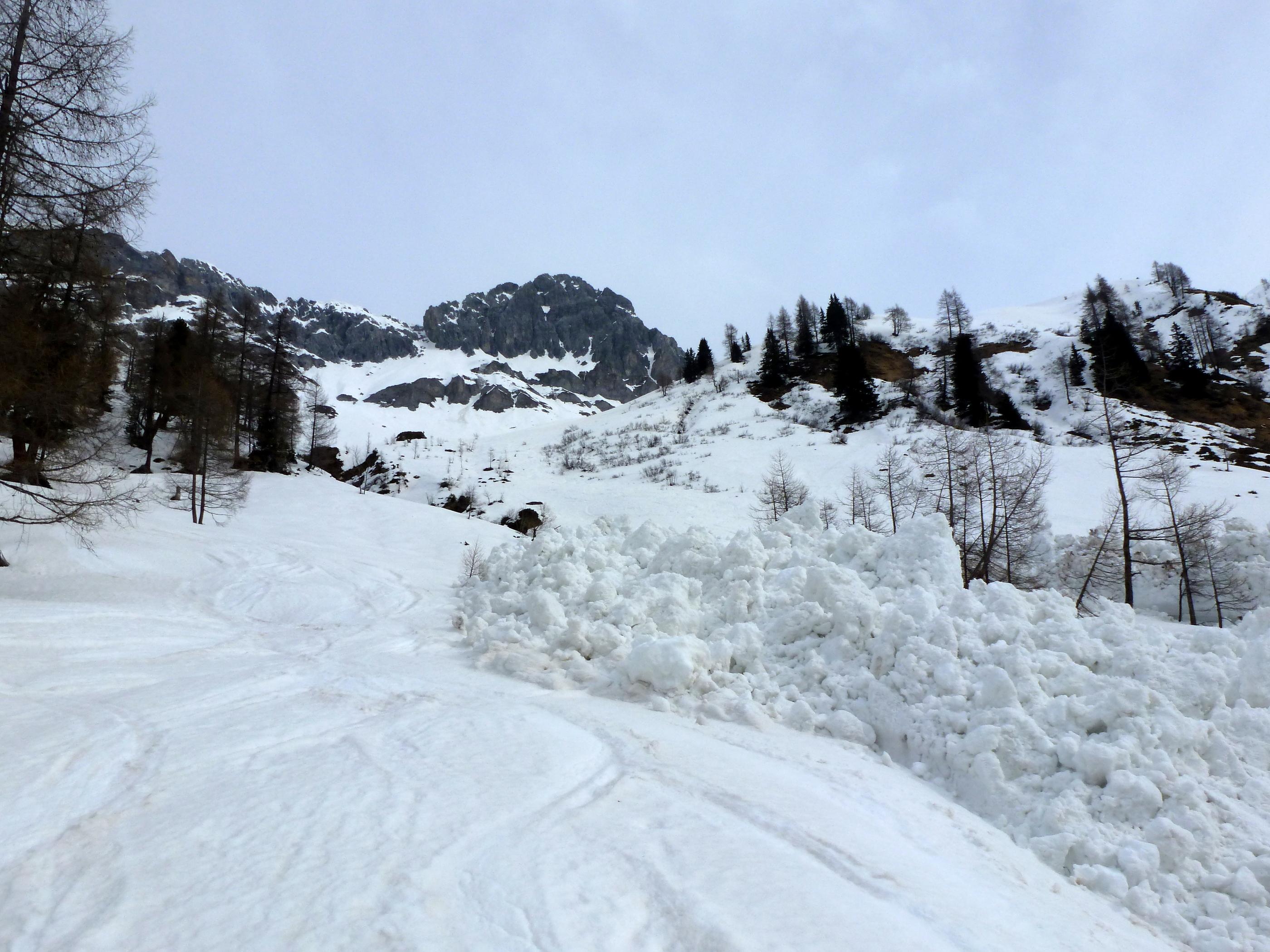 Die Hoffnung, dass der Lungau heute wetterbegünstigt sein würde, erfüllt sich nur bedingt. Unzureichende Abstrahlung über Nacht, dazu um 3 - 4 Grad wärmere Temperaturen in Zederhaus gegenüber Flachauwinkel, ein nur schwach ausgepägter Harschdeckel im Anstieg über Muhrer- und Kößlerhiasalm. In der Schliererscharte empfängt uns ein in Böen teilweise orkanartiger Wind, der auch auf den ersten Hängen Richtung Schliererspitz nicht nachlässt, sodass wir den Rückzug hinunter in windgeschütztere Geländeabschnitte antreten, weil auch die weiteren Hänge nach oben nicht gerade den großen Skigenuss versprechen. Abfahrt an mehreren älteren Nassschneelawinen-Kegeln von teilweise beachtlichen Ausmaßen vorbei, südseitig überwiegend als Schneebretter unterhalb von Versteilungen im Gelände abgerissen, ostseitig durchwegs mit punktueller Auslösung.