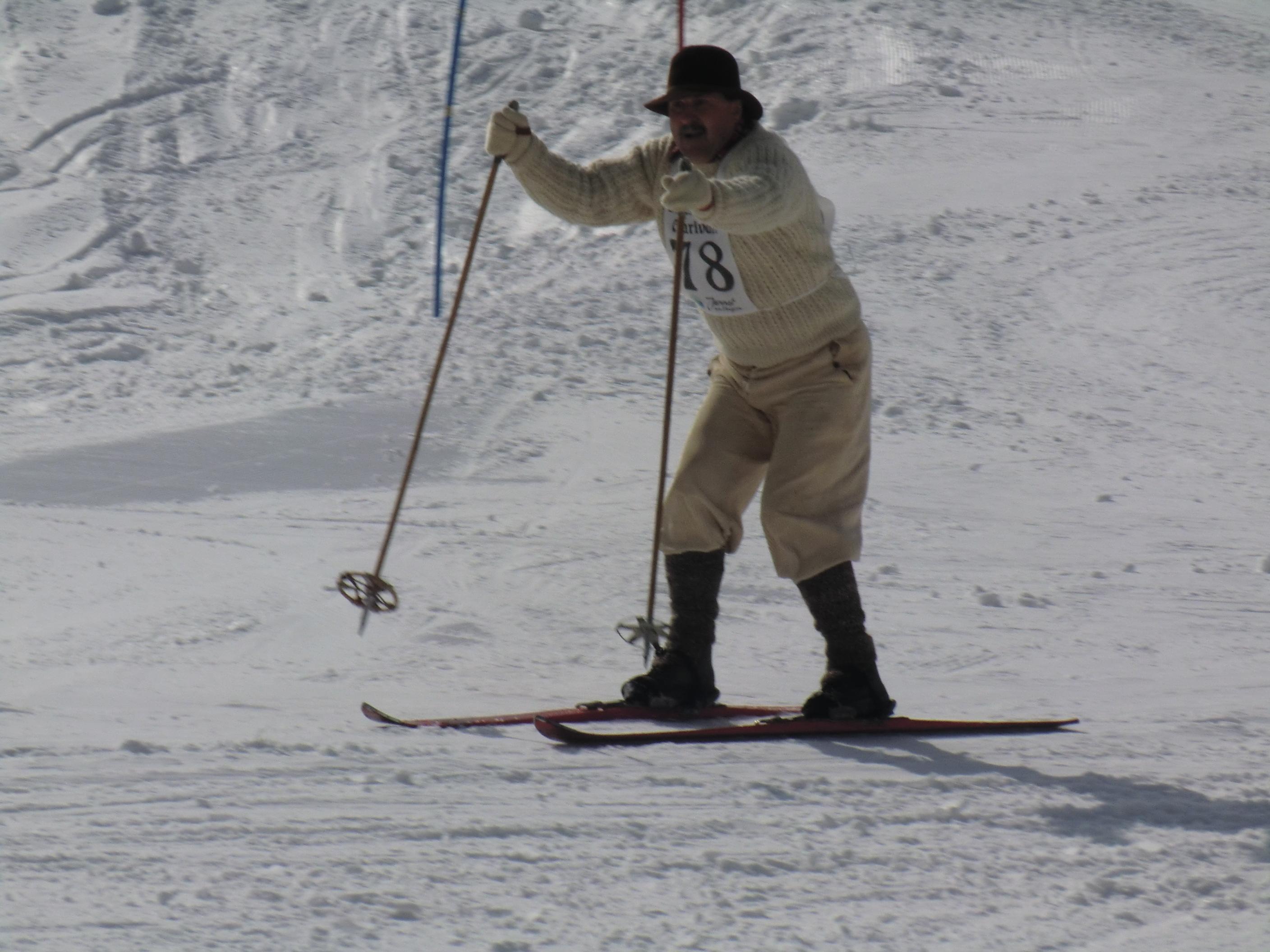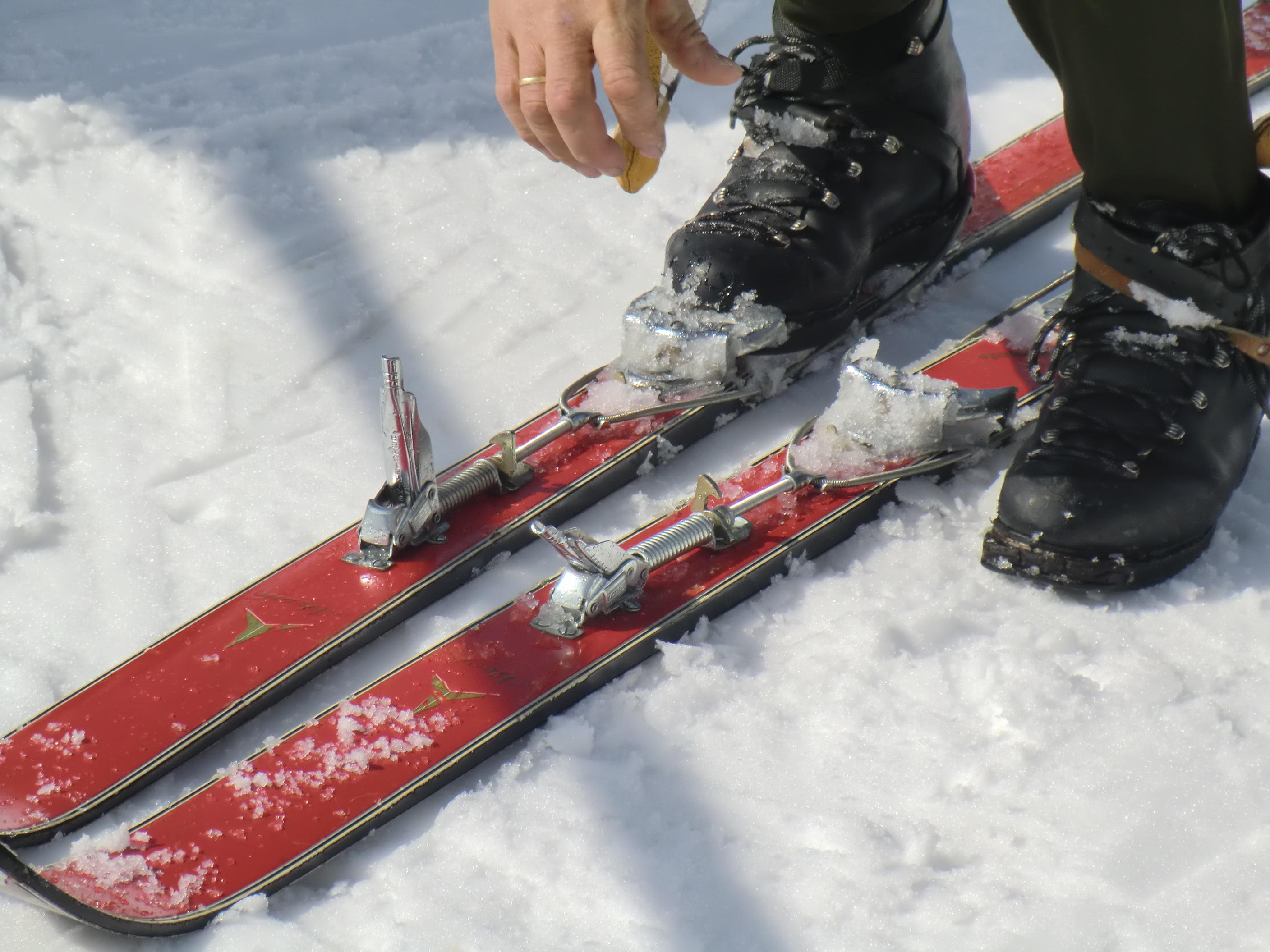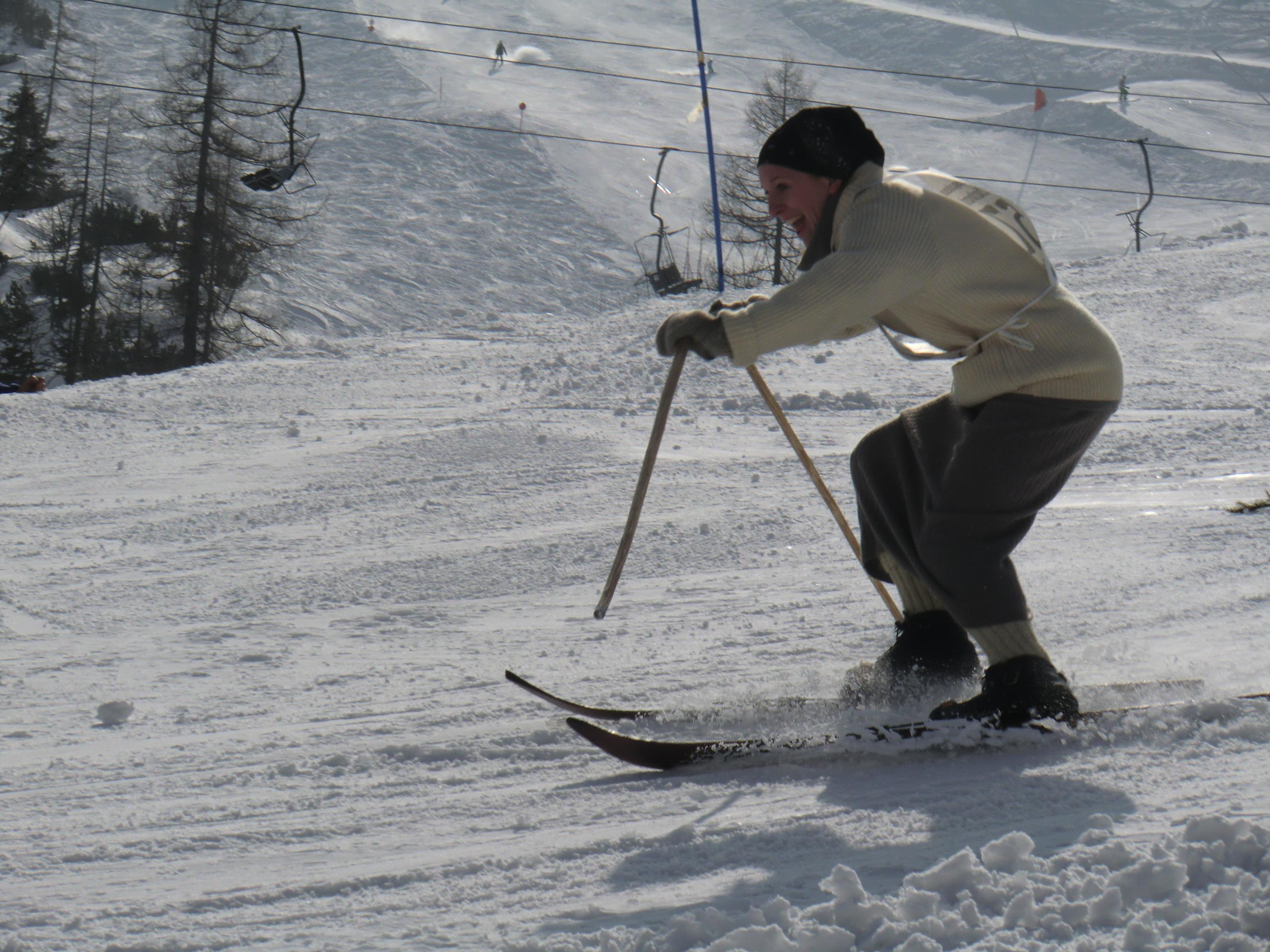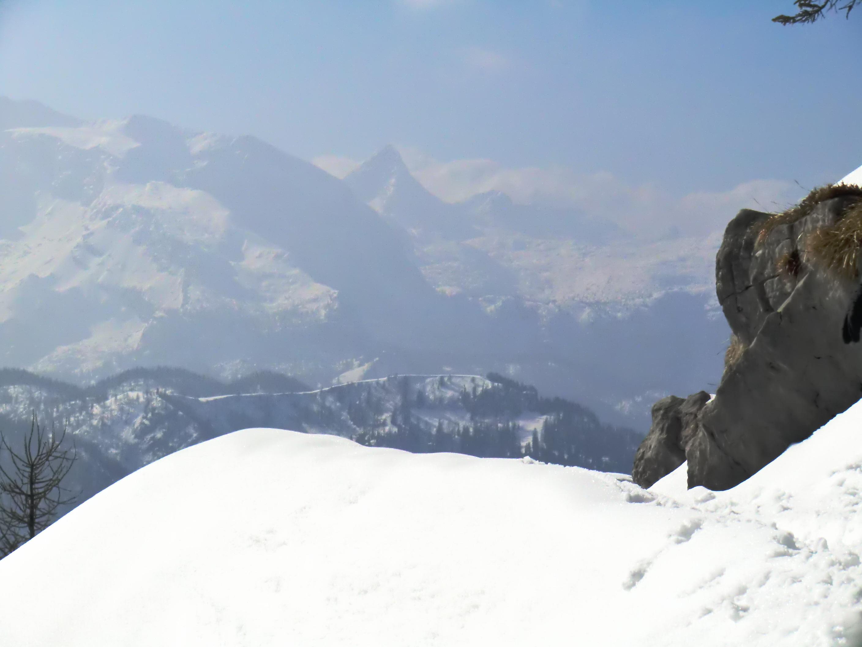 Der Jenner bot heute beste Bedingungen. Waren die Wiesen unterm Krautkaser abseits der Pisten schon mal ziemlich aper, so präsentieren sie sich jetzt wieder hochwinterlich – nordseitig auch noch in Pulverqualität. Am Gipfel windstill. Die Luft war dunstgeschwängert und die Fernsicht somit diesig. Dafür entschädigte eine nostalgische Draufsicht am Mitterkaser. Dort gaben altehrwürdig Pioniere heute ihr Schikönnen zum besten: Holzschi ohne Stahlkanten, legendäre Kandaharbindung, mit Haselnussstecken oder im Einstock-Stil, im wallenden Loden und mit schafwollenen Gamaschen, die Schi tlw. so alt wie ihre Fahrer/innen. Ein Augenschmaus – jenseits von Goretex, Primaloft und Sicherheitsbindung. Mit einer inneren Verneigung aber doch froh über mein neumodernes Zeux an den Füssen ging es beschwingt zurück bis Mittelstation. Von dort eine kurze Tragestrecke bis PP Hinterbrand.