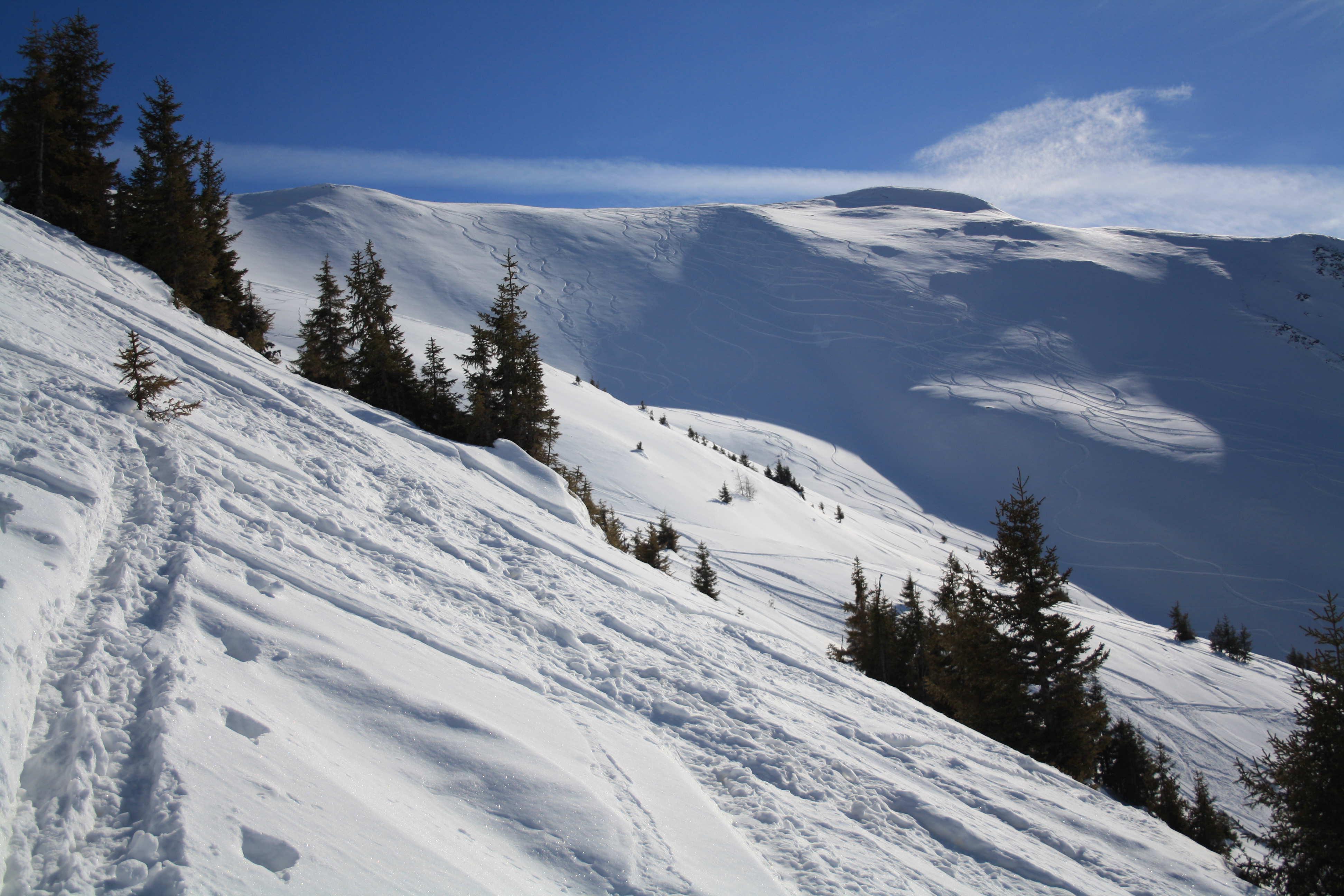 Dazwischen lag dann noch eine wunderbare NW-seitige Pulverabfahrt in Richtung Vogelalmgraben bis zur Unt. Zehetner Hochalm und Wiederaufstieg zum Seekar. Von dort aus ging ich noch ein kurzes Stück weiter zum nächsten Gipfel am Kamm.