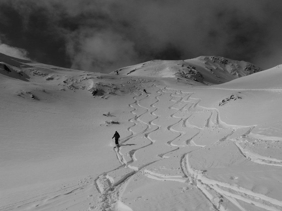 Bedeckter Himmel, die Sonne zeigt sich nur sehr zögerlich, Neuschnee über Nacht bringt Pulverfreuden in wechselnder Höhe