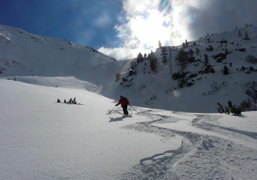 dementsprechend schnittig, im Mittelteil schöner Pulver, der uns heute fast allein gehört, im unteren Bereich lähmend langsame