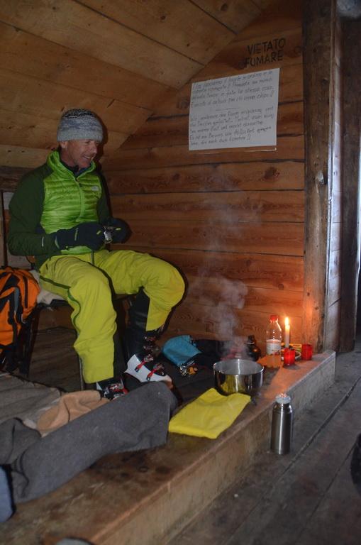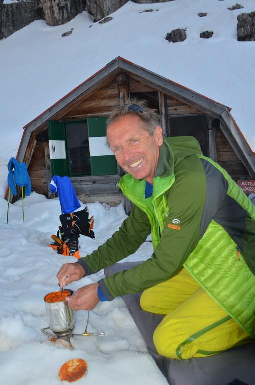 Tipp: Am Biwak zeigt ein Pfeil mit der Aufschrift "Aqua" zur Hütte, wir konnten dort auf jeden Fall nichts finden und haben uns dann das Wasser von den Felsen oberhalb der Materialseilbahn geholt. Hier rinnen Tagsüber richtige Bäche die Wand herunter. Wir hatten einen leichten Schlafsack mit und ich würde das auch jedem anderen so empfehlen.