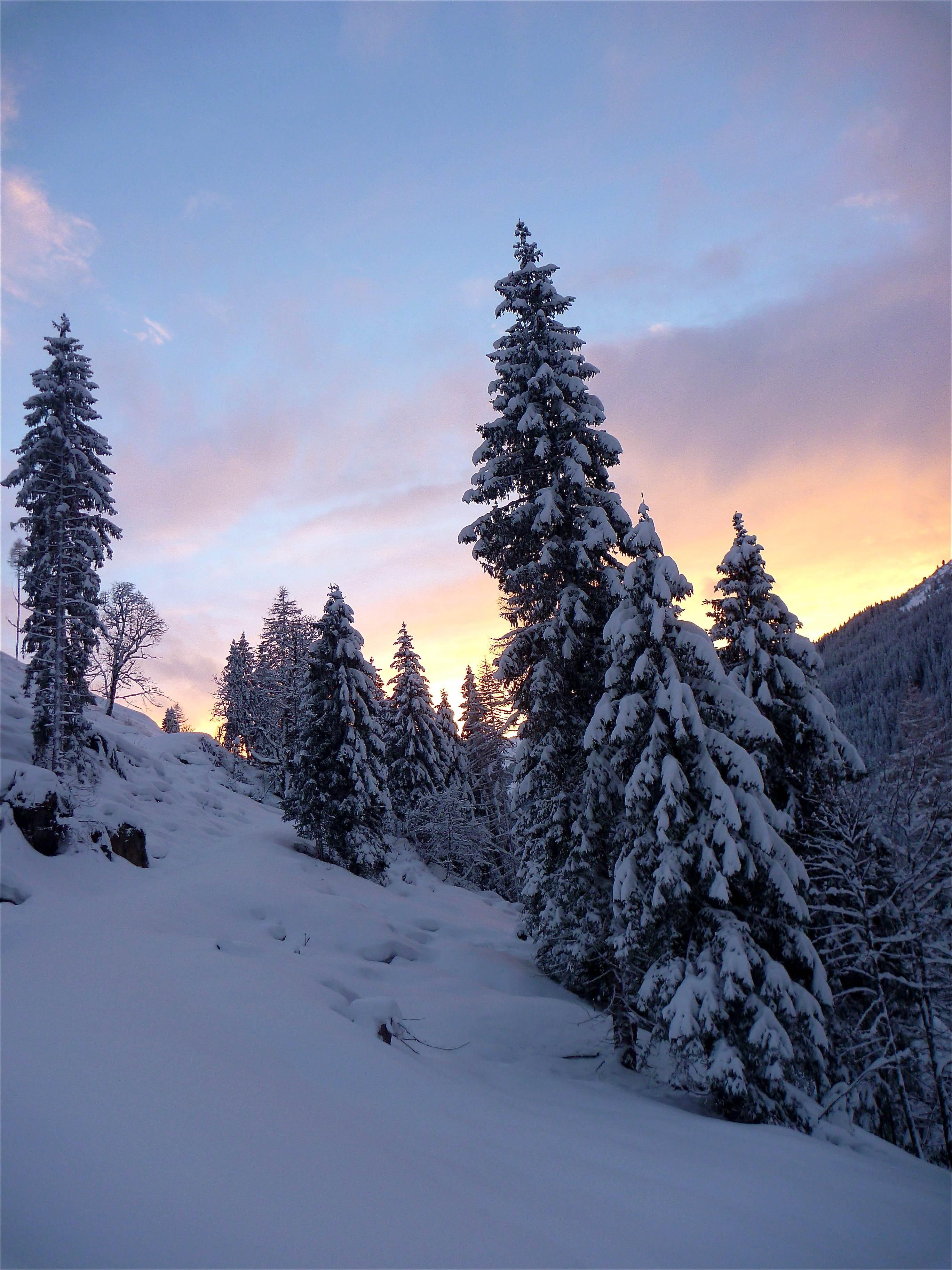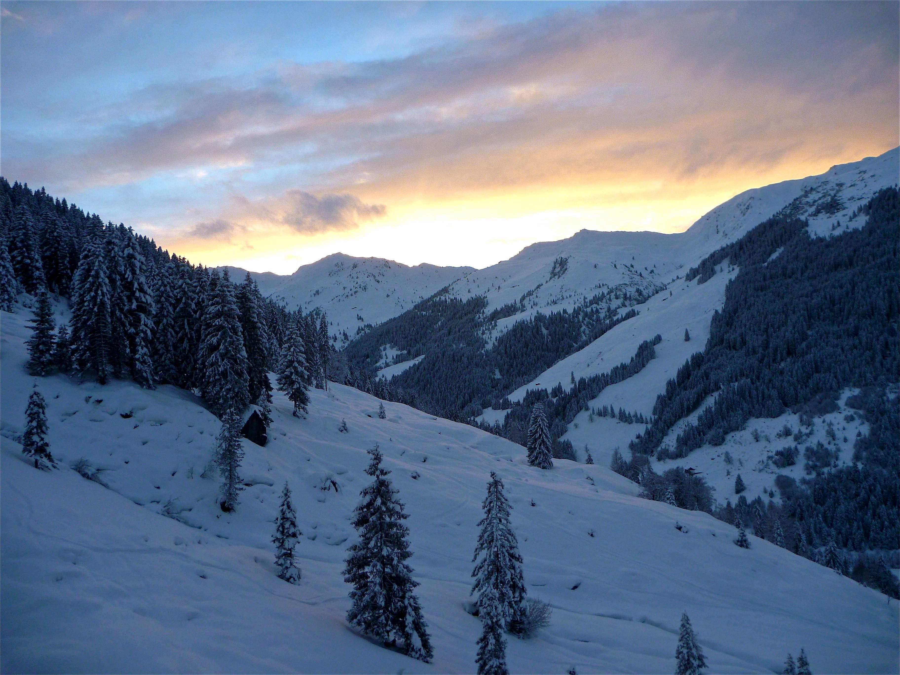 Kurz vor 17:00 begann es aufzuklaren - den frühen Vogel wirds gewurmt haben, wenn der bunte Vogel den Pulverschnee-Wurm fängt ;-)