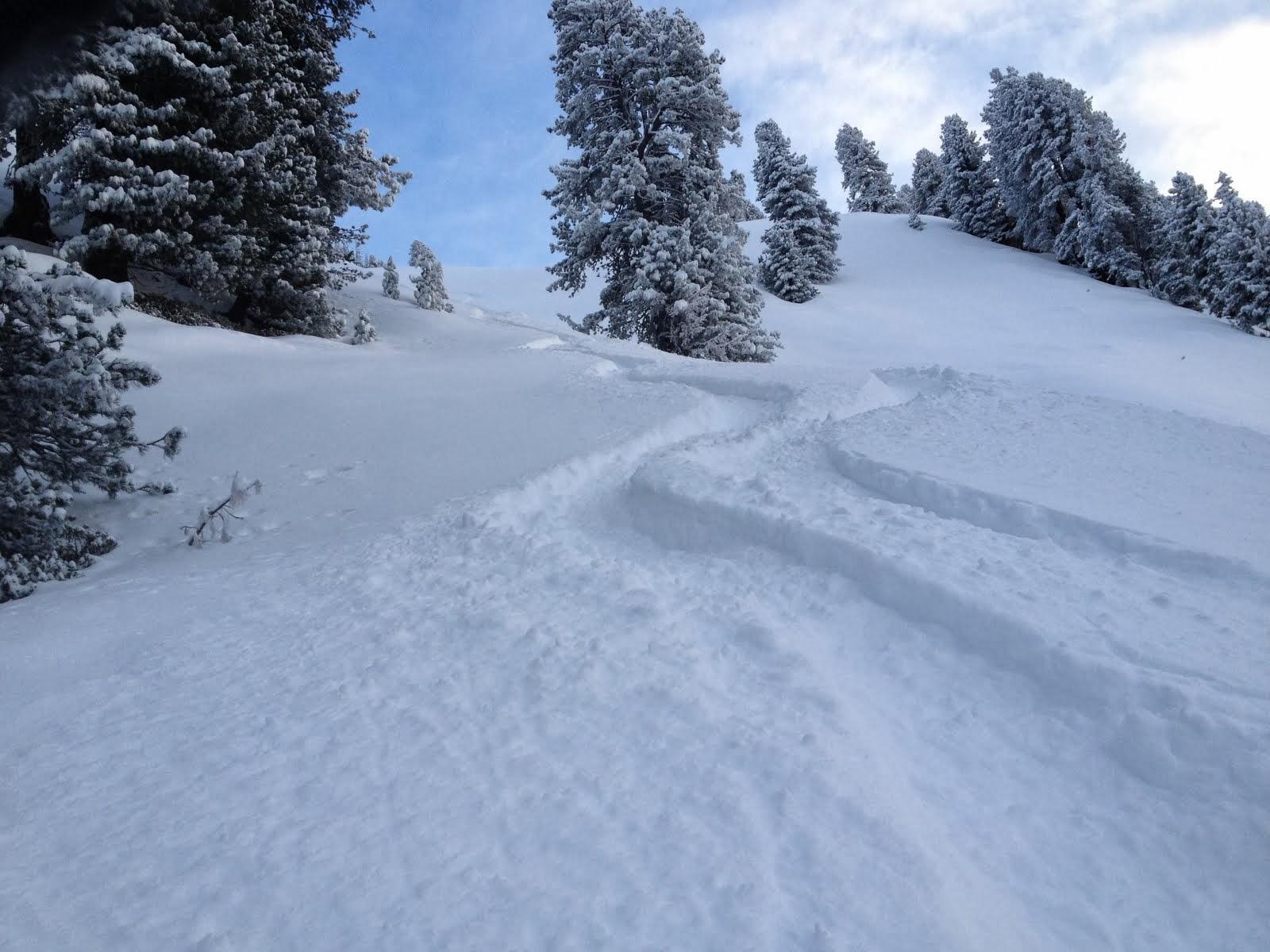 8.2 10-20cm lockerer Neuschnee ungebunden auf verharschter Unterlage, im Grunde geringe Gefahr, allerdings gabs tw. Sturm, der zu einer sehr heiklen Triebschneesituation führte, Verwehungen bis zu 1m.