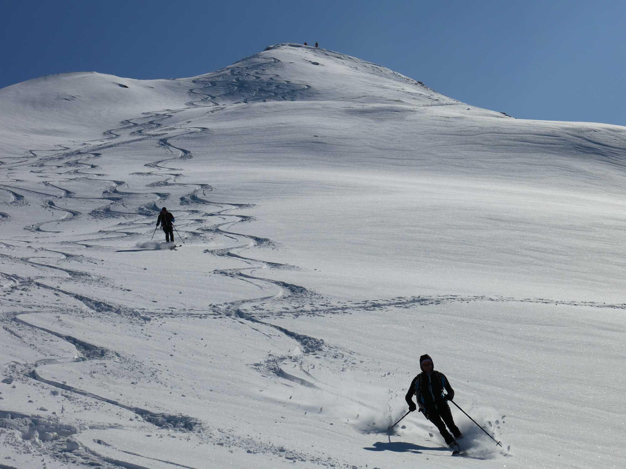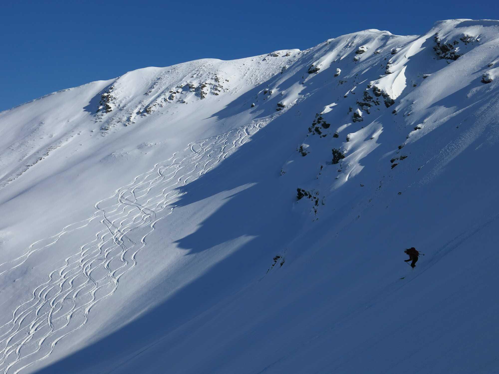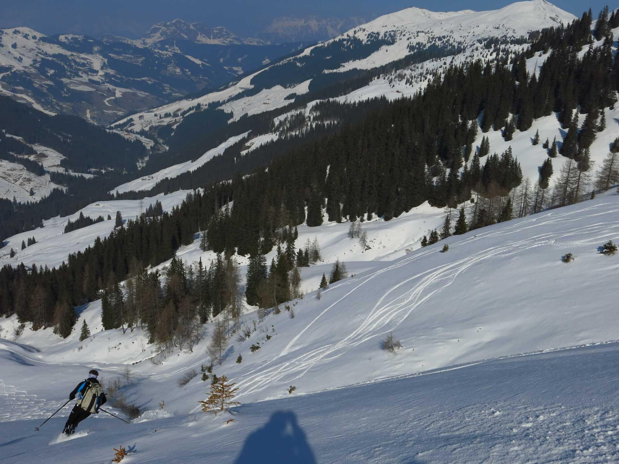 Nachdem die Pulververhältnisse im Schwarzachengraben gestern so gut waren, mussten wir heute noch ein paar Hänge mehr verzieren.