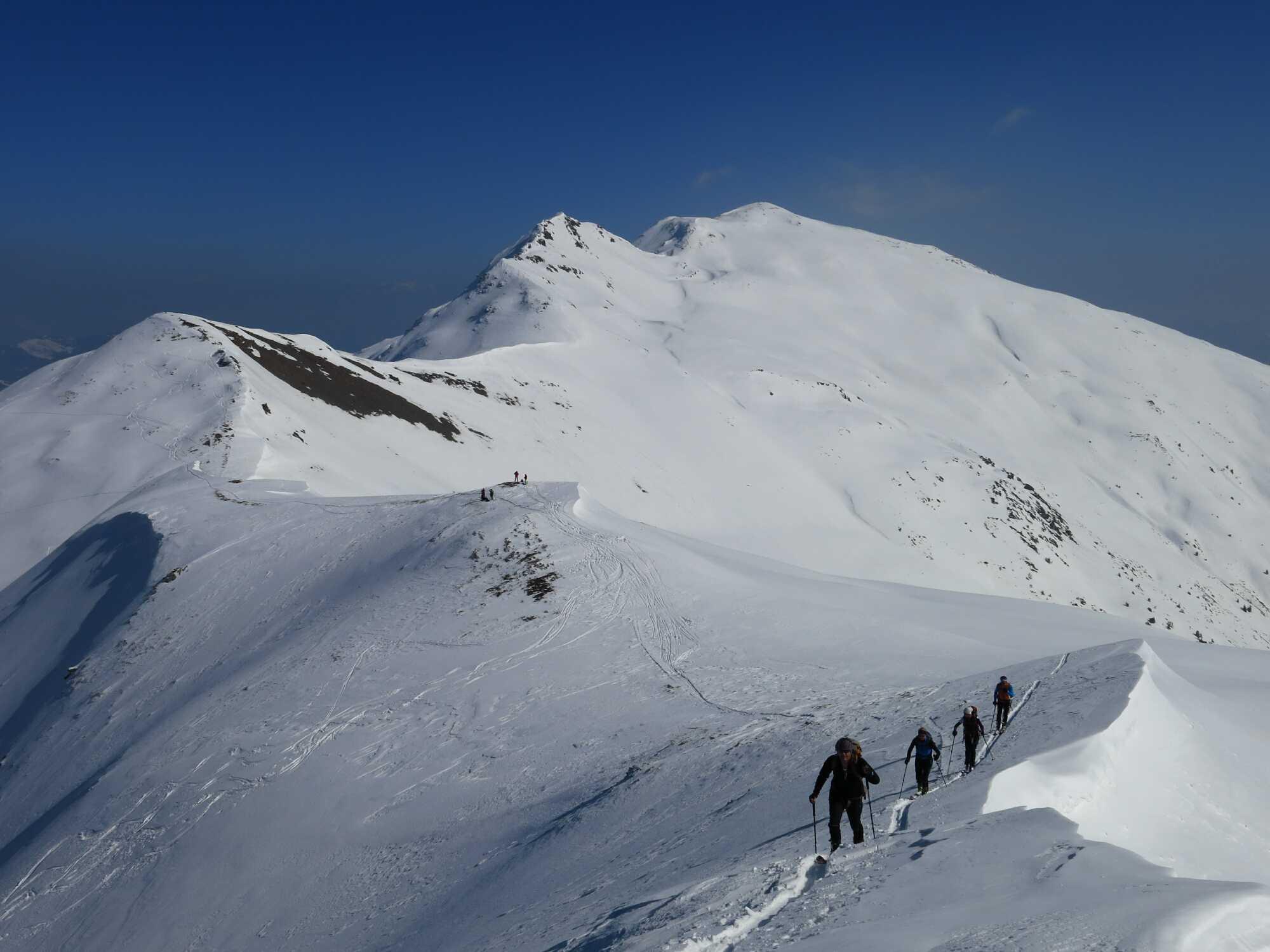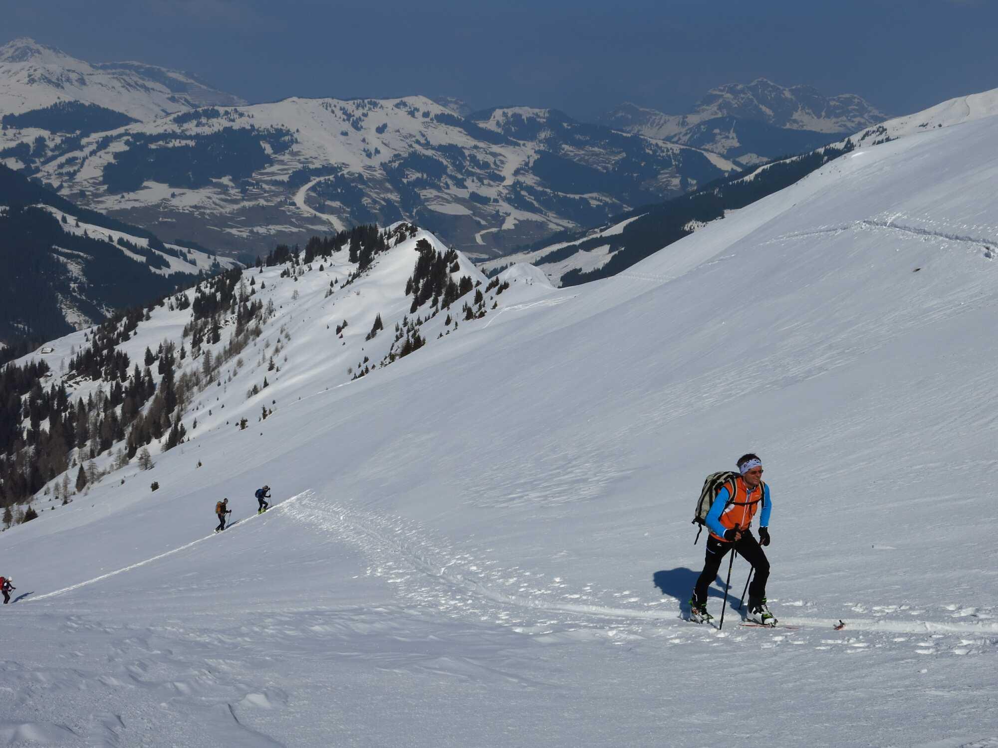 Aufstieg aus dem Schwarzachengraben (1260) wieder über die Huber Hochalm (1734) hinauf über den aussichtsreichen N-Grat zum Medalkogel (2123). Abfahrt NW-seitig ins Kar und Wiederanstieg über die Medalscharte (2058) zum Bärensteigkogel (2225). Abfahrt direkt über die N-seitigen Hänge zurück in den Schwarzachengraben.