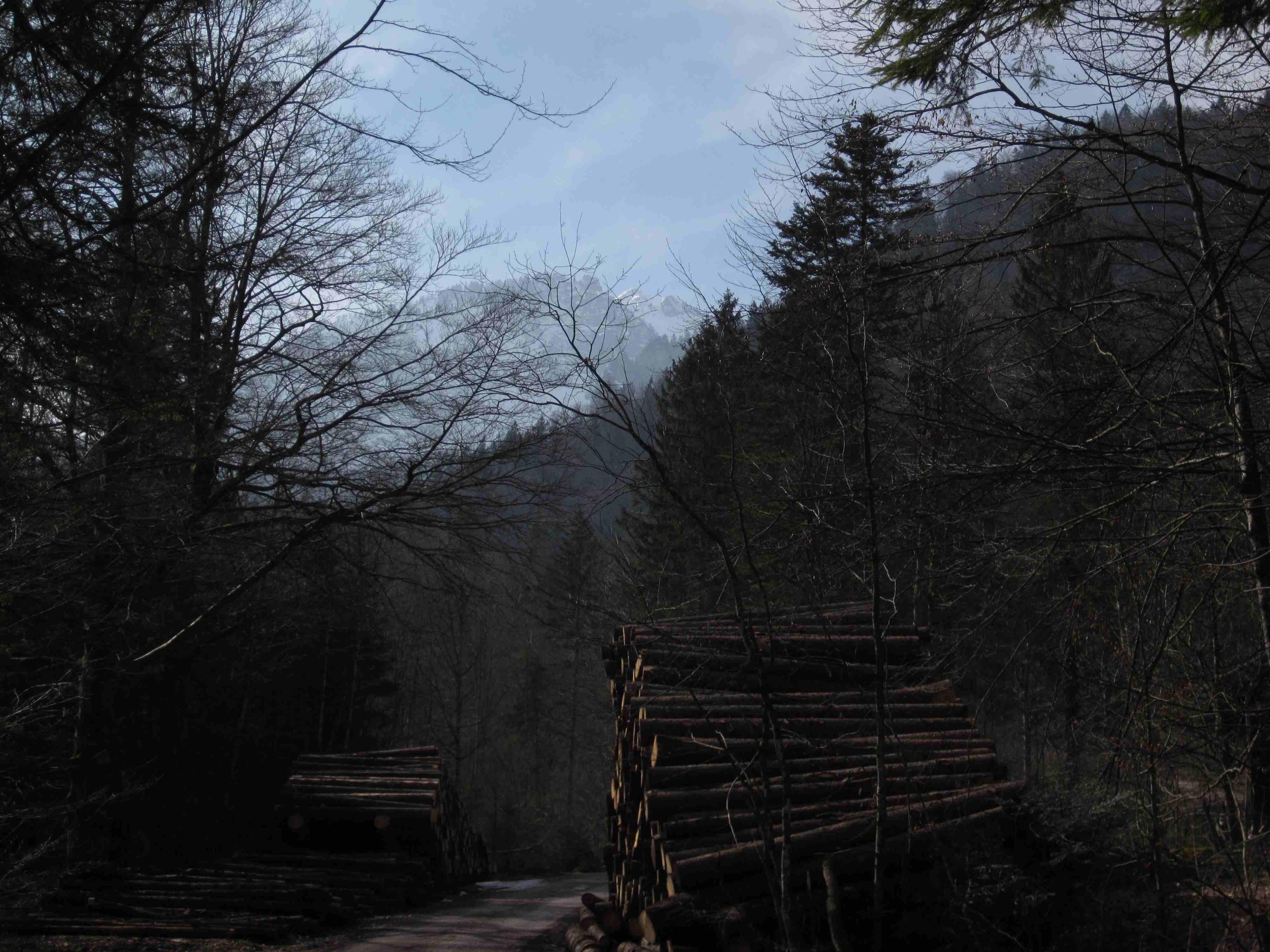 Die Skier können kurz vor Eschelmoos angeschnallt werden. Der Weg ab Kohlstadt ist zwar offiziell wegen einem Bergsturz gesperrt. Ich hab ein paar Steine rumliegen sehen, aber ganz ohne Grund wird der Hinweis auch nicht hängen. Also Vorsicht!