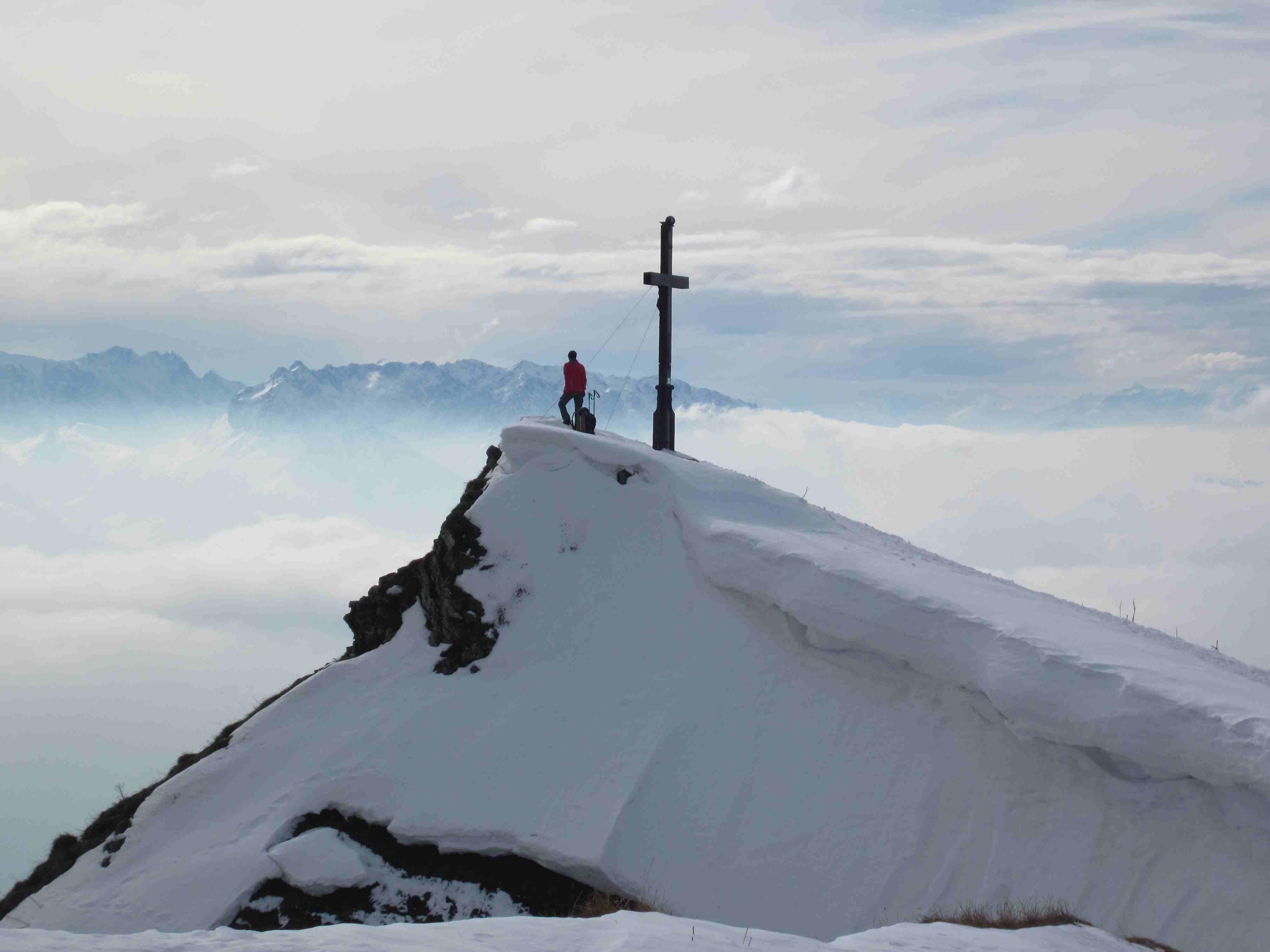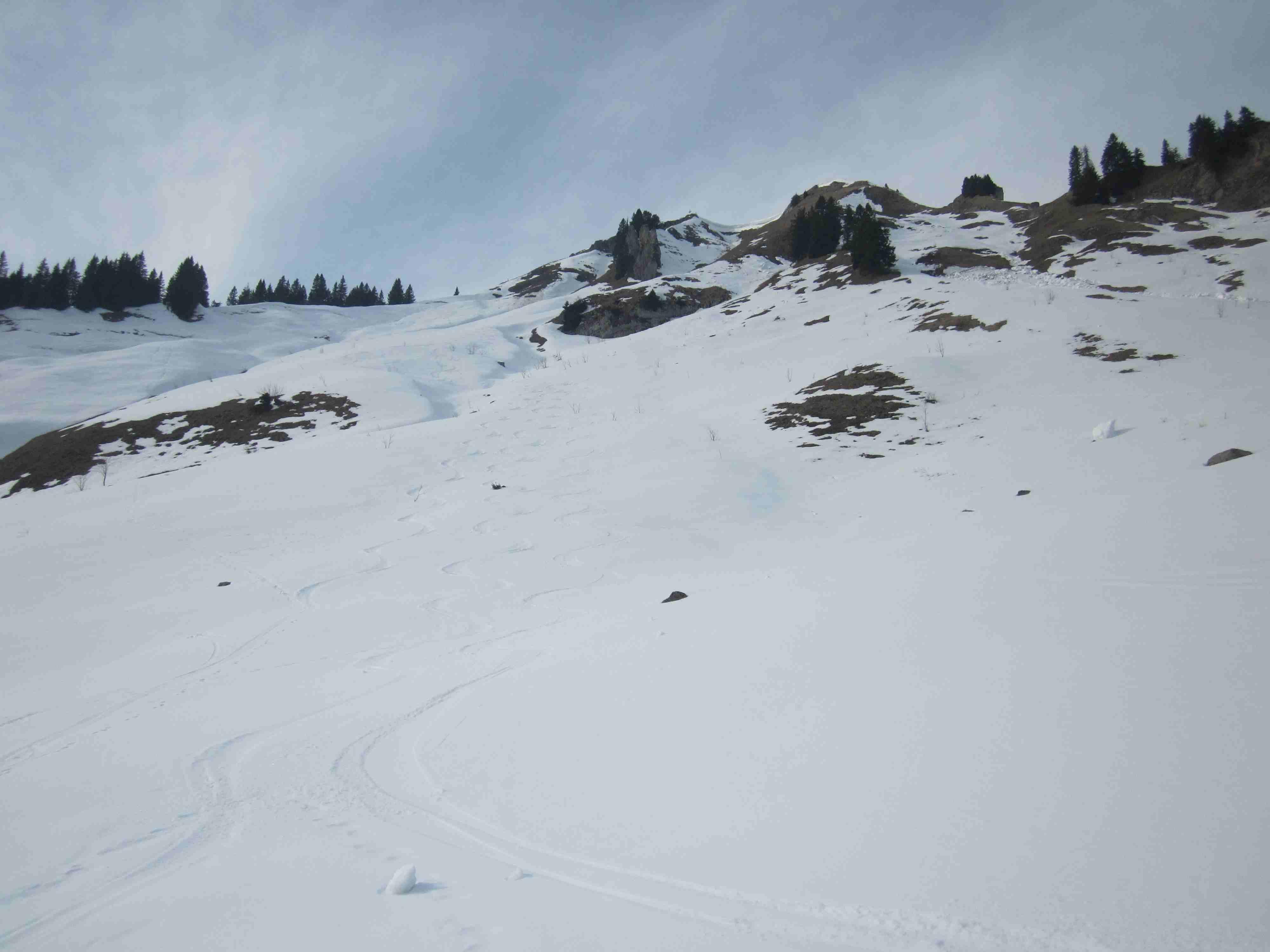 Am Gipfelhang einige Schneemäuler, die heute aber hielten.