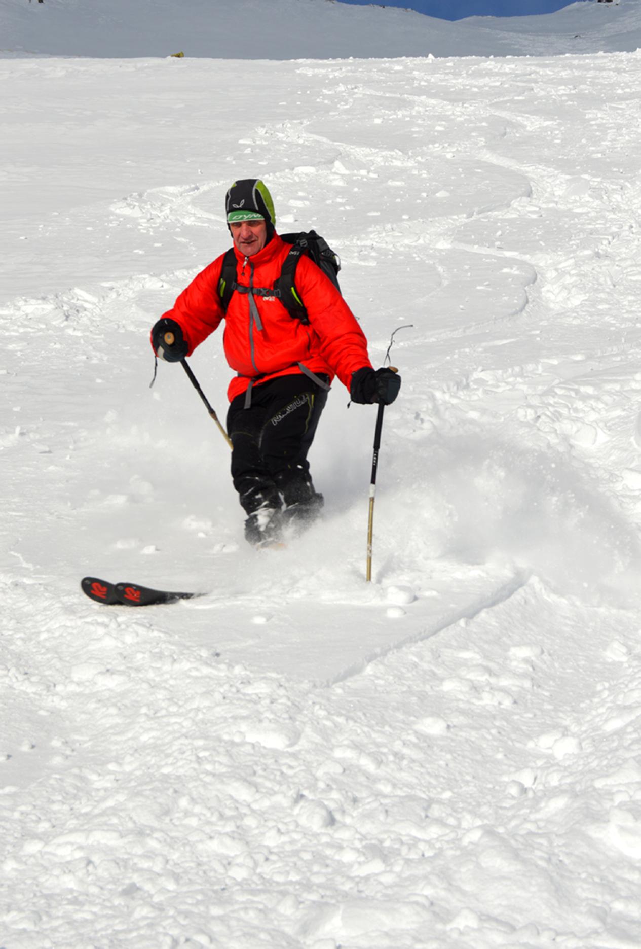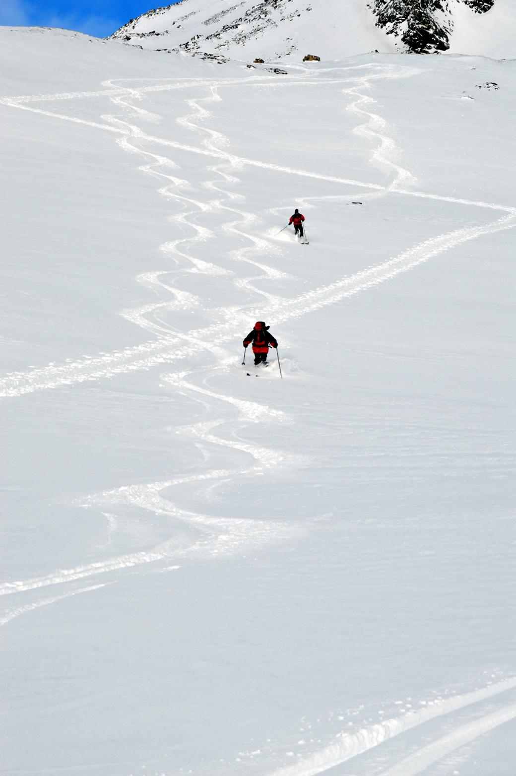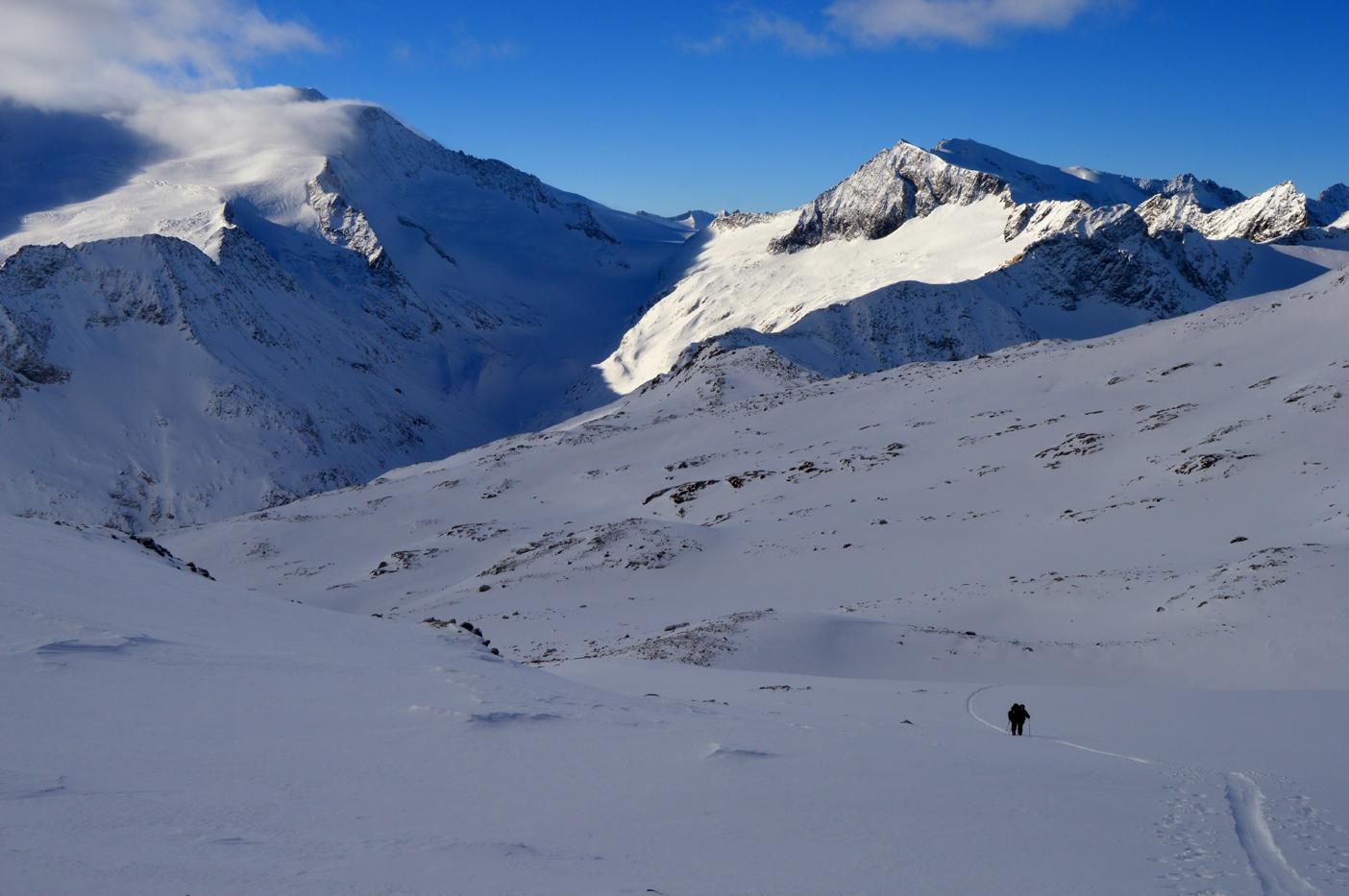 Die Abfahrt von der Roten Saile war trotz relativ wenig Schnee bei etwas Gespür durch die Rinnen und Mulden sehr gut zu fahren. Ganz ohne Steinkontakt kam aber keiner ins Tal. Der Ausflug ans Südportal hat sich auf jeden Fall gelohnt und für mich hat die Talwanderung nach Innergschlöß immer wieder einen besonderen Reiz!