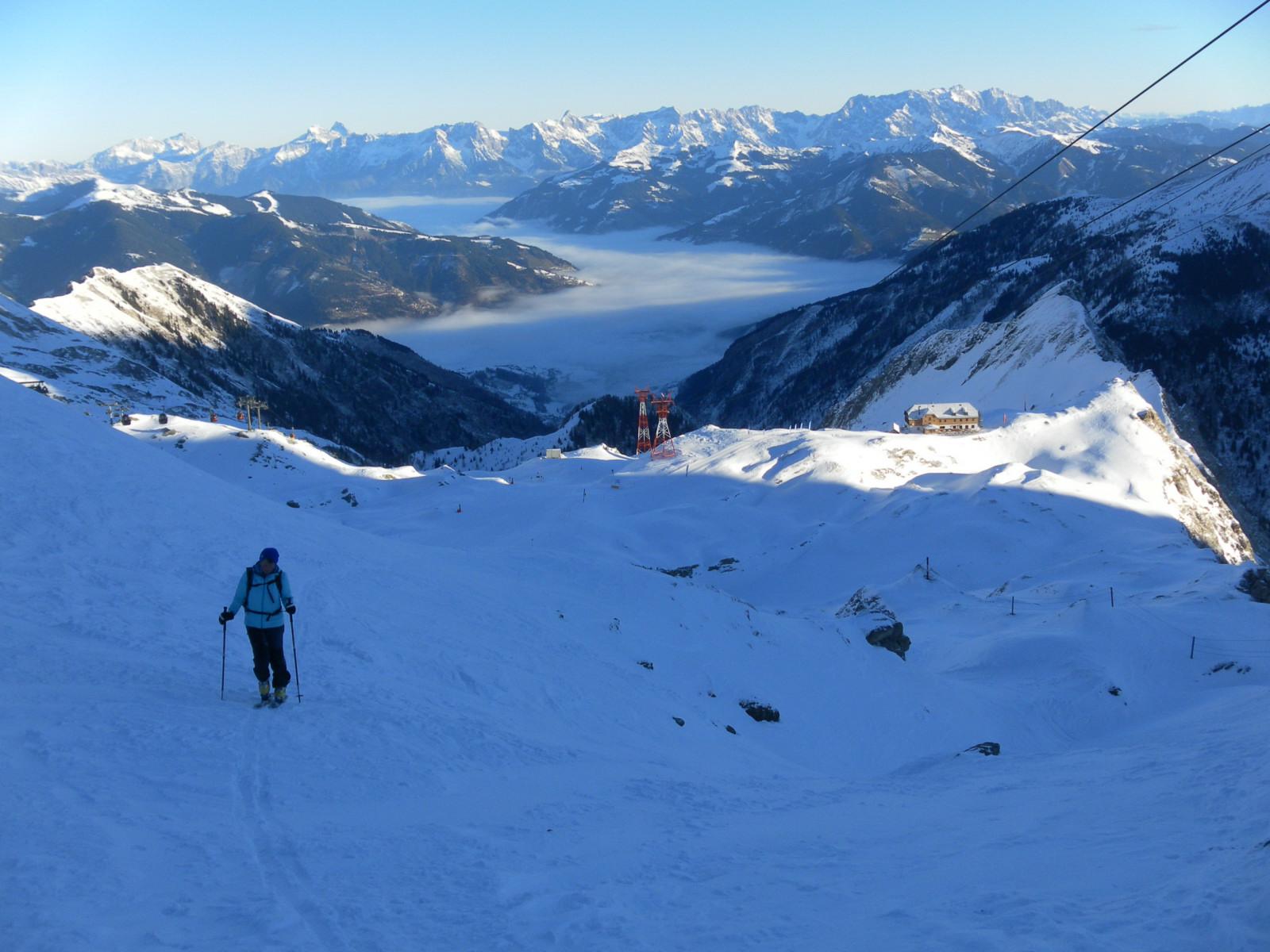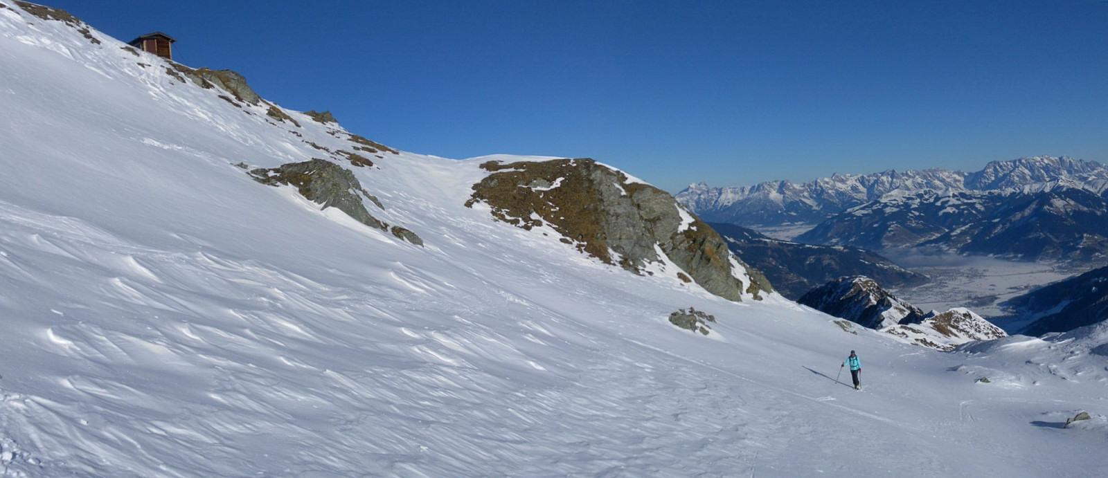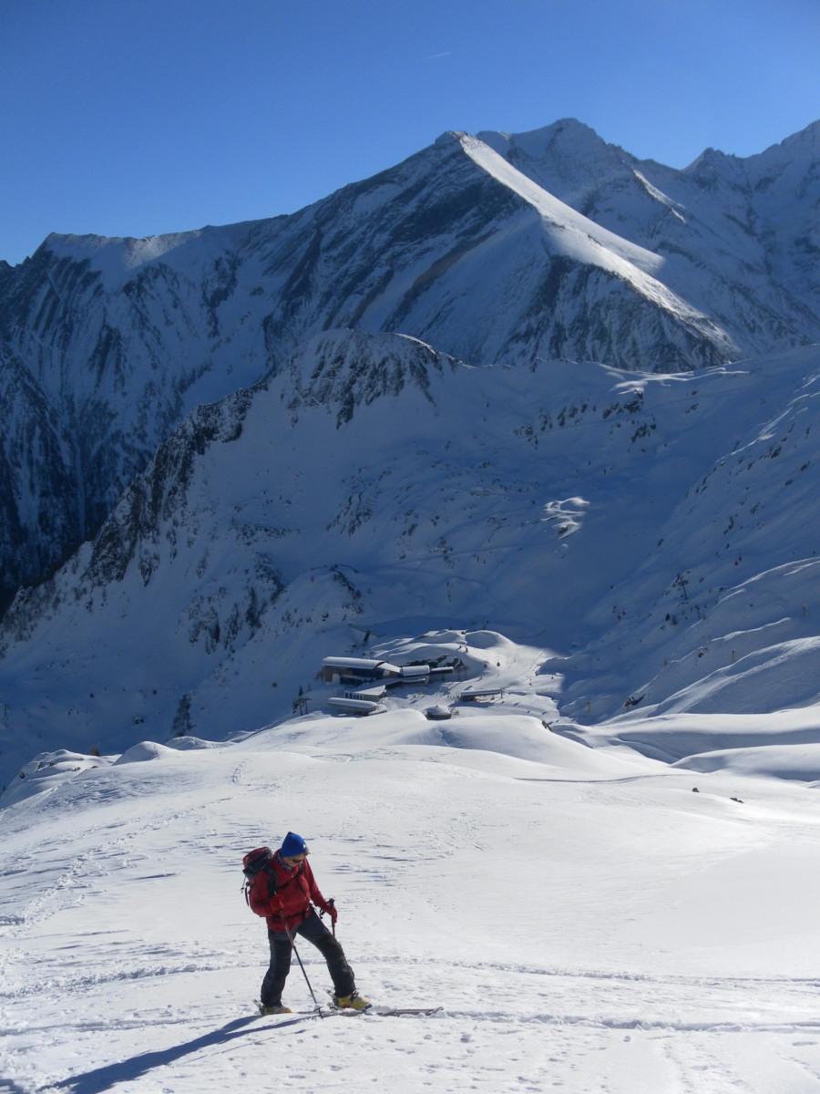 Am Samstag steigen wir von Langwied (1.Sektion der Kitzsteinhornbahn) abseits des Pistenbetriebes bei genügend Schnee westwärts auf den Rettinger zwischen Lakarschneid und Triestkogel. Kurze Pulverpassagen, häufig mit Winddeckel, auch harte Gangeln, teils Bruchharsch. Der Gipfelbereich ist abgeblasen.