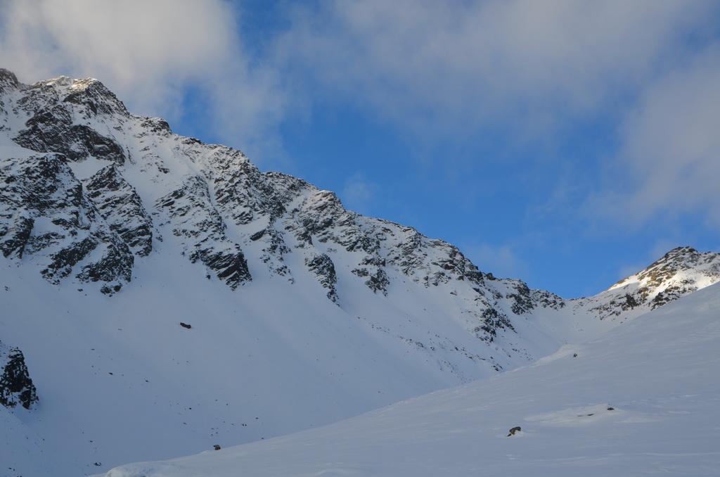 Heute waren wir im Debanttal unterwegs.Auch hier ist die Schneedecke nur mehr dürftig....Bruchharsch und windgepresste Abschnitte wechseln sich ab....in den schattigen Teilen schon leichter Rauhreif auf der Oberfläche, welcher für die kommenden Schneefälle die Situation nicht gerade begünstigt. Ab der Scharte starker Wind und so haben wir uns wieder schnell auf den Weg ins Tal gemacht. Um die Abfahrt noch bei halbwegs guter Sicht in Angriff nehmen zu können waren wir heute leider zu langsam.