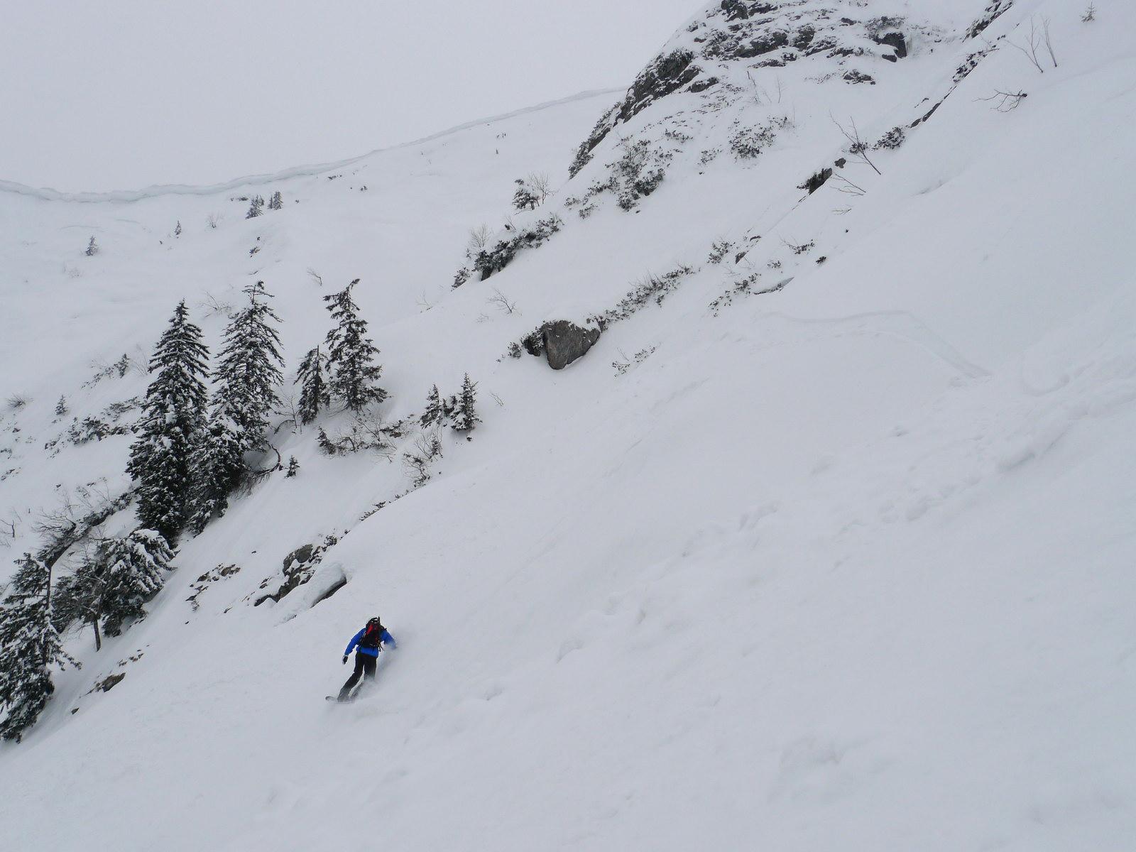 Ab etwas oberhalb der Wimmerhütte dann feiner Pulver, abgeschnallt haben wir erst ganz unten beim Auto. Abgesehen von Sonne, kann mans eigentlich nicht viel besser erwischen. (sofern man's sicher angehen will)