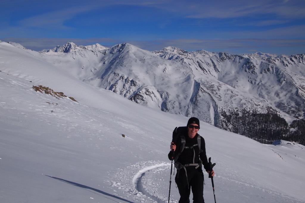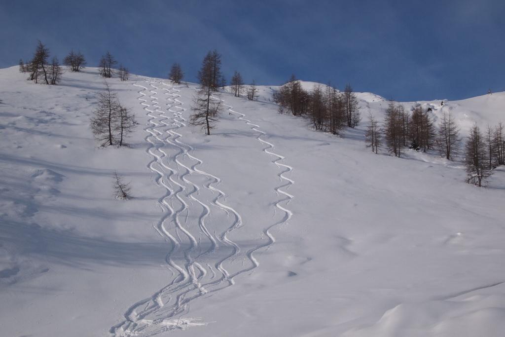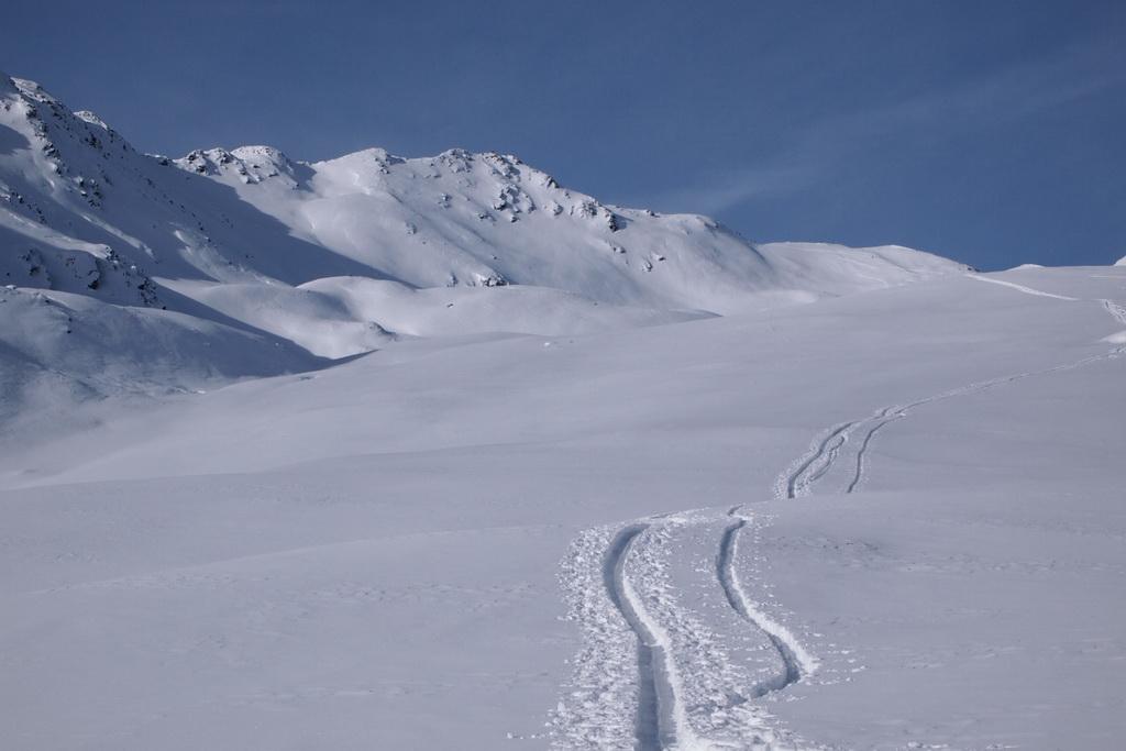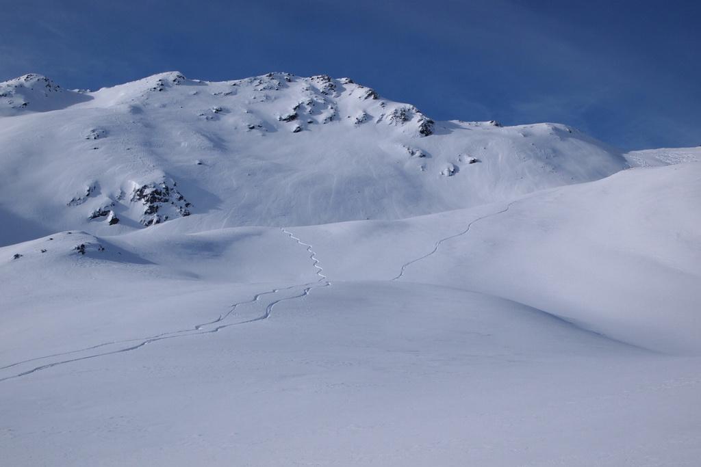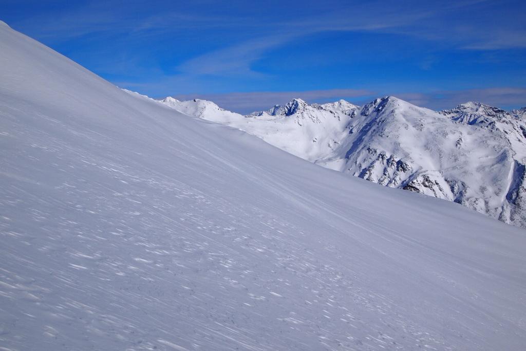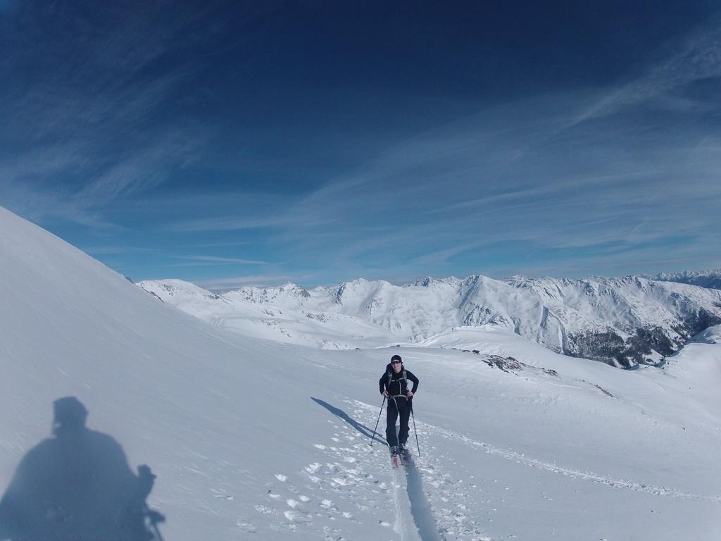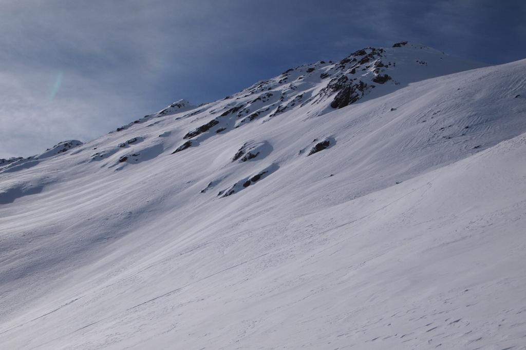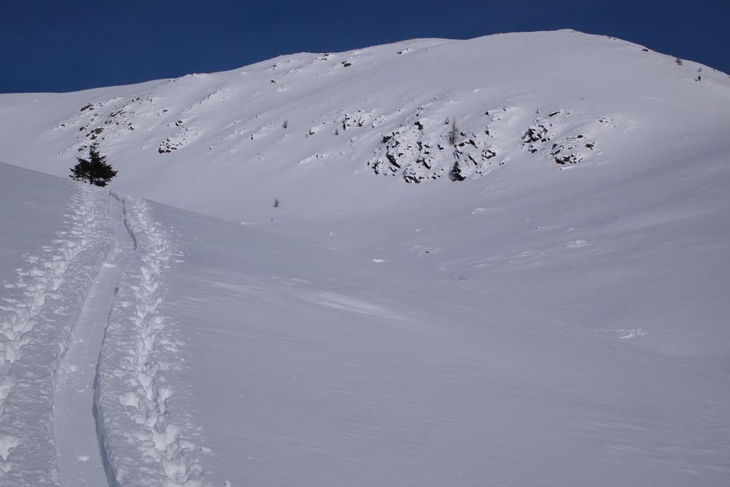 Vom Auto weg perfekter spannungsfreier Pulverschnee. Lediglich am Gipfelhang konnte man den Windeinflus deutlich sehen, bzw. beim Abfahren spüren. Der Grat bis zum Gipfel war dann komplett hart und abgeweht. Bei vernünftiger Spuranlage und Wahl der Abfahrtslinie würde ich die Reisachspitze als eine relativ sichere und landschaftlich schöne Tour einstufen, die man den ganzen Winter über gehen kann.