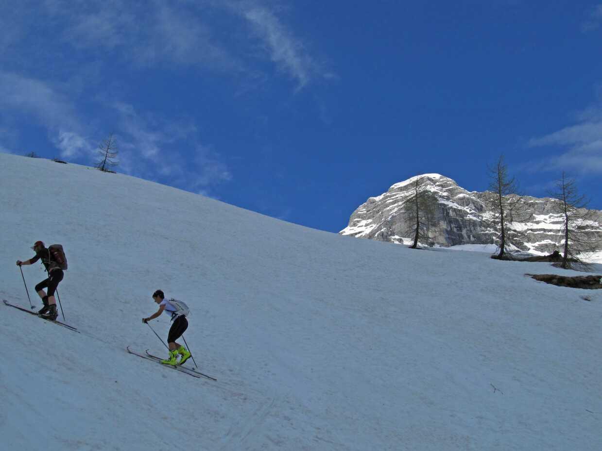 Ski mussten ca. 40 Min getragen werden, bis man auf Höhe ca. 1050 mit Skiern weitergehen konnte.
