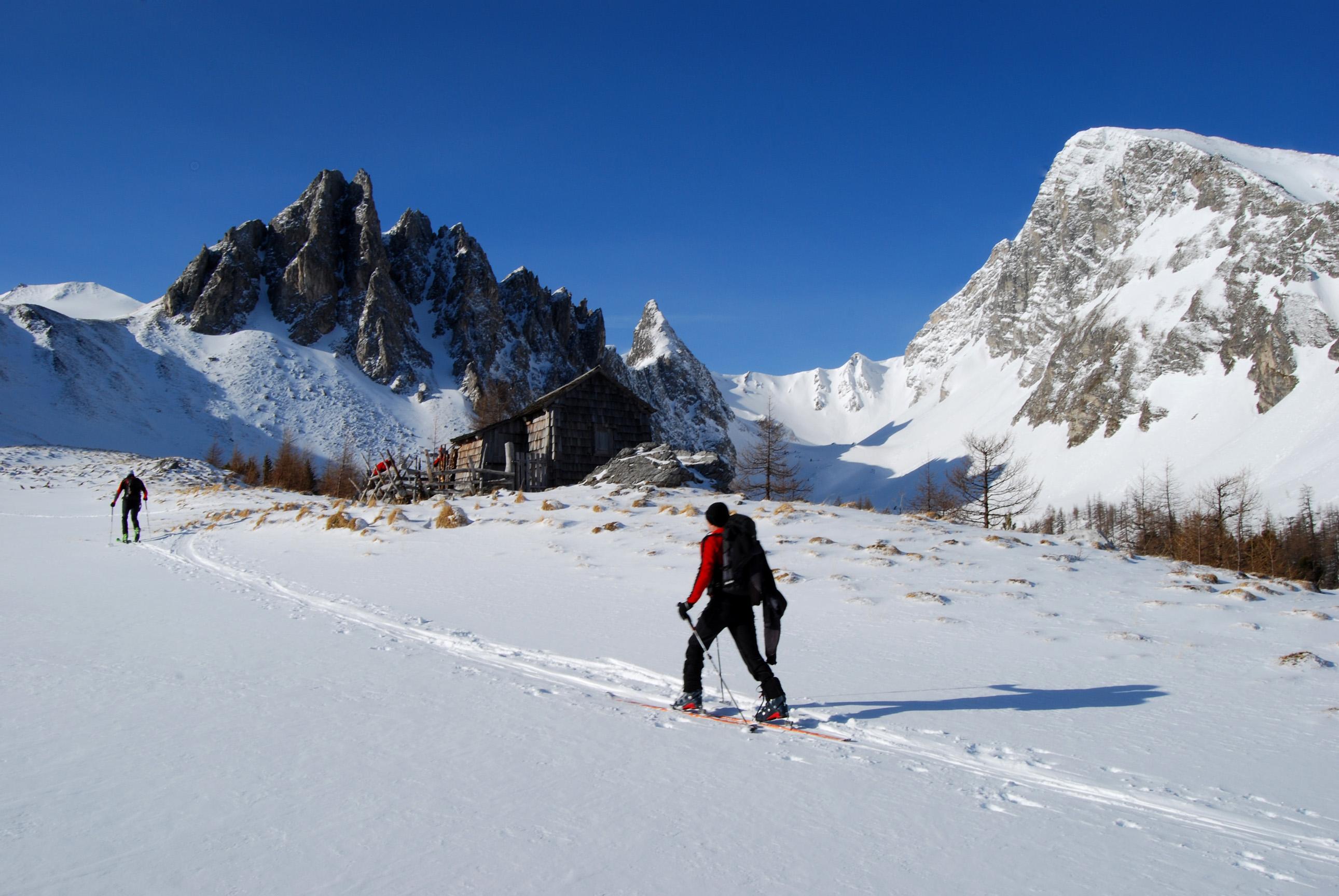 Aufstieg durch die Hölle zur Felskarspitze und weiter aufs Weisseck. Der Aufstieg ist momentan völlig problemlos ohne Harscheisen möglich. Nur die letzten 20 - 30 Meter sind nur mit geschulterten Schi möglich. Von der Felskarspitze aufs Weisseck wehte uns der Wind ganz schön um die Ohren. Allgemein hats im Lungau viel weniger Schnee als bei uns in den Nordalpen.