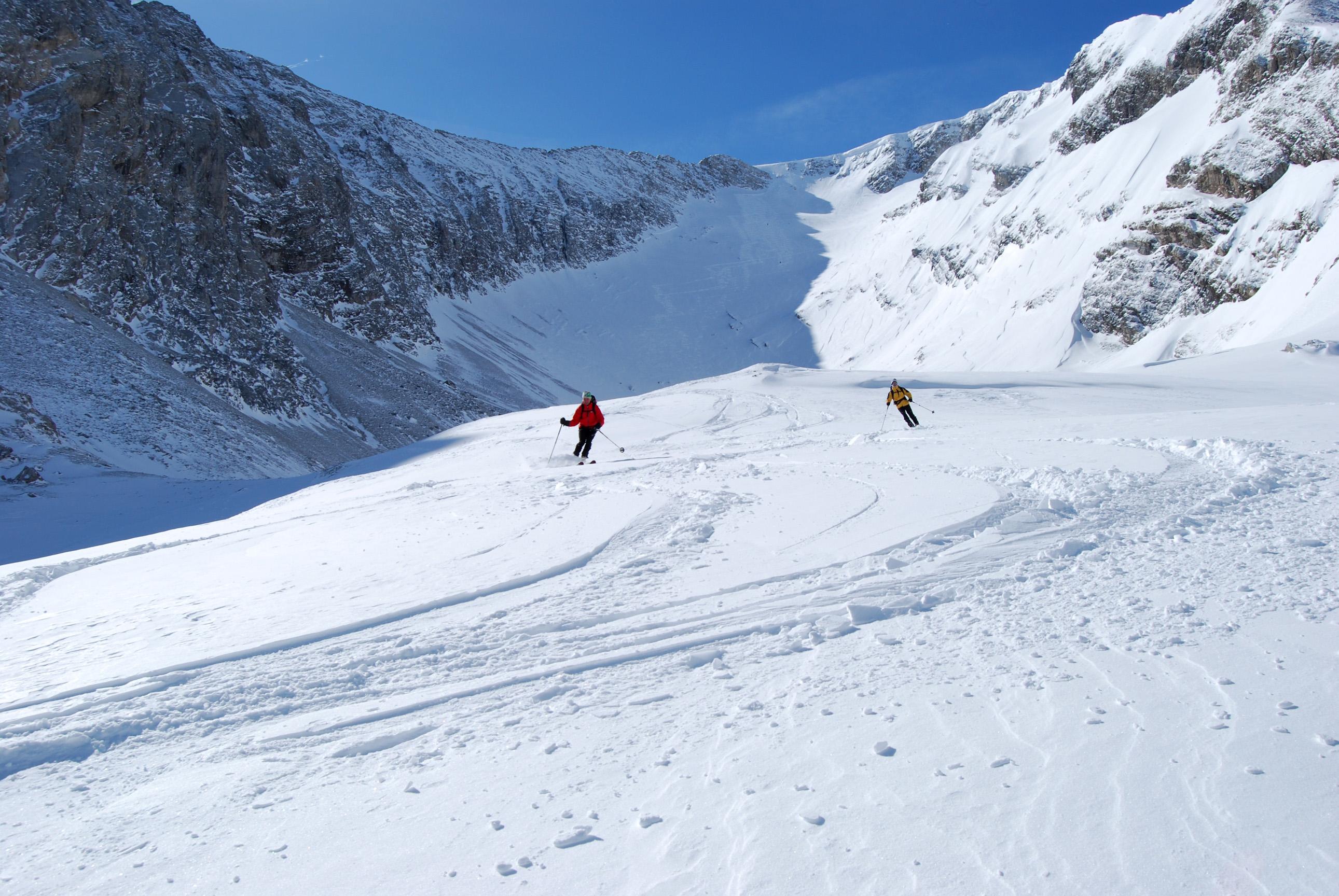 Die Einfahrt ins Ödenkar bereitet momentan keine Probleme. Der obere Bereich hatte schönen Pulver. Im Mittelteil waren die Verhältnisse kurzzeitig sehr wechselhaft - der Wind hat die Schneedecke in diesem Bereich massiv bearbeitet. Weiter unten dann traumhafter Pulver, der immer noch ohne Bindung auf einer harten Harschschicht liegt. Am Mosermandl war heute mehr Betrieb - Schaut wirklich guad aus. Den Spuren nach hats da an feinen Firn g´habt.