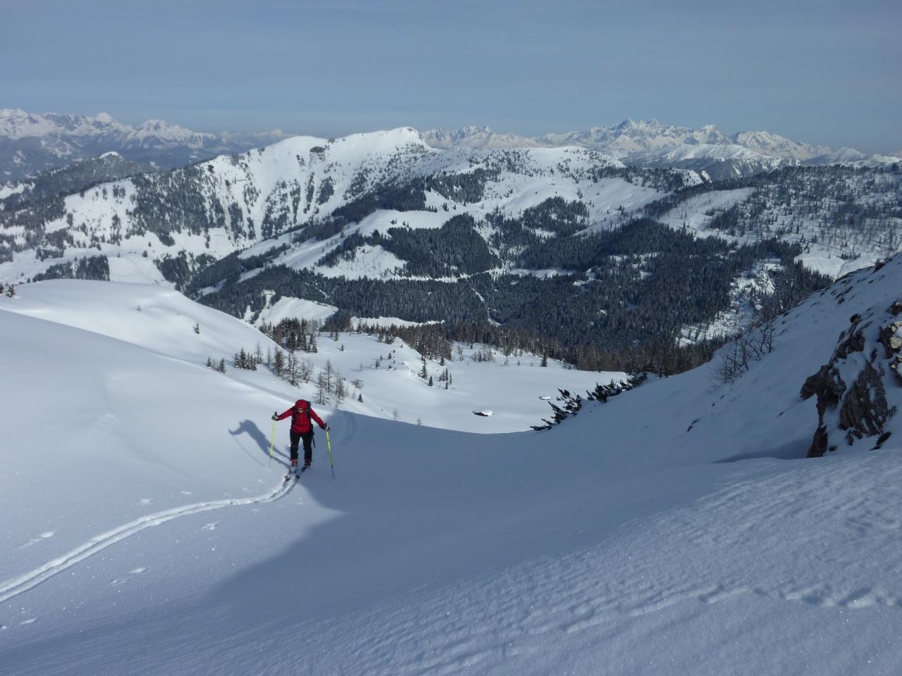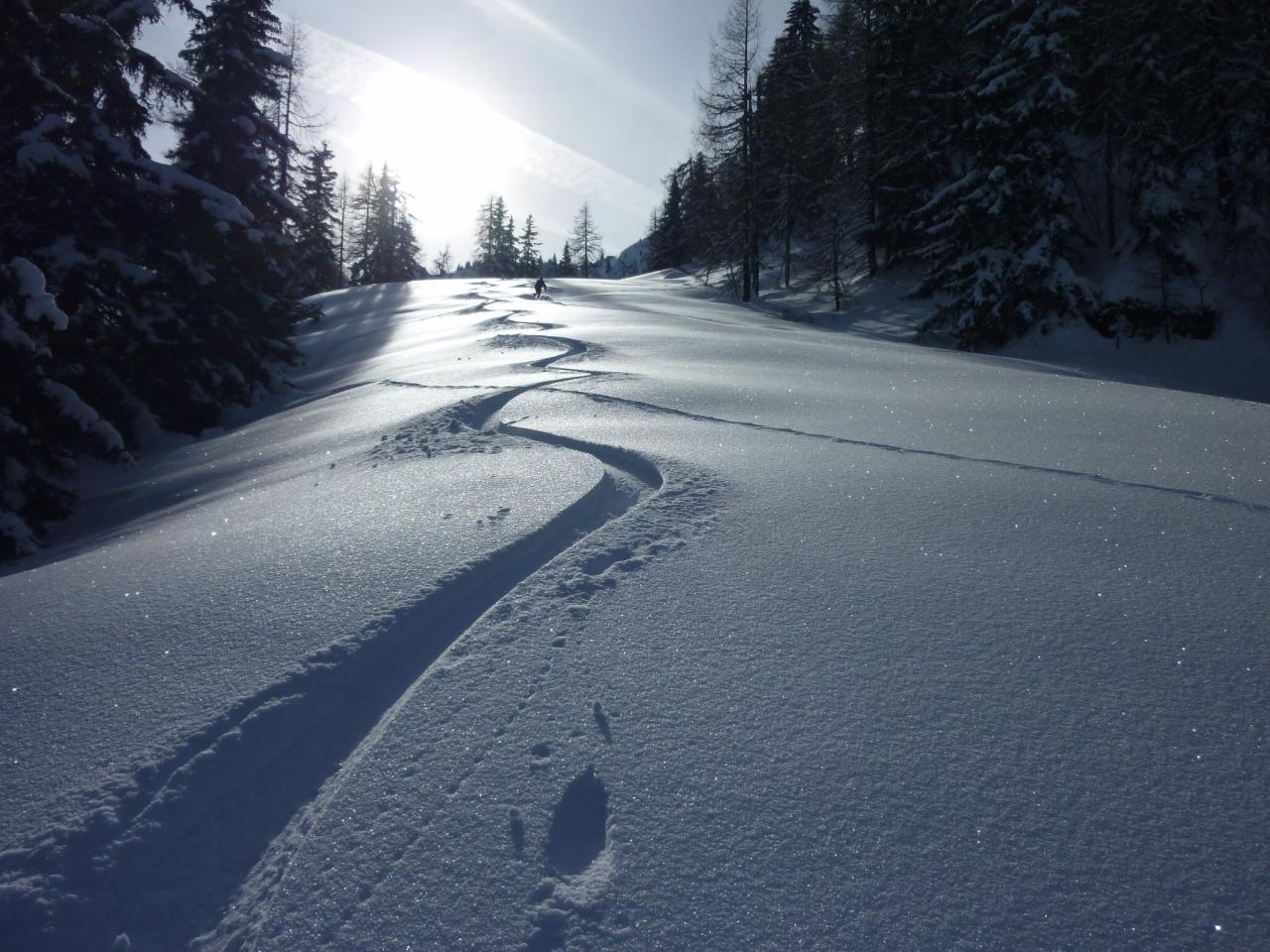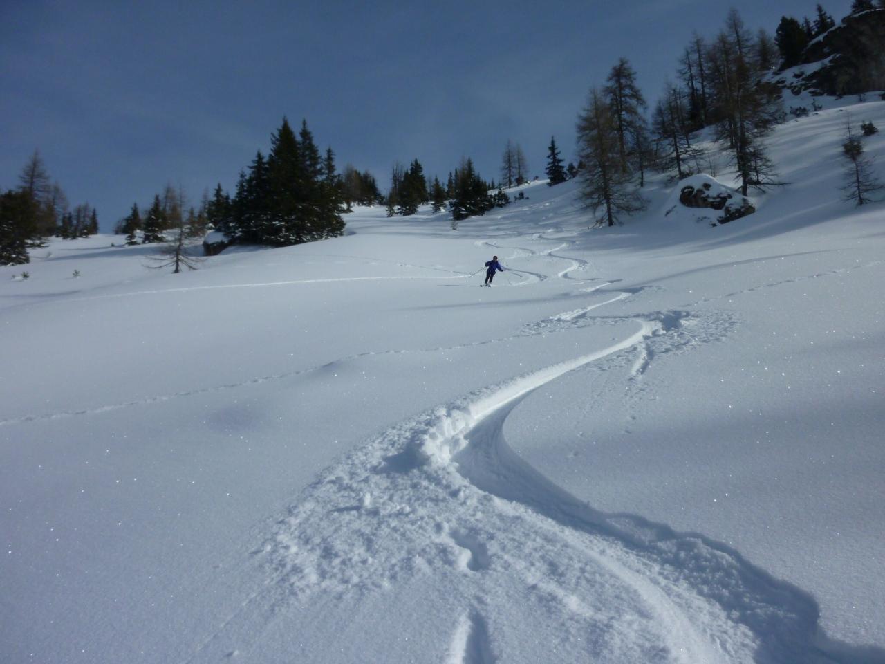 Auch im Großarltal liegt genug und noch bester, gut gesetzter Pulverschnee. Wie überall aber auch hier große Gleitschneelawinen, die zB an der Höllwand in 2200 m Höhe abgegangen sind.