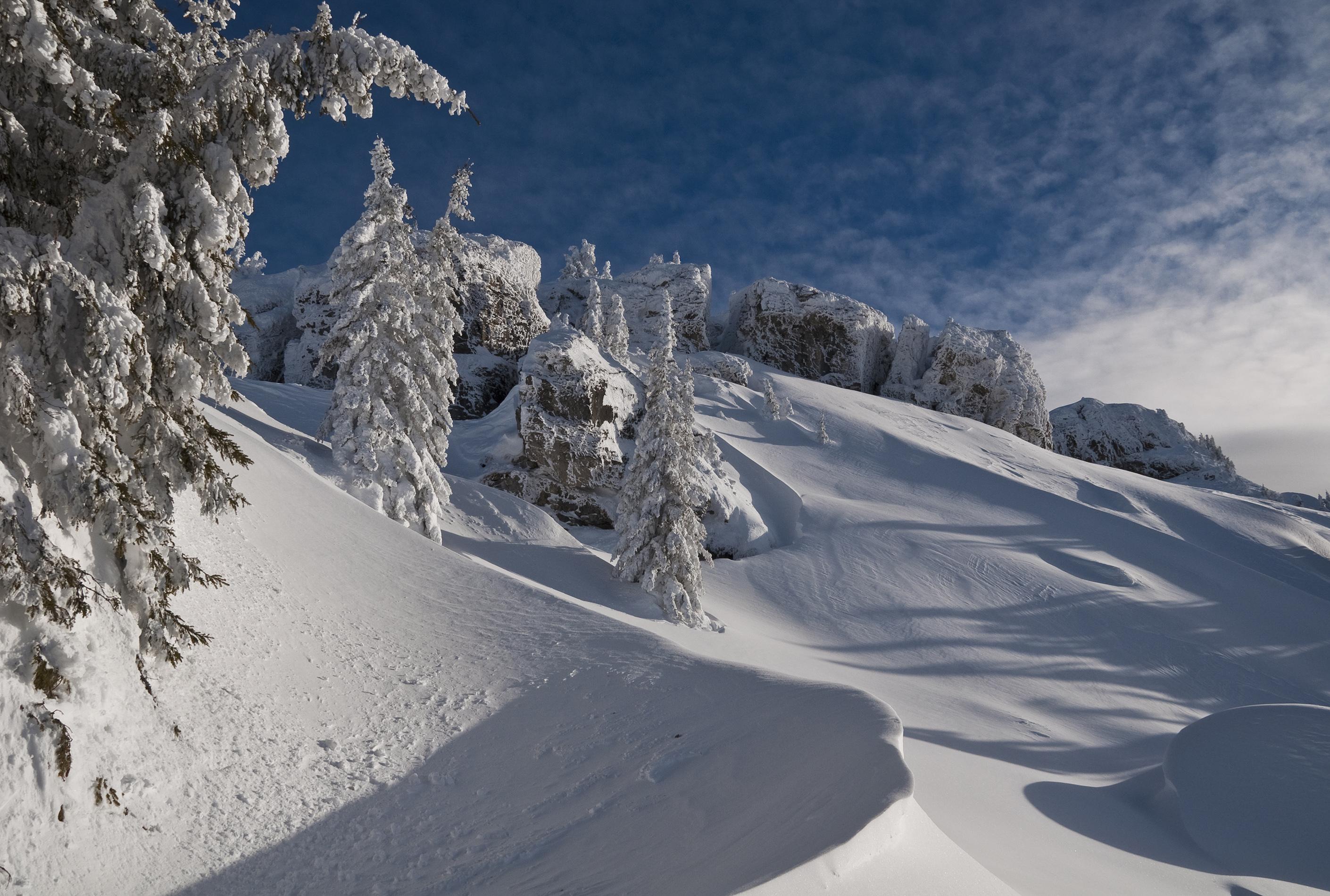 Von Gerling bis zur Dickalm mit Harschdeckel, dann fein fahrbarer Schnee, der aber schon gesetzt ist. Je höher man kommt, umso mehr ist der Schnee auch windbehandelt, zum Schluss gepresst. Am Kamm weht immer noch der Wind.