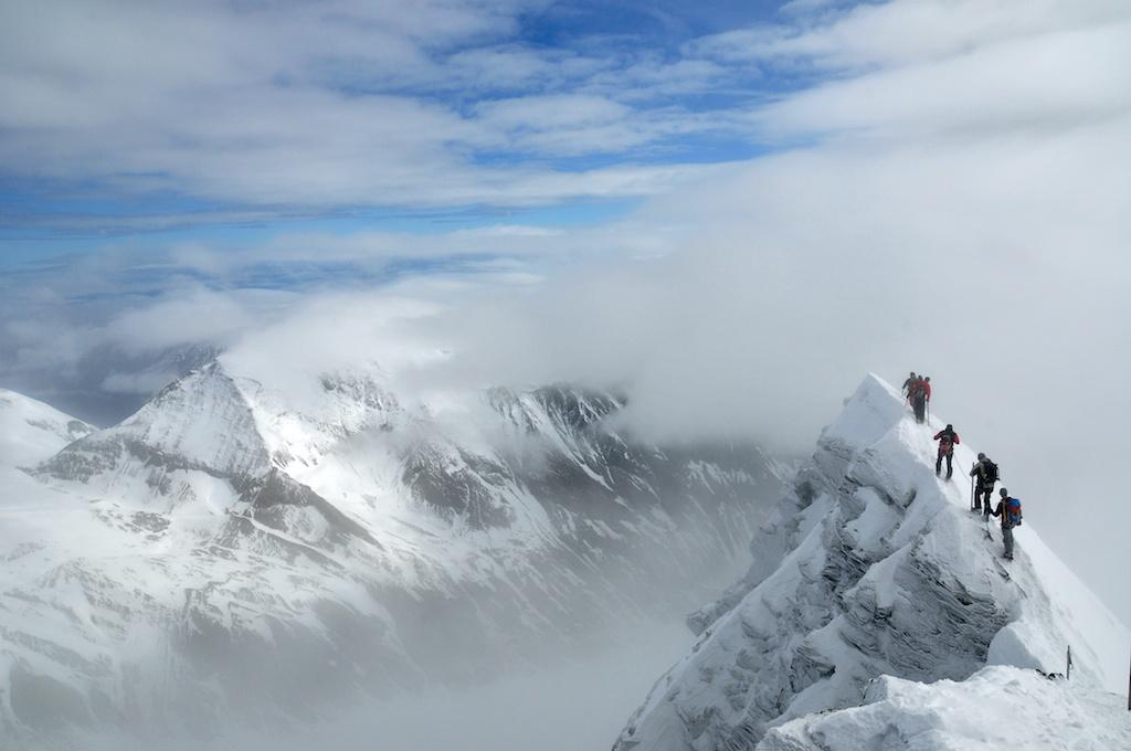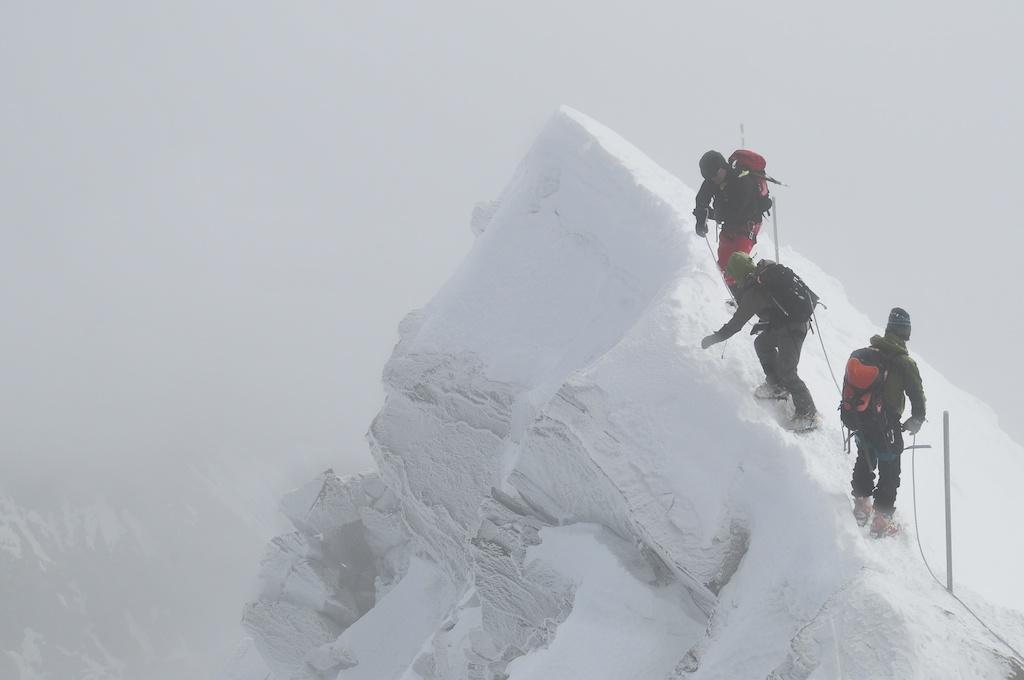 Am 6.4. war das Wetter beim Aufstieg alles andere als schön. Leichter Schneefall und Wind waren unsere Begleiter.