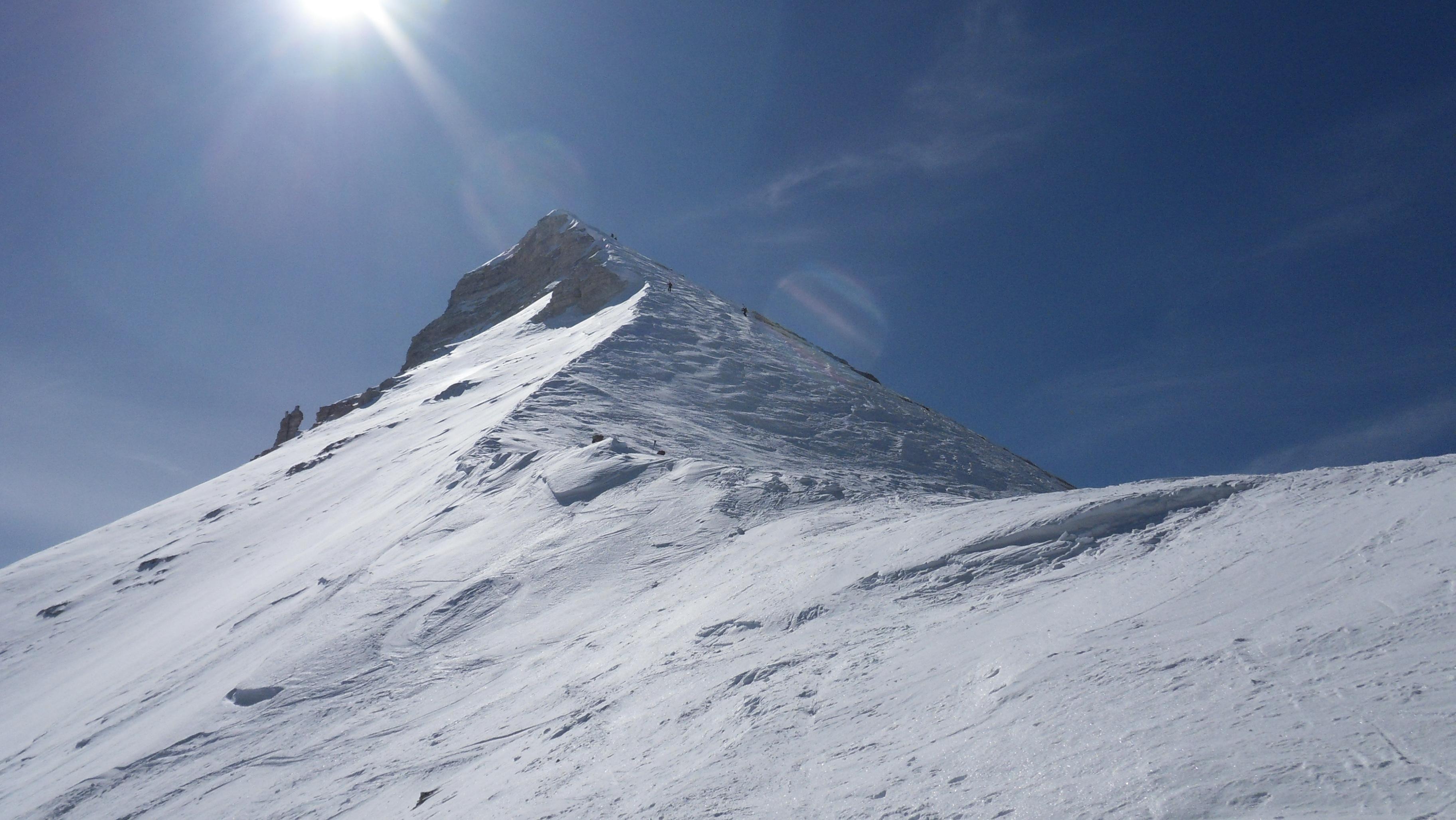 Ebenfalls sehr gute Verhältnisse im Anstieg und bei der Abfahrt über die Nordflanke, teilweise gesetzter Pulver auf griffig harter Unterlage.