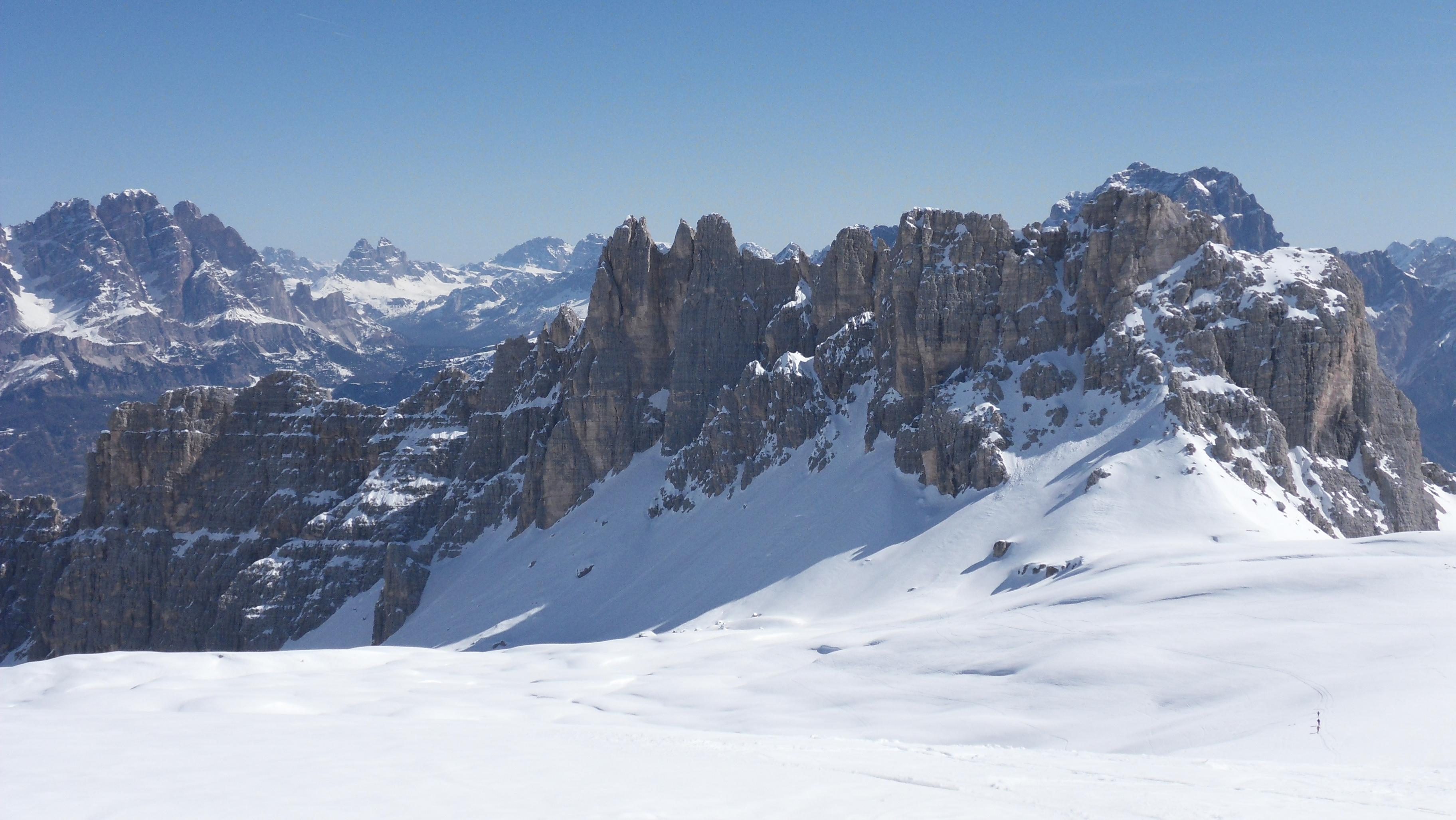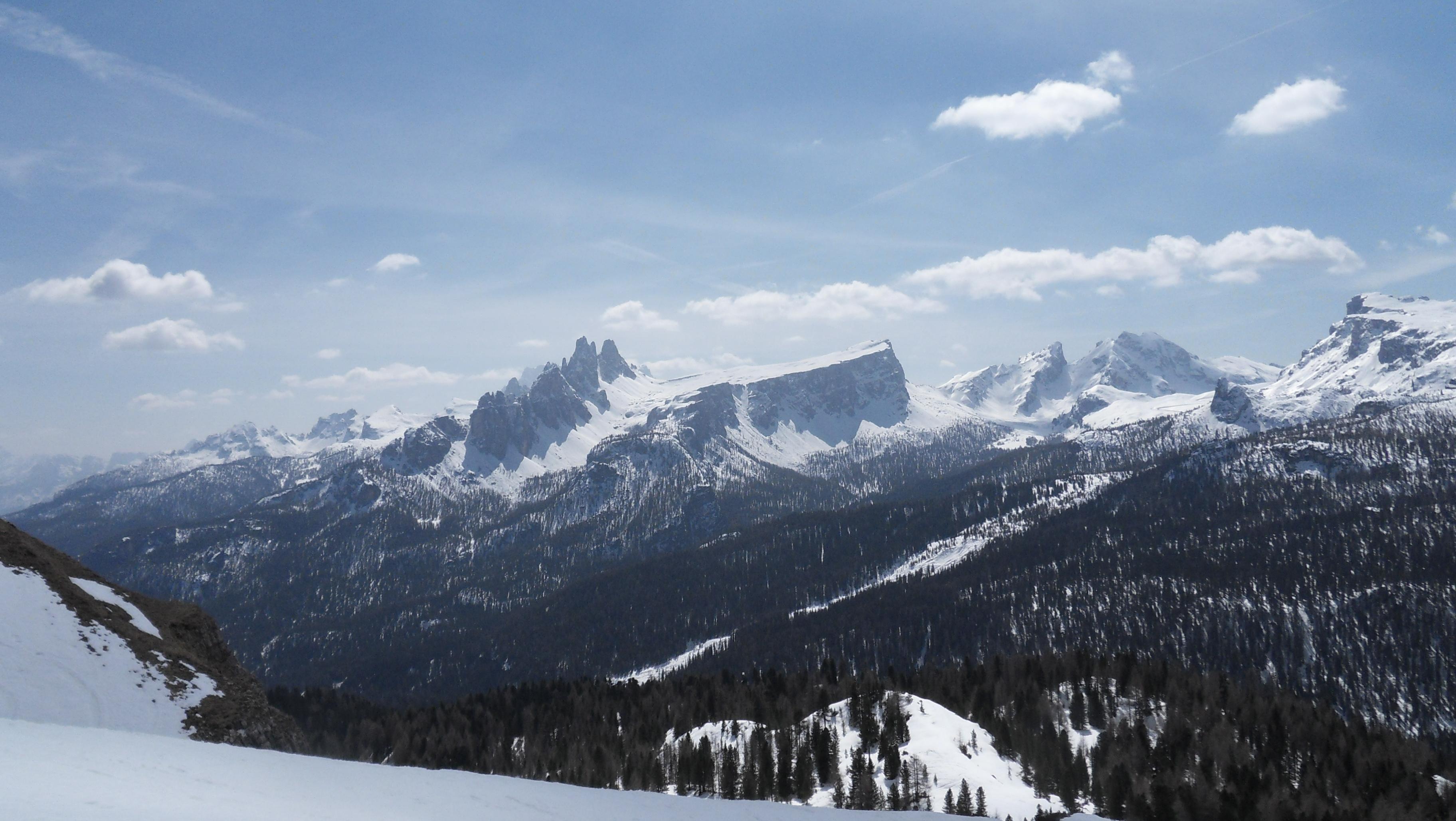 Auf der Hochfläche "Lastoi De Formin" teilweise schwerer Schnee bis leicht sulzig, aber kein Einsinken, gut zu fahren.