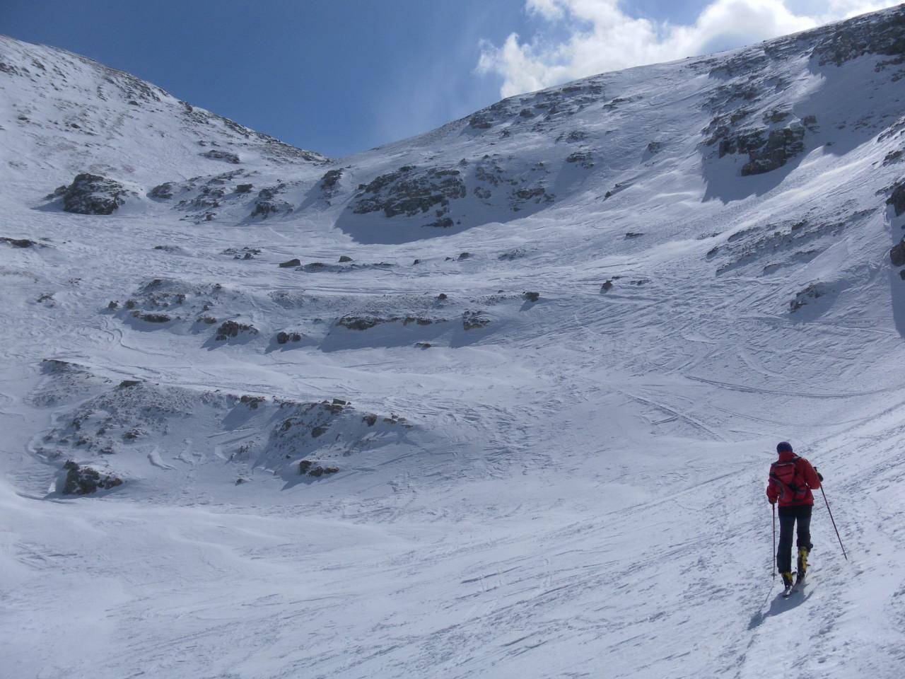 Von der Felseralm bis zum Wildsee liegt viel Pulver, zerfahren und bei der Abfahrt schon recht feucht. Die Rinne zum Sattel zwischen beiden Großwandspitzen firnt im oberen steilen Teil gut auf. Der Südrücken zum Gipfel ist beinahe aper. Der Anstieg zur Glöcknerin ist stark vom Wind geprägt: kräftig böiger Wind treibt den Schnee, viel abgeblasener Fels, unter der Scharte eisige Platten, der Westgrat nordseitig abgeblasen steinig mit Gratkantenüberwechtung nach Süd.