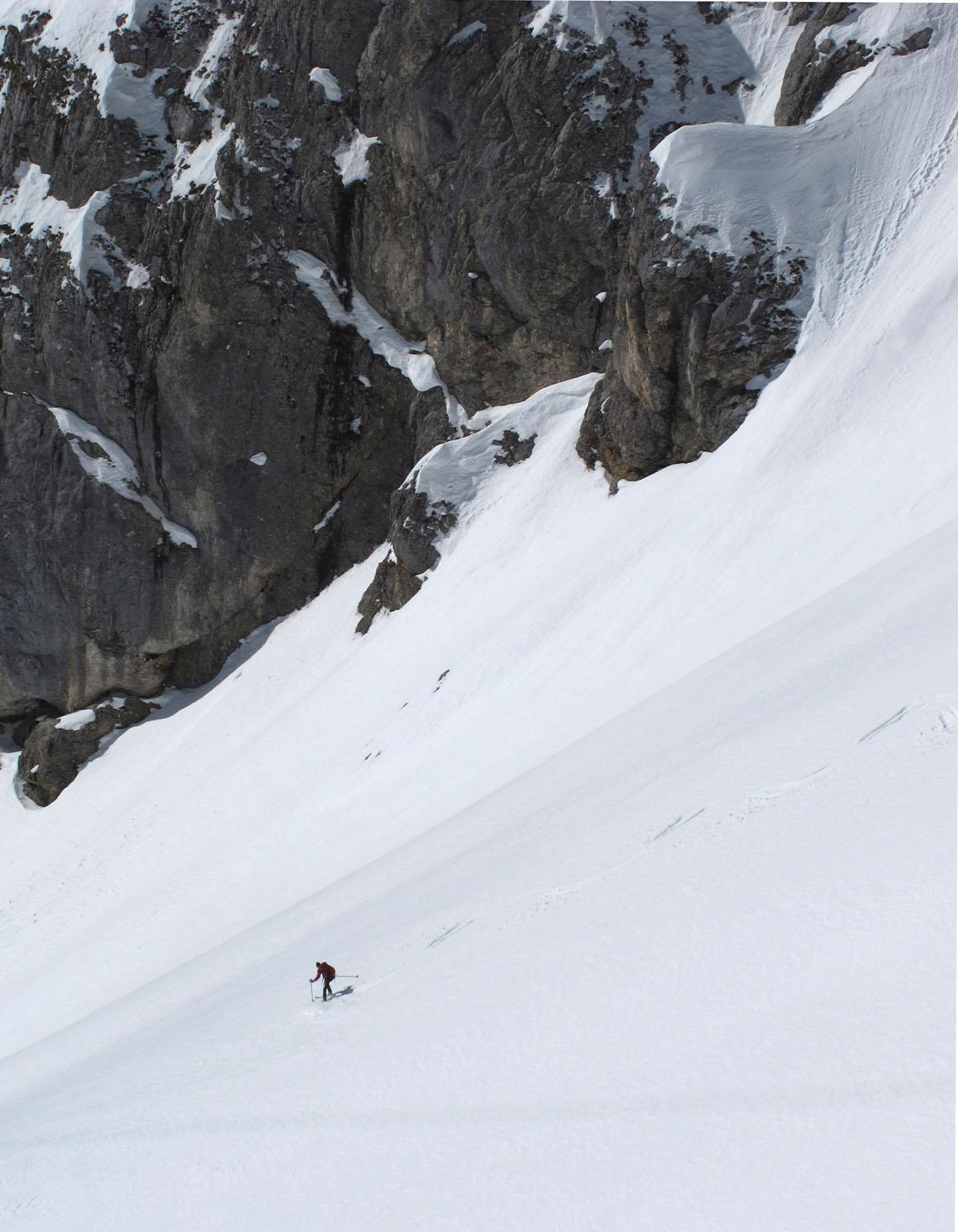 Einfahrt um ca. 11.00h in die Schwadrinne - im oberen Südwest Teil sehr hart, danach sehr guter Firn.