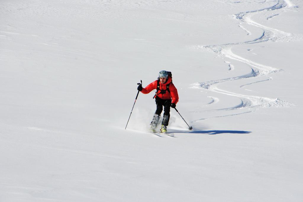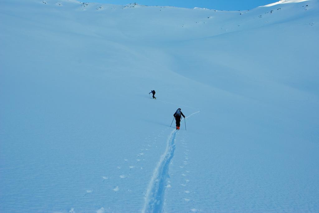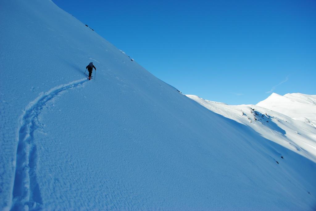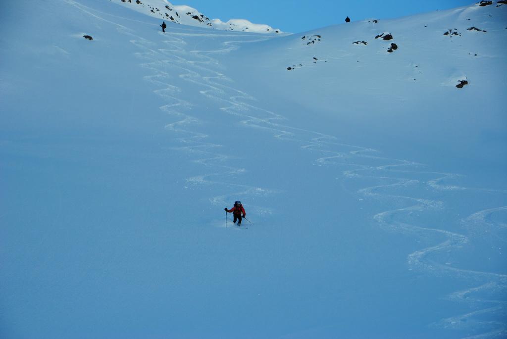 Der Forstweg von Alpe Stalle bis zur Hinteren Stalle wurde immer wieder von kleinen und mittleren Nasschneelawinen der warmen Tage vor einigen Wochen gequert. Danach fanden wir dann eine traumhafte 10-15cm hohe spannungsfreie und unverspurte Pulverschneeuflage vor. Schön wieder mal der erste sein zu dürfen. Lediglich der Gipfelaufbau war die letzten 50hm etwas abgeblasen. Alles in Allem eine traum Tour in einsamer Gegend.