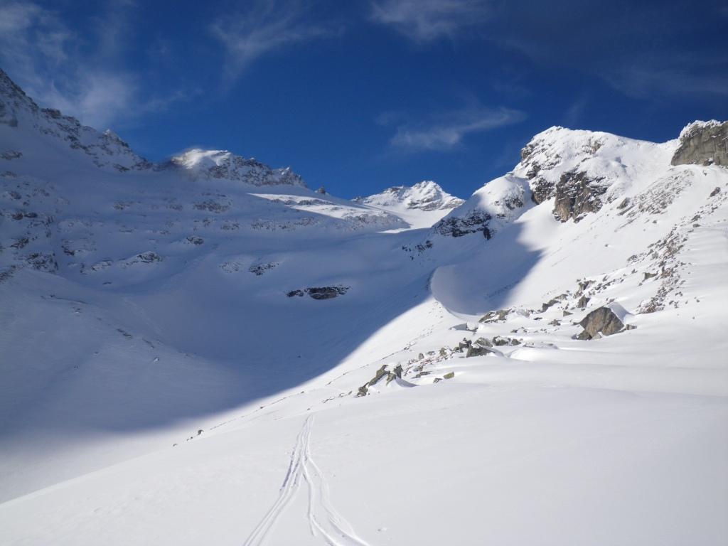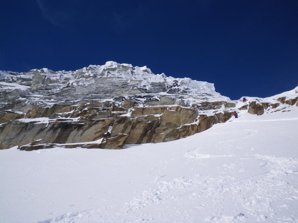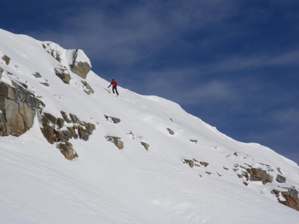 aufgrund der geringen Schneesituation ist der Übergang zum Kalser Tauernkees z.Z. etwas mühsam; entweder direkt am Sattel auf das Kees abklettern (hier ist eine kleine Schneerinne vorhanden), oder aber über die steile Skieinfahrt am Ende dieses Rückens (Achtung aber bei Triebschnee).