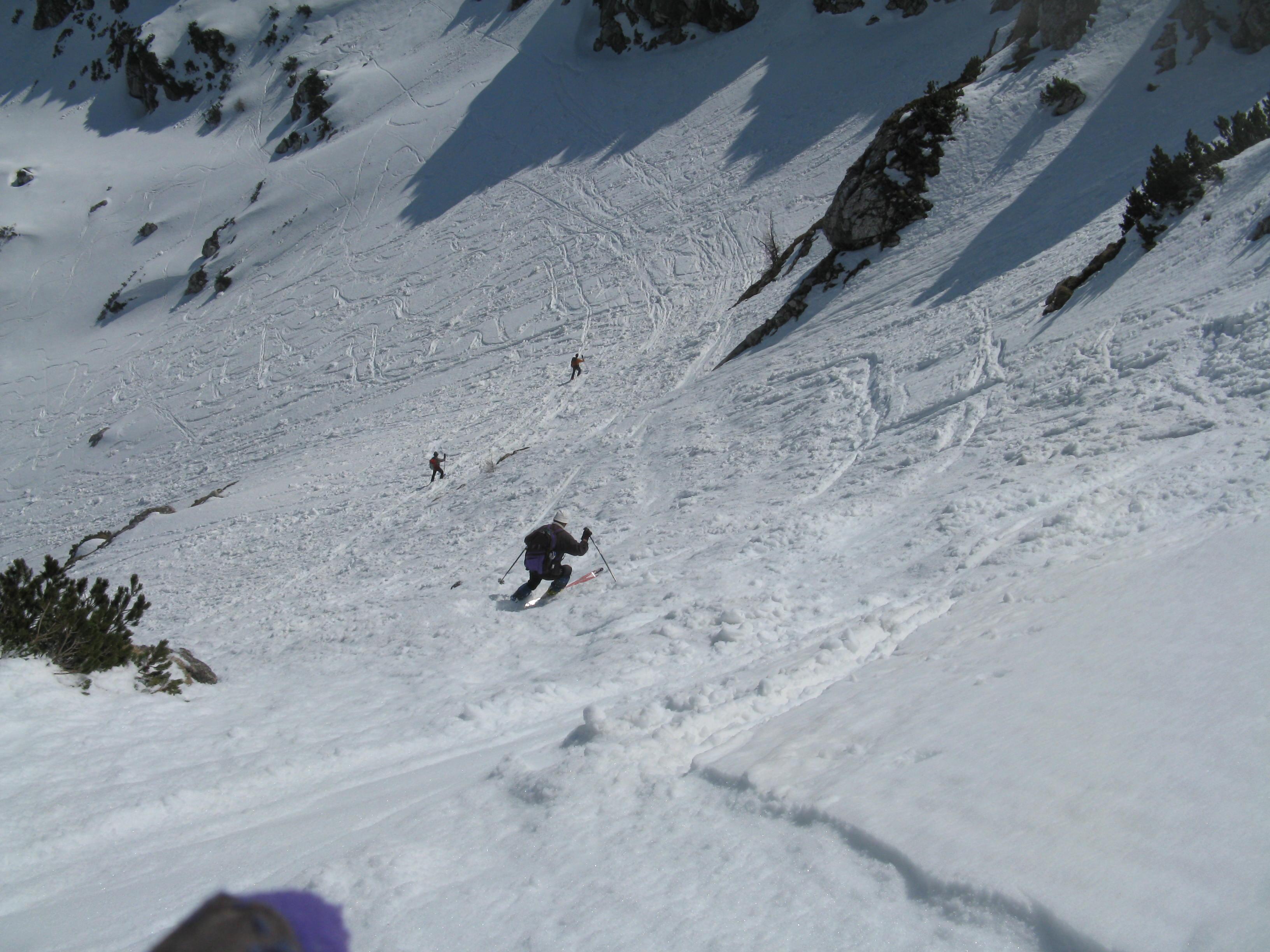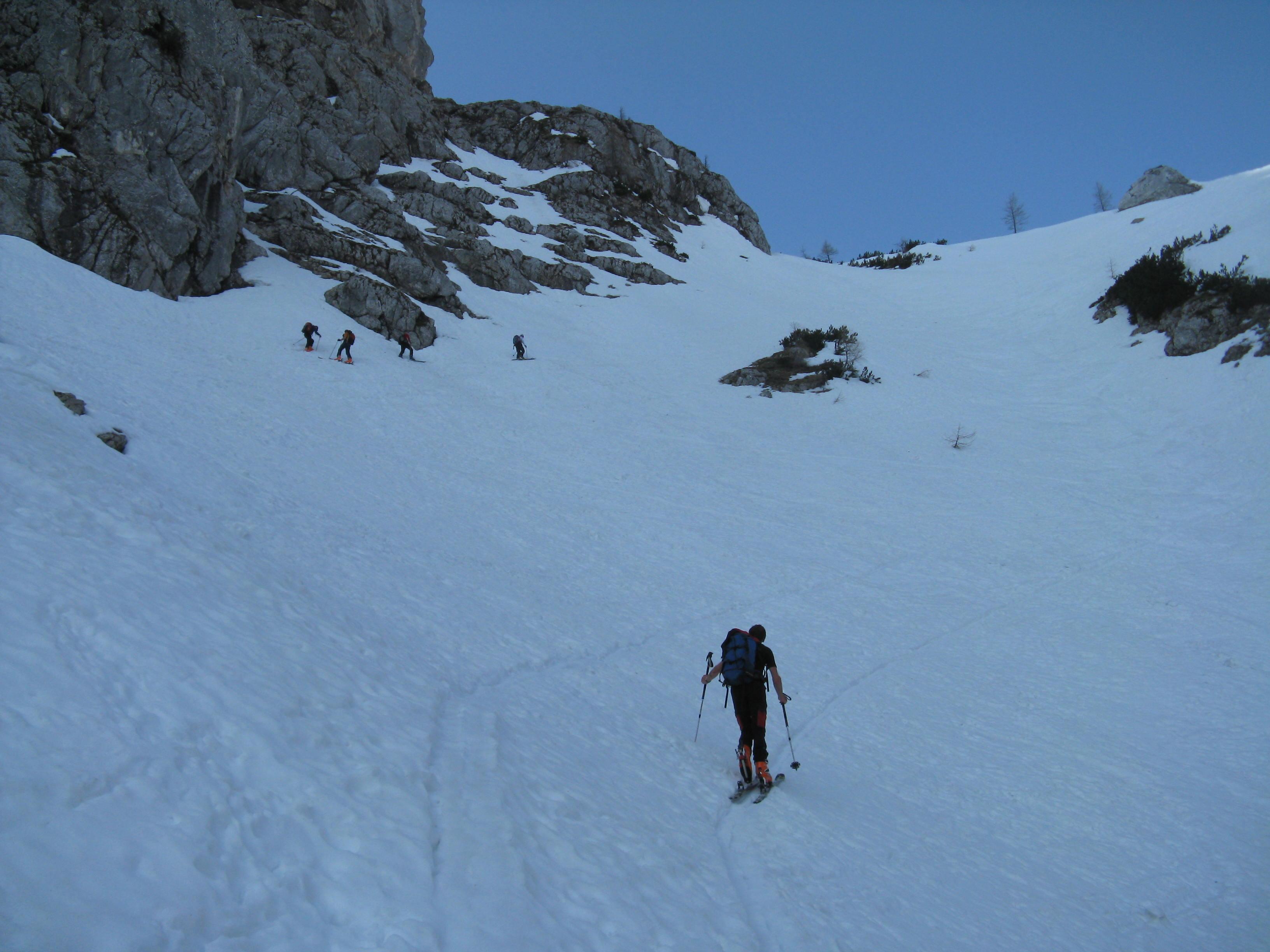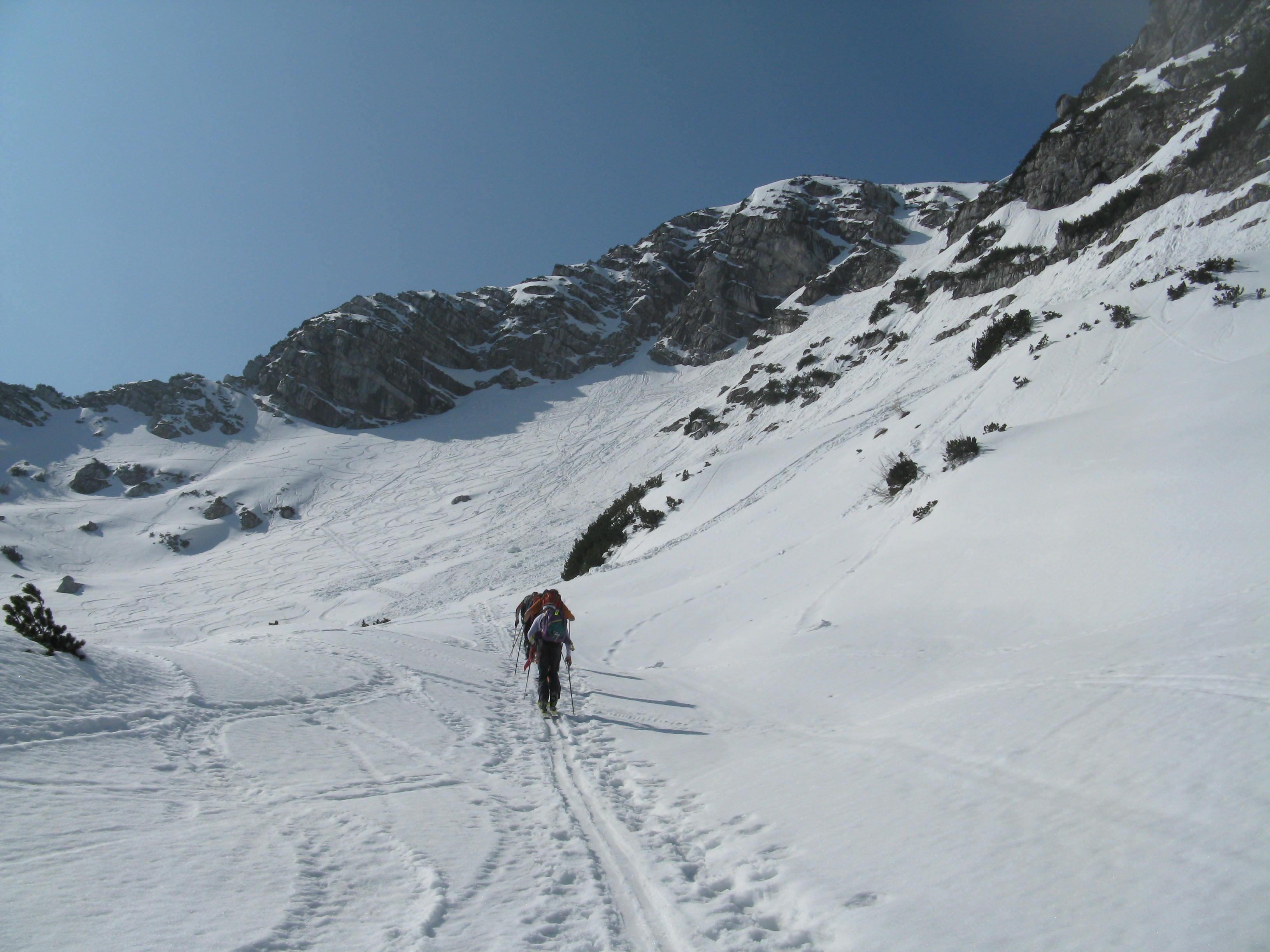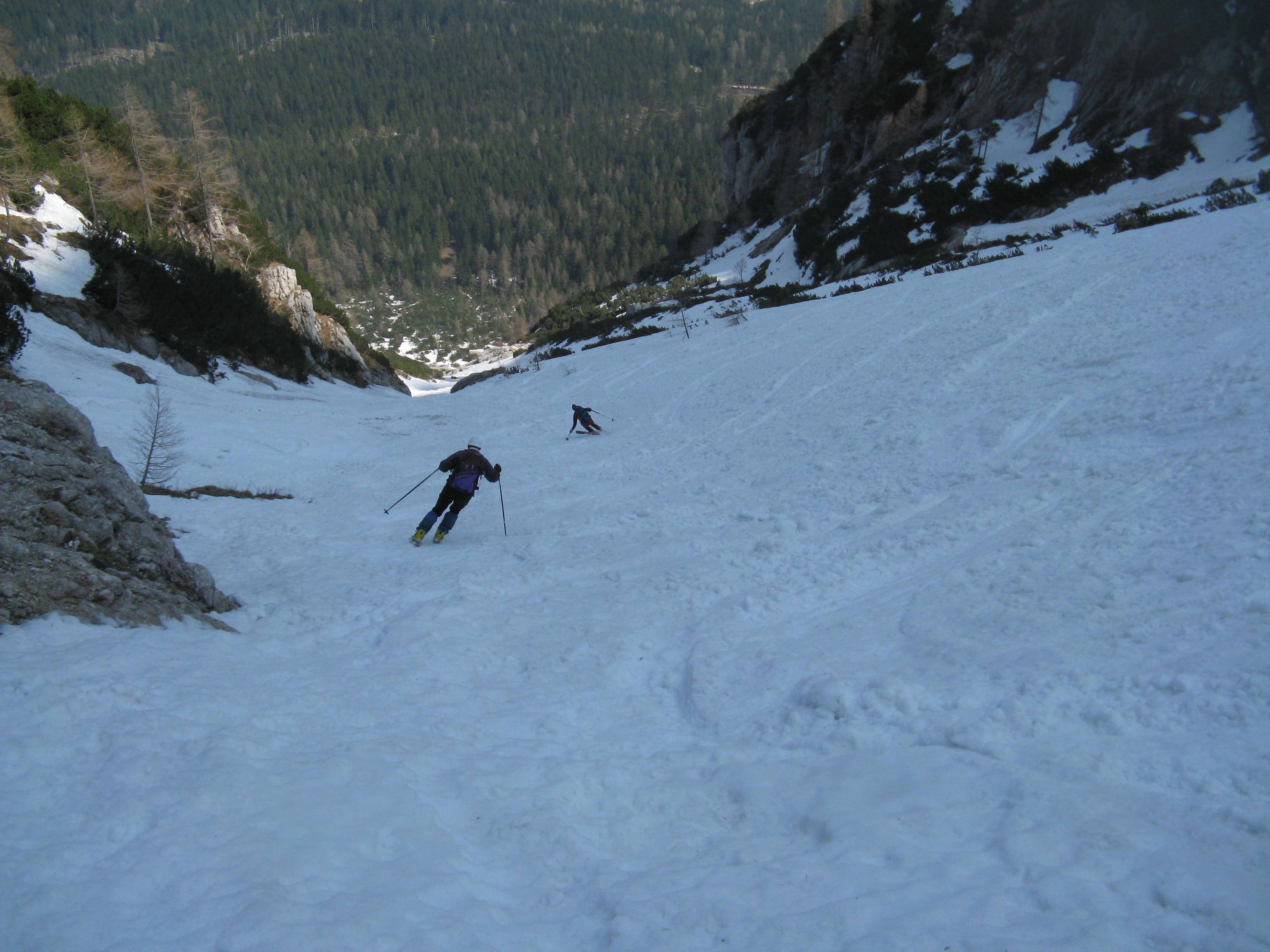 Aufstieg Abfahrt über das Nordkar,Ski sind ca.30 Min.zu Tragen,Schneedecke in der Früh schon Weich,was einen angenehmen Aufstieg ohne Harscheisen ermöglichte,bei der Abfahrt Gipfelhang anfangs etwas tief ansonsten aber noch gute verhältnisse