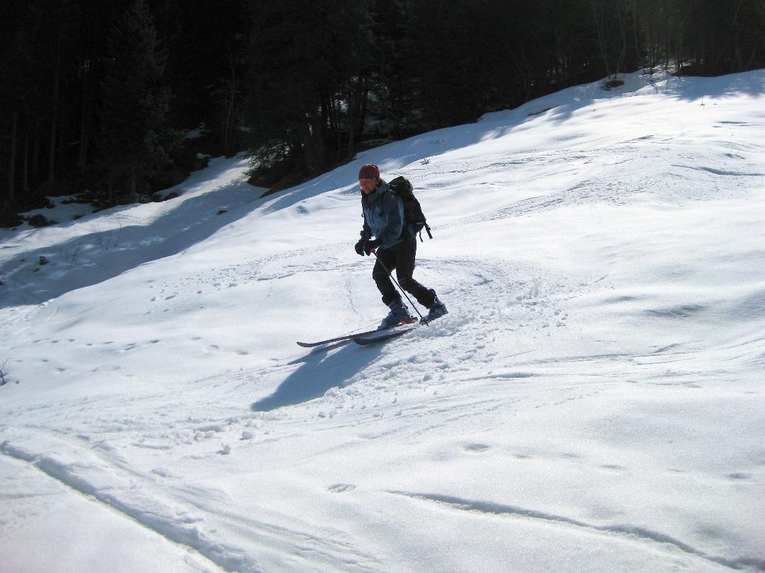 10 Minuten haben wir die Ski bei der Abfahrt noch getragen, aber der Schnee wird immer weniger.