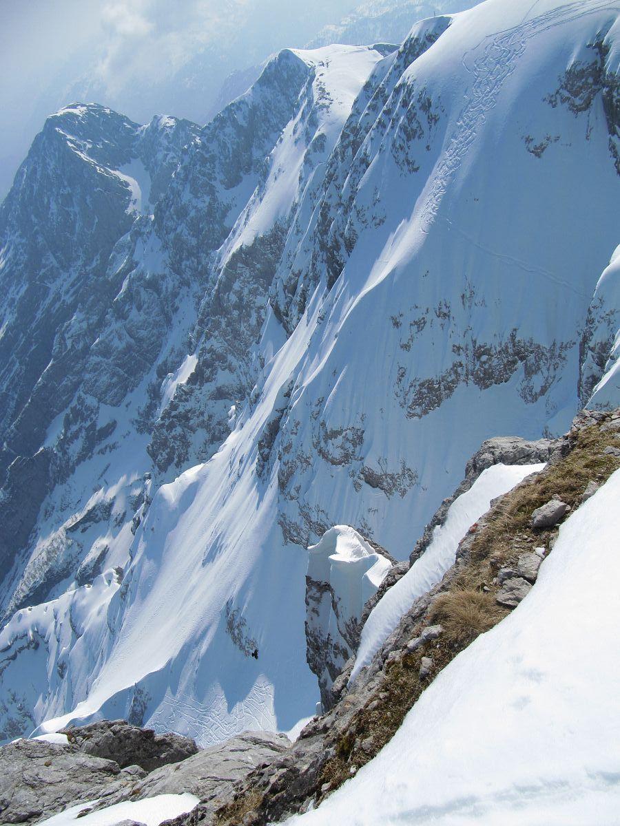 Laut Gipfelbucheintrag befuhr die Bergrettung Golling am 8.4. zu acht die Ostflanke, den Spuren nach zu urteilen dort offensichtlich beste Bedingungen. Habe lange überlegt, ob dies publik werden soll. Muß aber jeder selbst wissen, ob er diese steile Abfahrt riskieren kann!