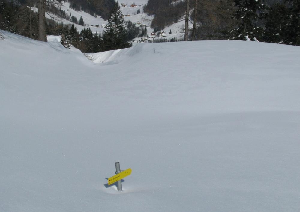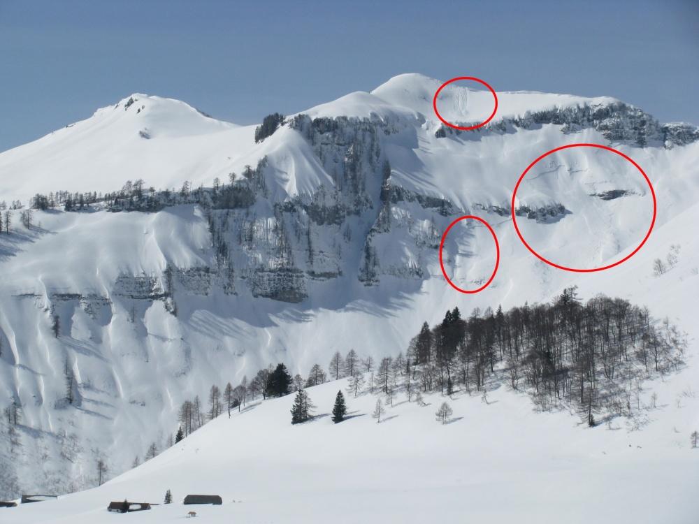 Derzeit liegen enorme Neuschneemassen im Bereich Genneralm. In der steilen Ostflanke des Gennerhorns liegt gut 1 m teils verfrachteter Neuschnee. In der großen Mulde unterhalb des Gennersattels ist in den letzten Tagen (Montag oder Dienstag) bereits eine große Lahn vom Osthang gegangen. Abrisskante knapp unterhalb der Felsen. Die Aufstiegsspur wurde zwar gut 100 m unterhalb der zugeschütteten Forststraße angelegt, jedoch Vorsicht! es ist noch eine große Menge drin im Osthang.
