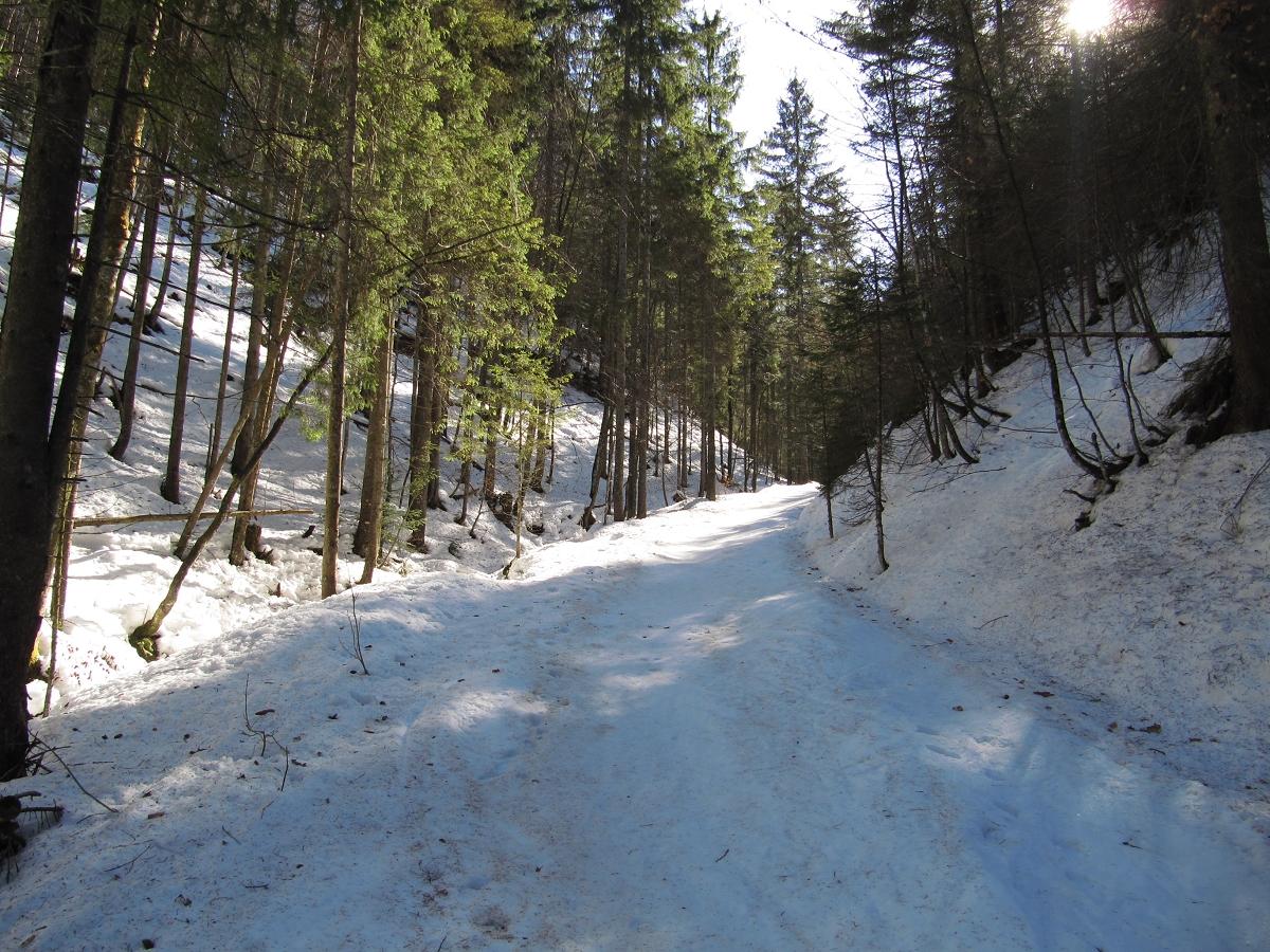 Nach dem Eintrag von Gerd Frühwirth (Untersbergabfahrt) vorsichtig geworden wartete ich bis heute Nachmittag mit meiner Tour zum Rauschberg / Ruhpolding. Unten plus 10 Grad, trotzdem war die Rossgasse heikel, arg vereist. Die erste Hälfte noch gut zu befahren, weiter unten sollte man tunlichst einen Sturz vermeiden. Am besten ließen sich noch die Randbereiche befahren. Abfahrt bis 20 m vors Auto an der B 305.