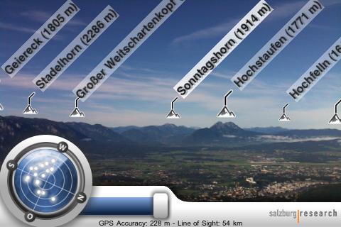 Bergsteiger, Wanderer, Skitourengeherinnen, Skifahrer, Snowboarderinnen, auch Segler beim Blick auf ferne Küsten kennen das Problem: Sie bewundern ein Panorama, und bald stellt sich die Frage: Weißt heißt dieser oder jener Gipfel? Und wie hoch ist er? Antworten liefert jetzt das iPhone mit einer Gratis-Software von Salzburg Research, die weltweit etwa 100.000 Gipfel anzeigt.